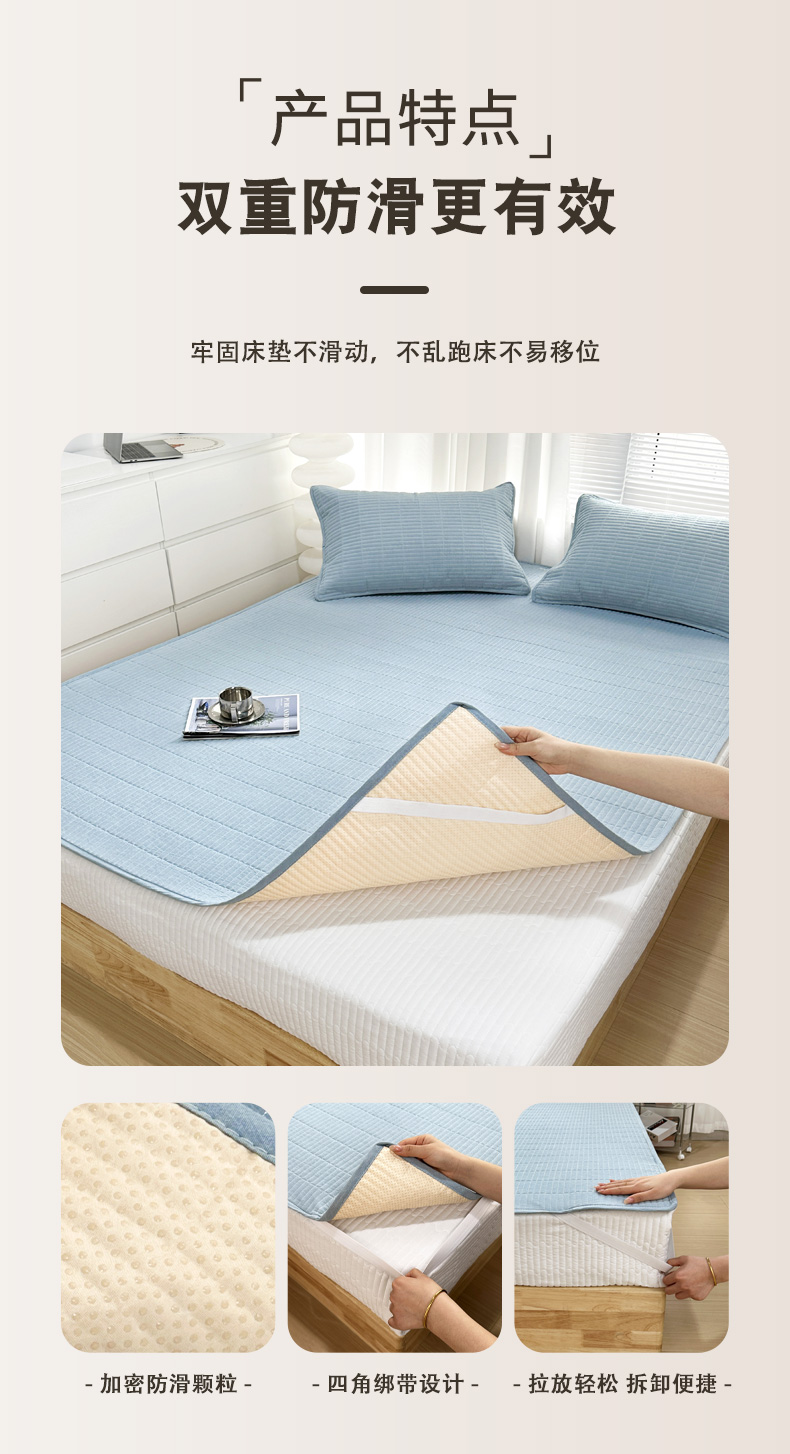 (总)拾小柒 2025年新款牛奶绒防滑床护垫加厚床垫隔脏垫冬季褥子床盖三件套,淡绿,浅粉,浅灰,浅水兰