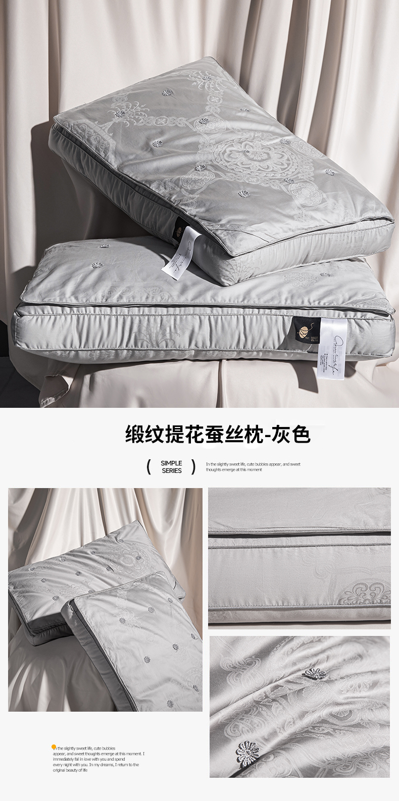 商品名称:(总)麦肯锡 2025新款缎纹提花蚕丝枕枕头枕芯