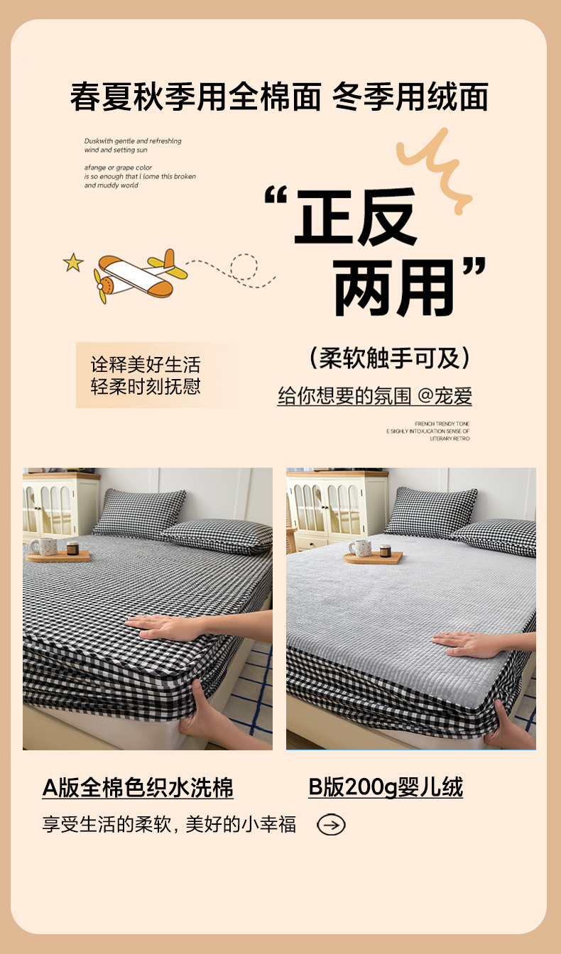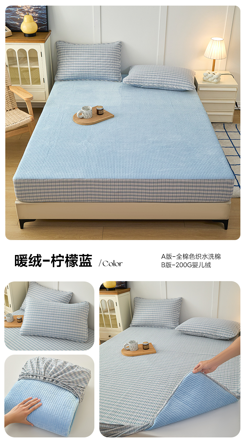 商品名称:(总)佳笠家居 2025新款全棉纯棉水洗棉小格子加婴儿绒床笠单床笠单品床笠单件床笠