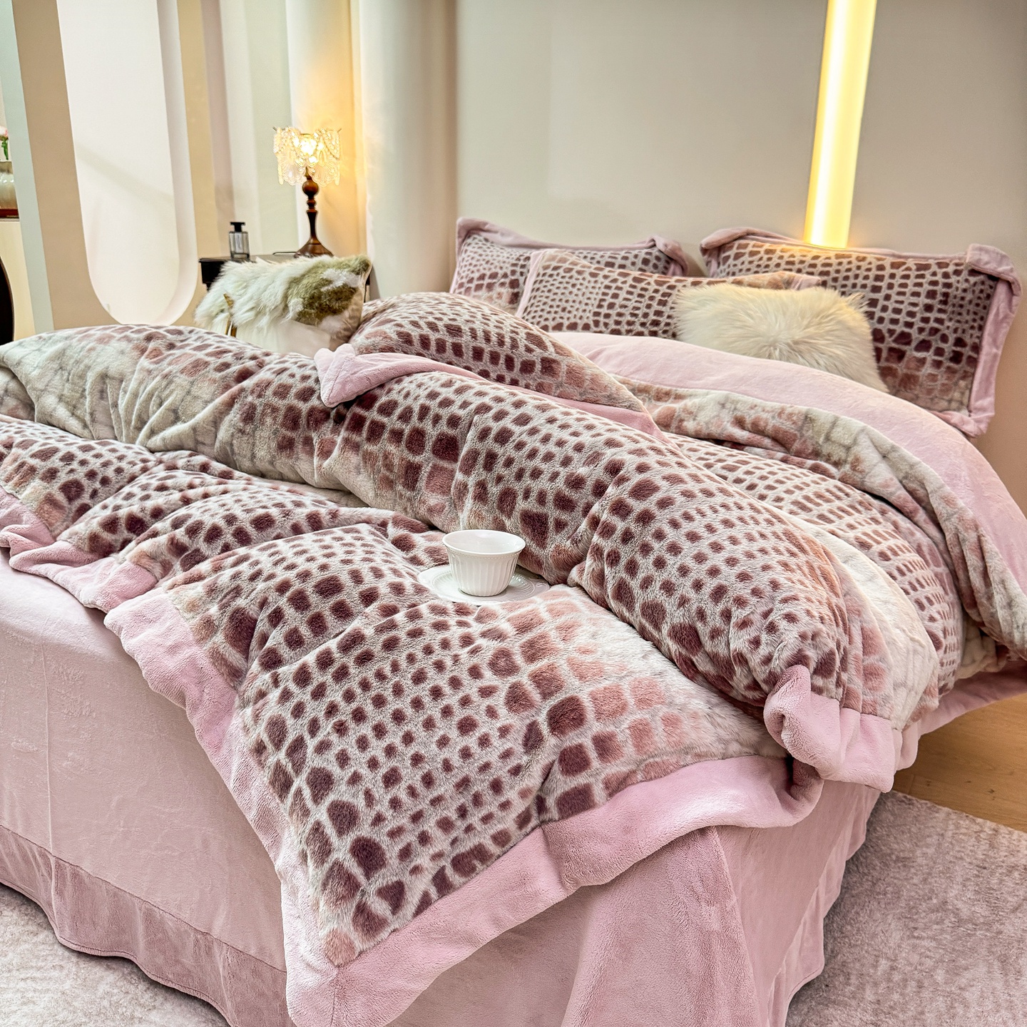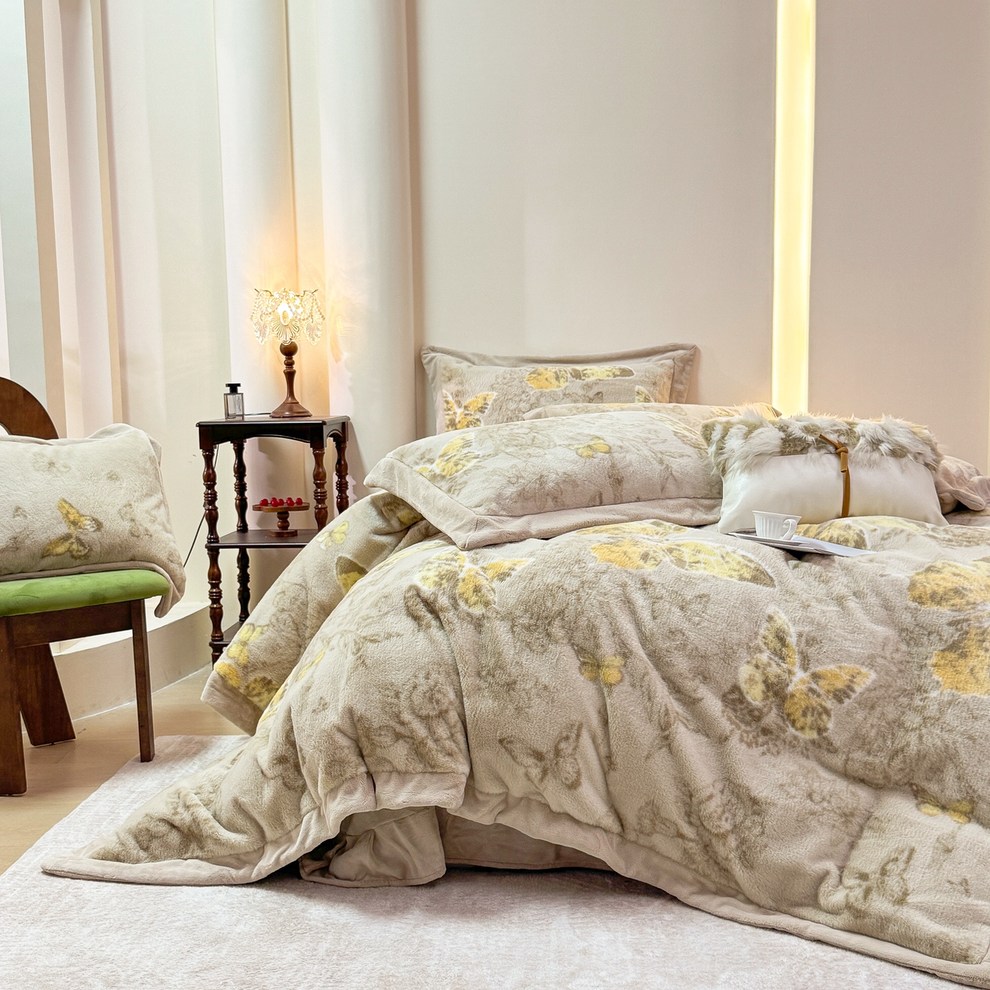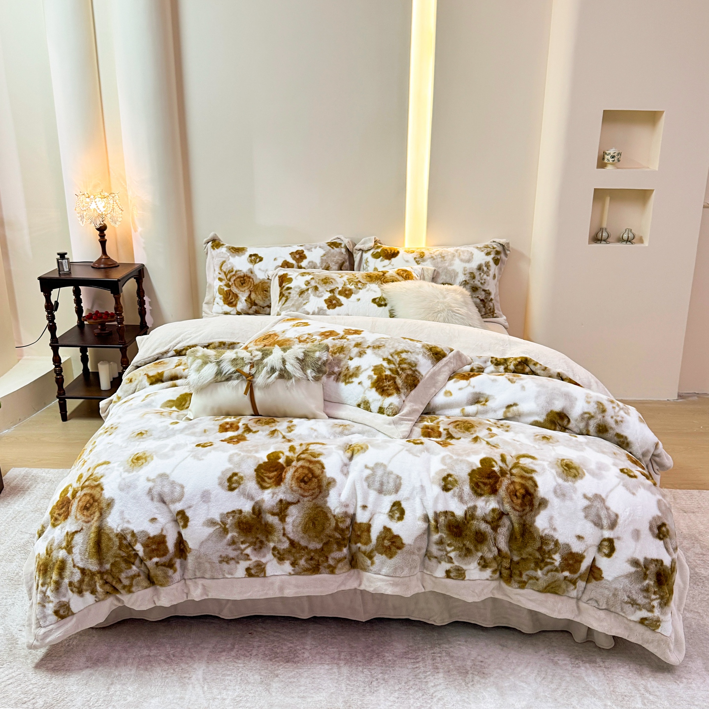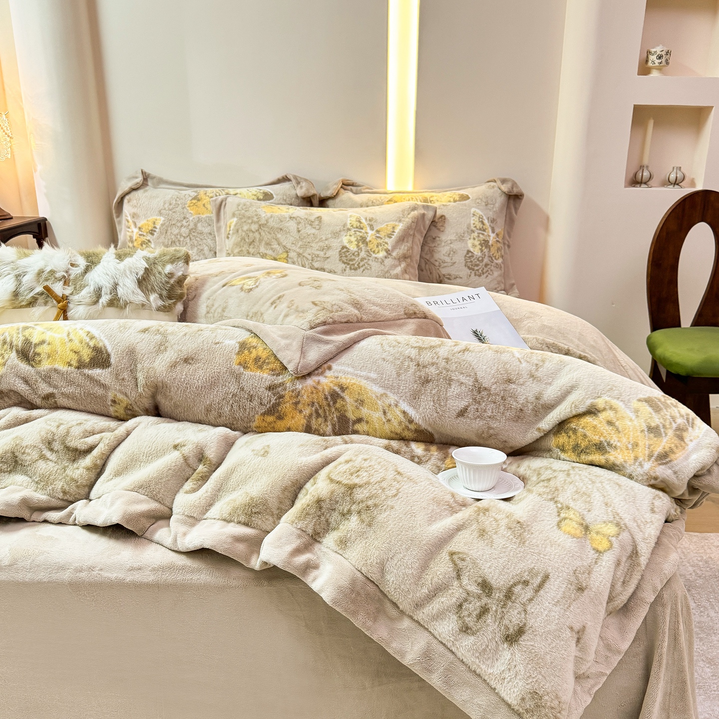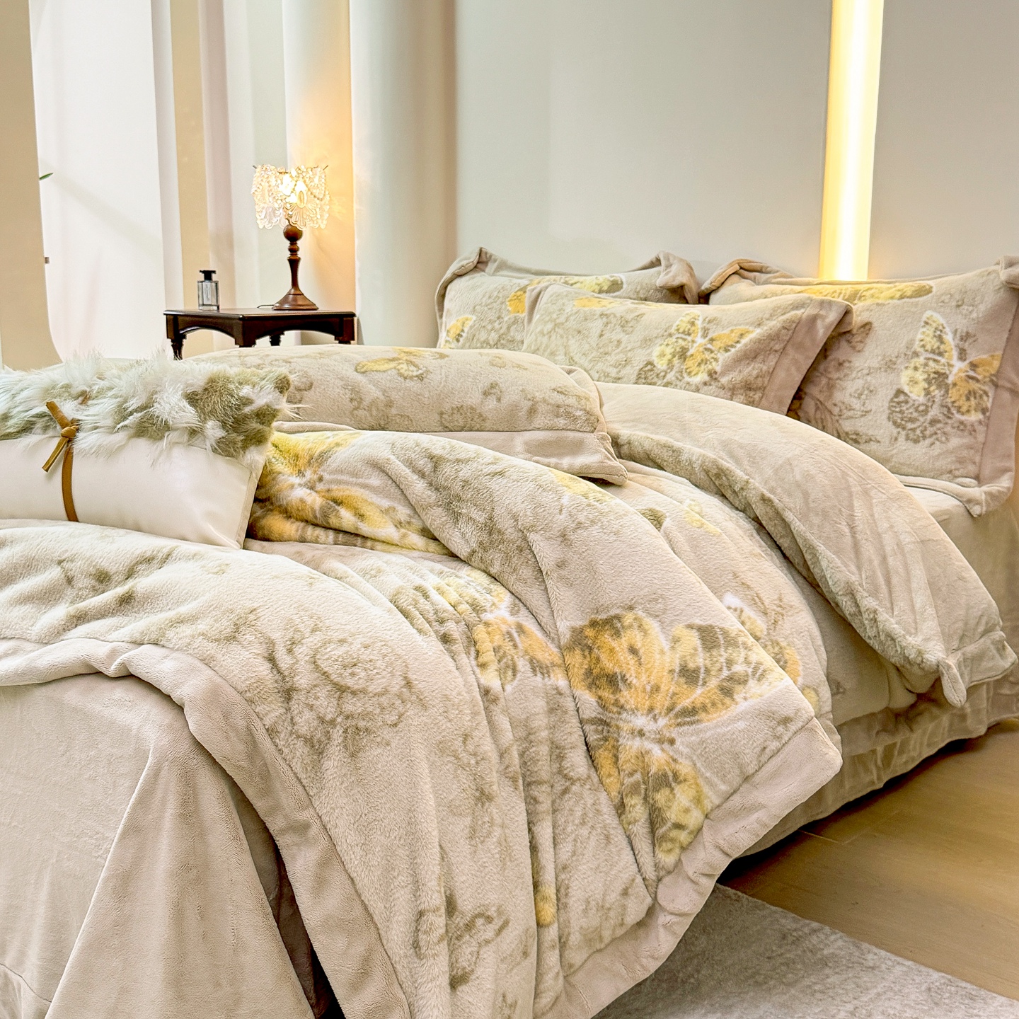 商品名称:优姿家纺 2025新款380克11斤兔毛绒印花四件套 秘境-茶绿