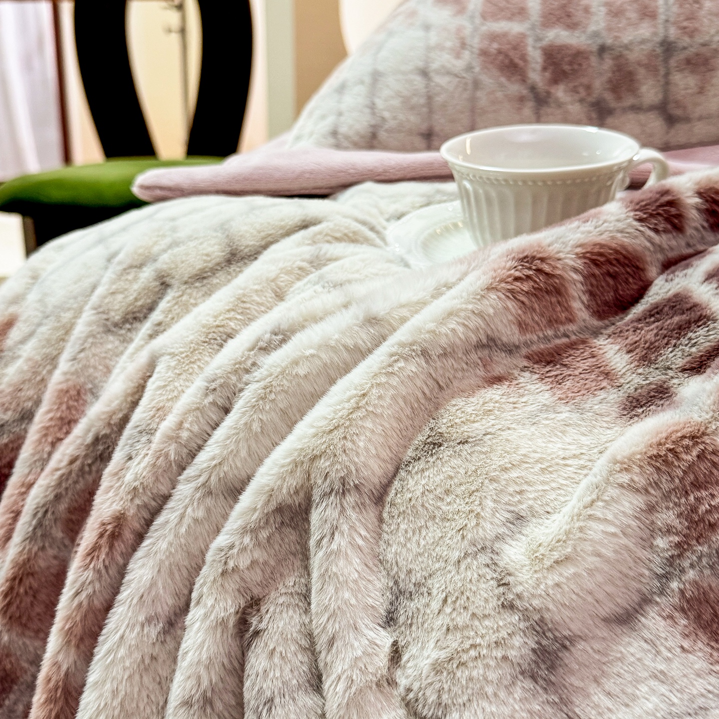 优姿家纺 2025新款380克11斤兔毛绒印花四件套 秘境-茶绿