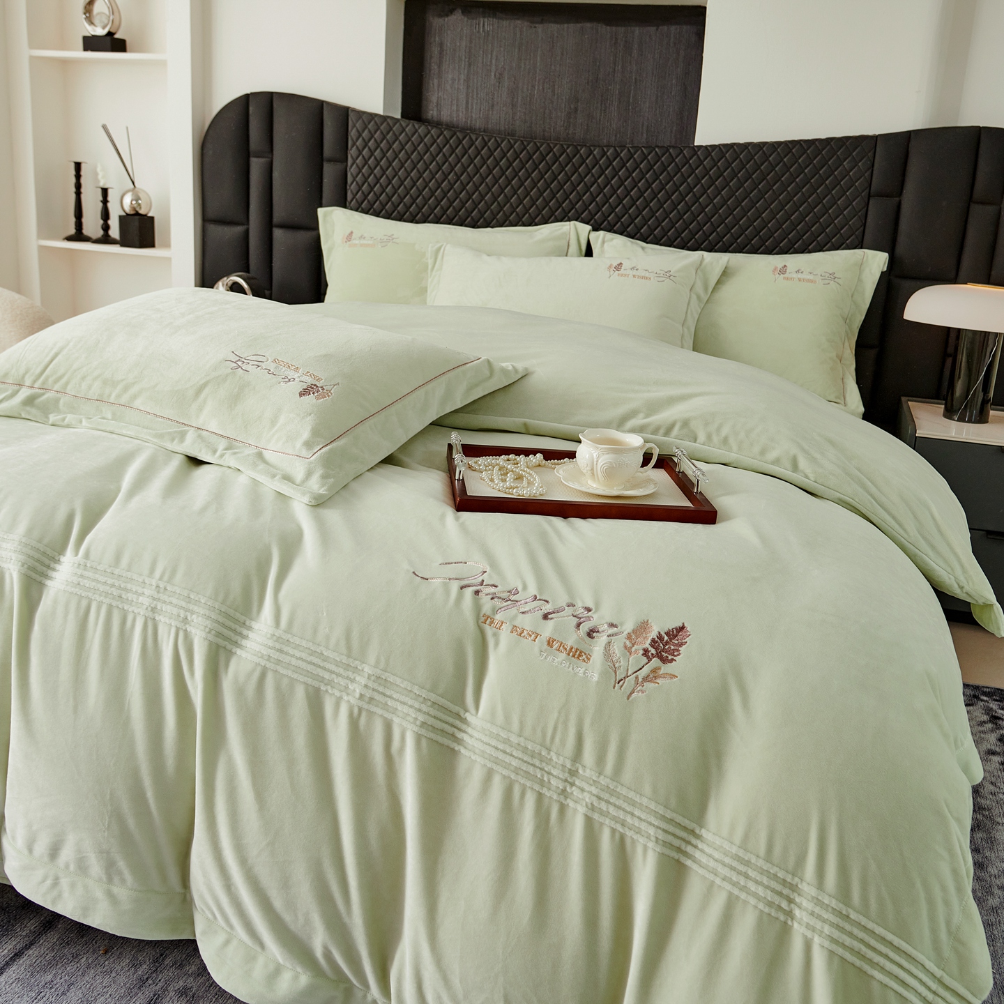 优姿家纺 2025新款冬野9斤全消光婴肤绒保暖四件套 冬野-抹茶绿