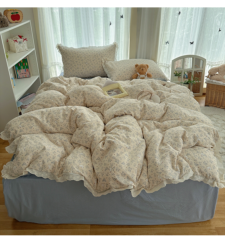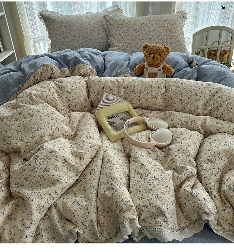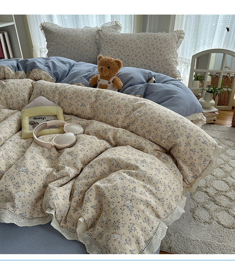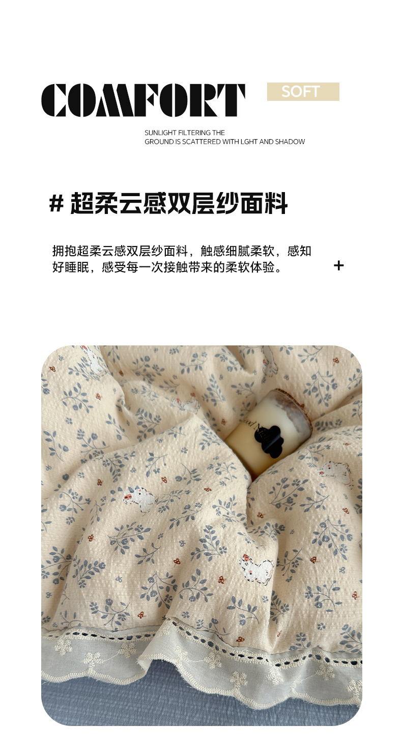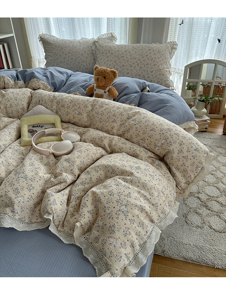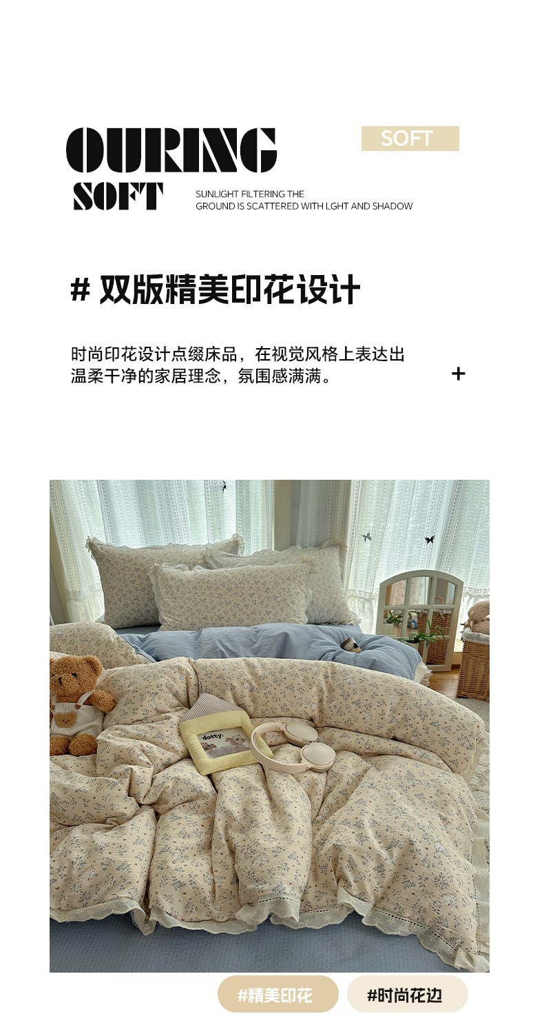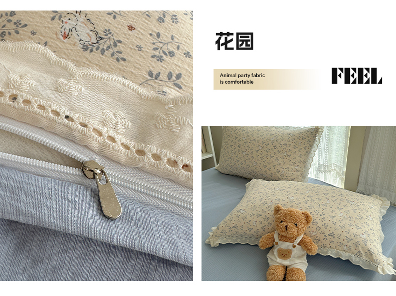 当前位置: 91家纺网 > 商品网购 > 床品套件 > 四件套 > 双层纱四件套 > 红嘴企鹅 2025新款花边双层纱印花四件套 花园