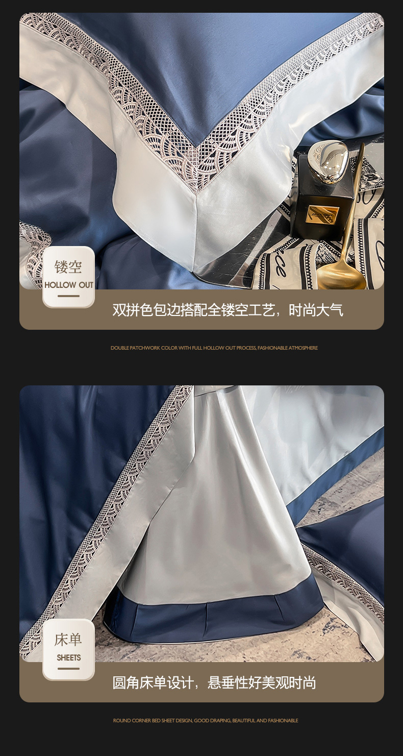 娇逸家居 2025四季款100支全棉全棉纯棉镂空款四件套-圣地亚 圣地亚-宝石蓝