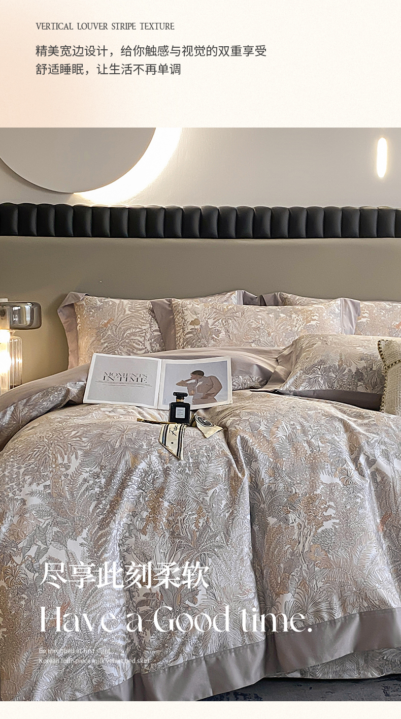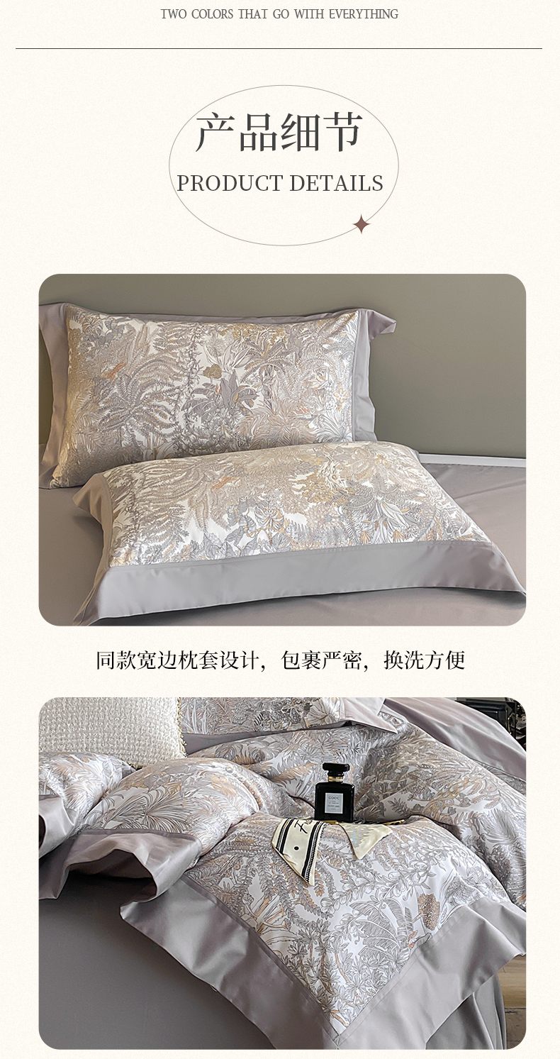 (总)娇逸家居 2025新款高克重A类数码印花牛奶绒双拼边款四件套,采薇灰,扶桑,浅影,秋灵粉,秋灵黄,秋灵绿,舜华粉,采薇米,舜华绿,仙客,栩蝶,璎珞,玉树,芸芙