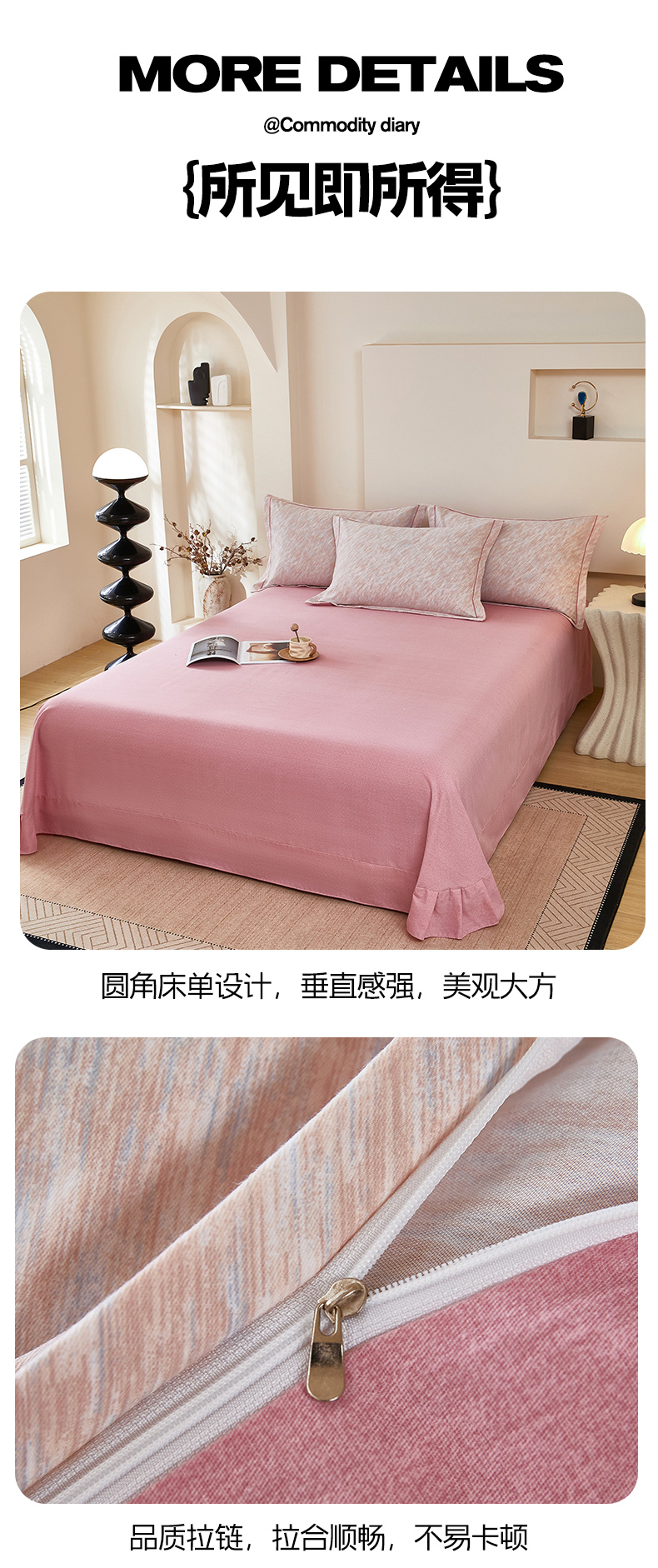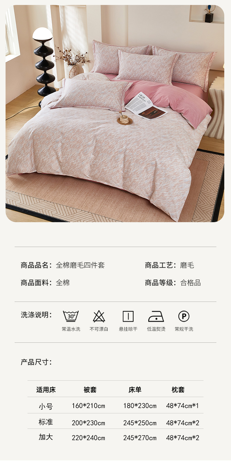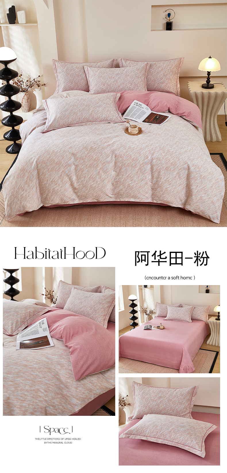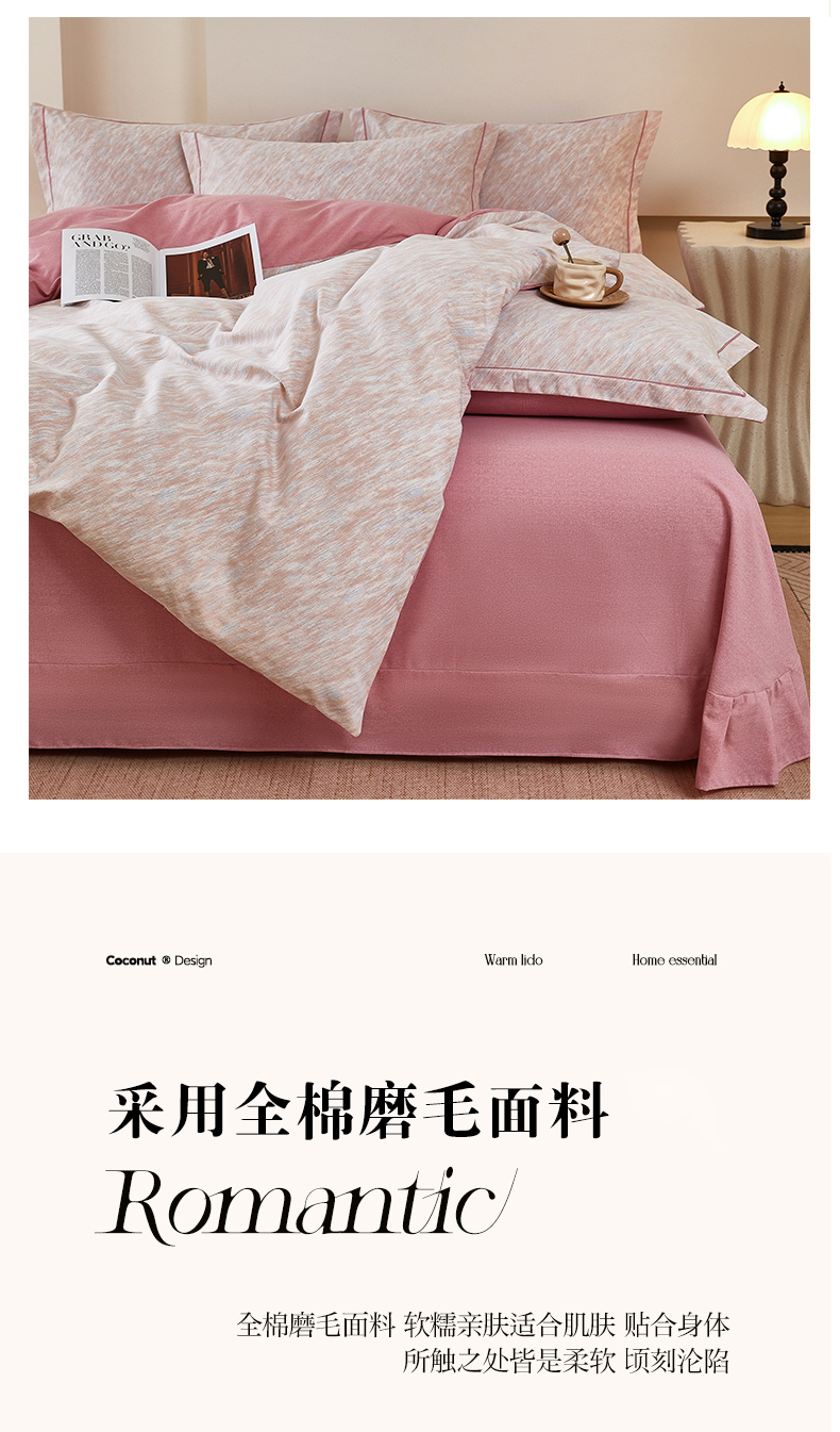 商品名称:雲归梦 2025新款纯棉加厚磨毛多规格磨毛四件套阿华田-粉