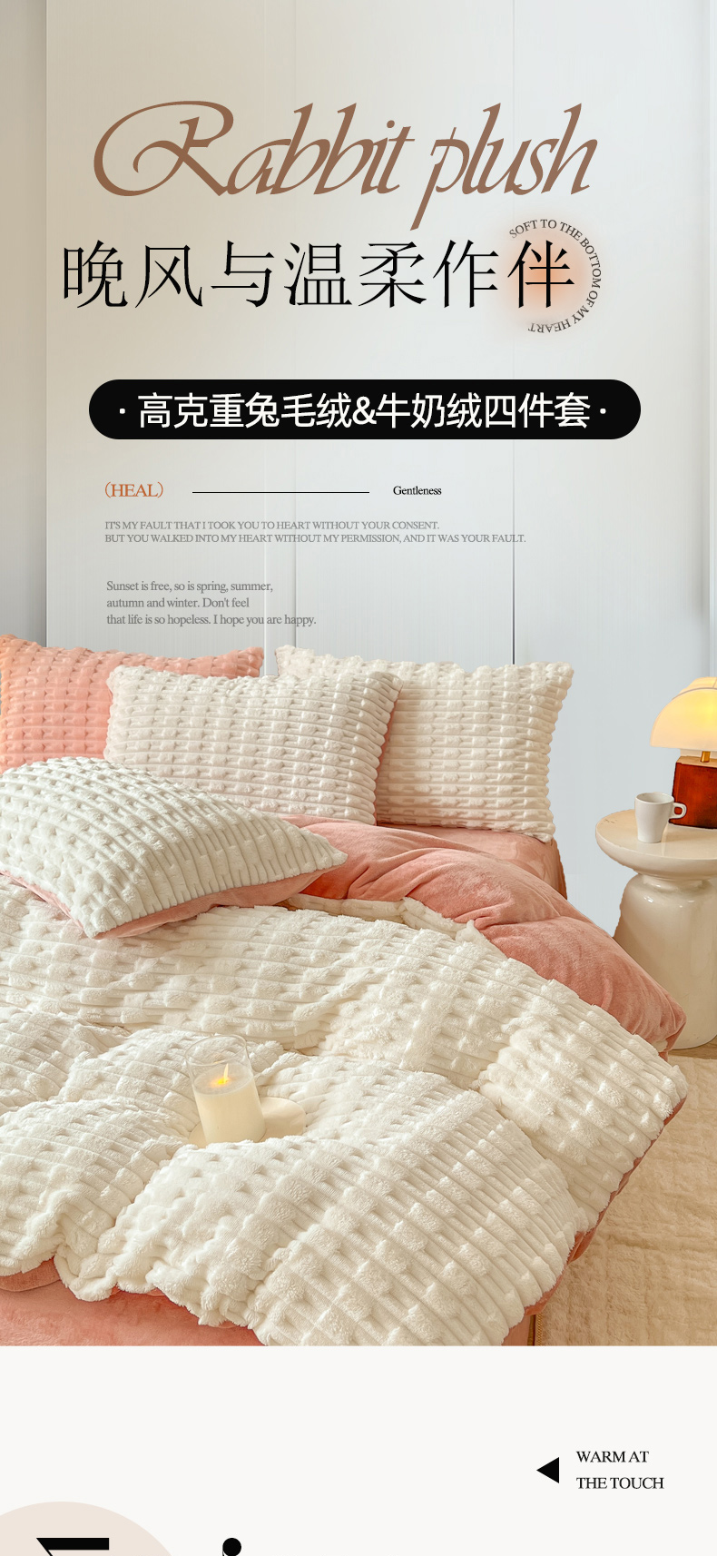 (总)爱彼家纺 2025新款糖果色兔兔绒套件秋冬加厚牛奶绒四件套-场景二