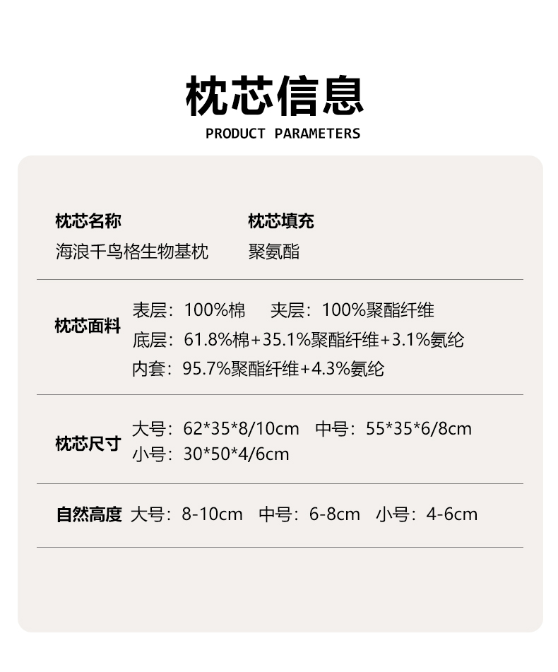 商品名称:(总)鼎盛乳胶 2025新款海浪千鸟格生物基枕头枕芯