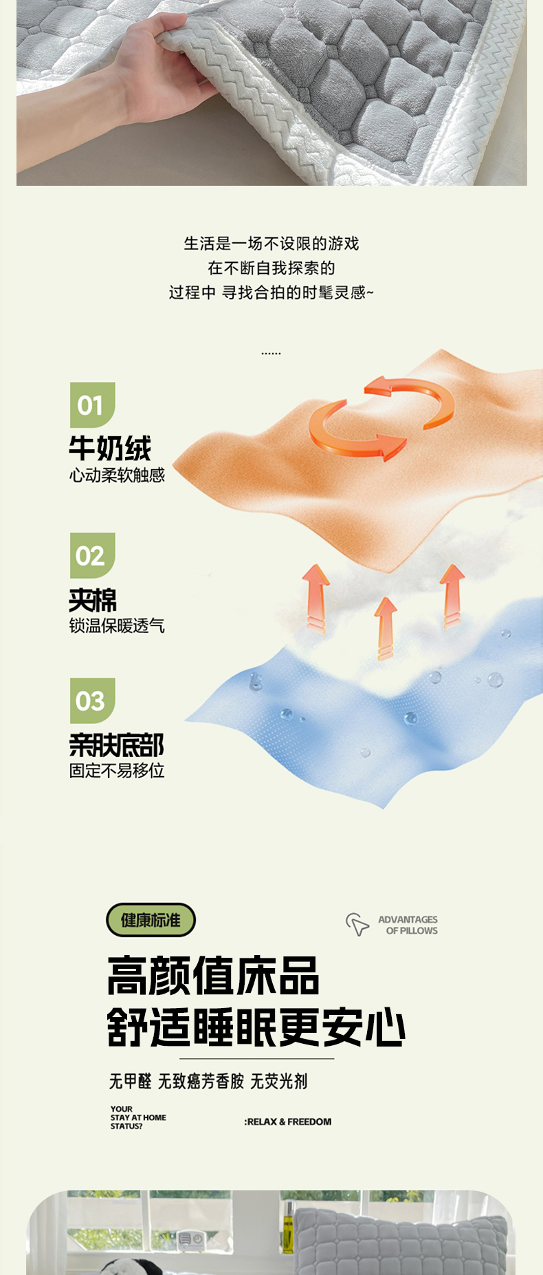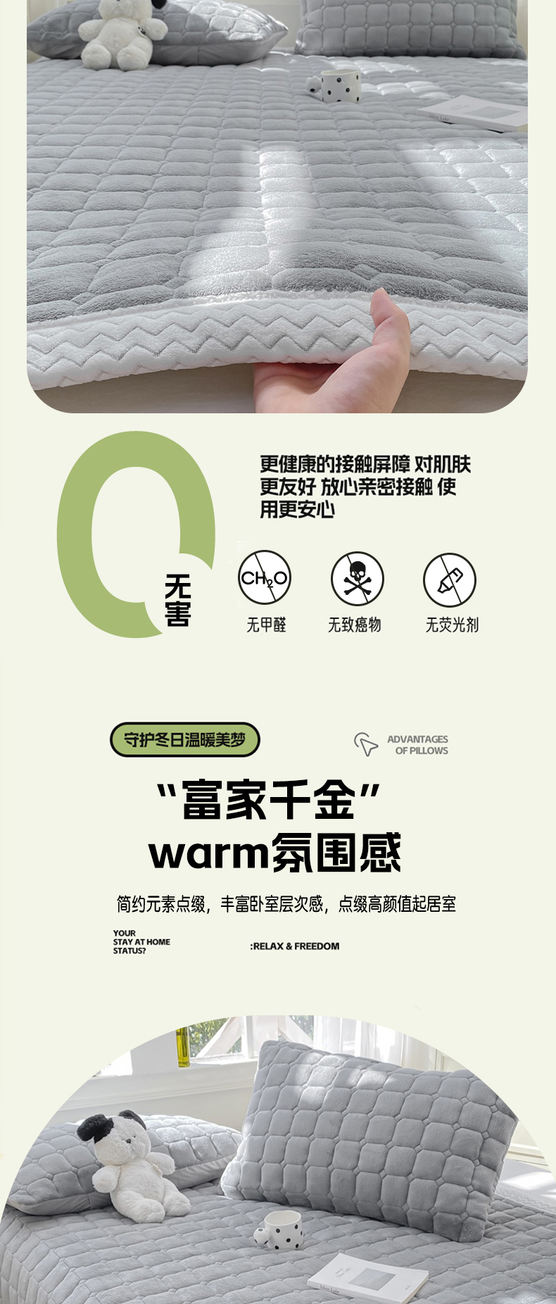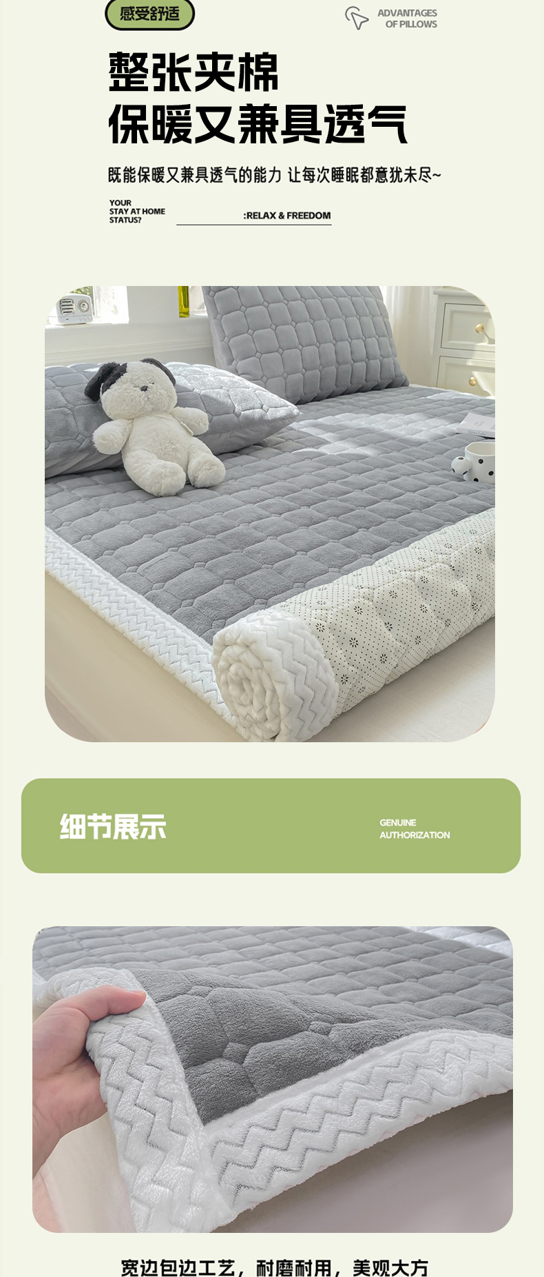 当前位置: 91家纺网 > 商品网购 > 床垫/床褥 > 普通床垫 > 2025年新款纯色牛奶绒夹棉床垫-风格一 浅灰