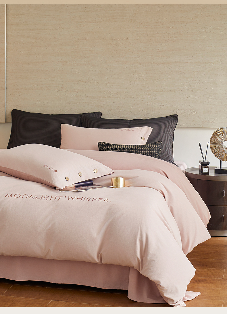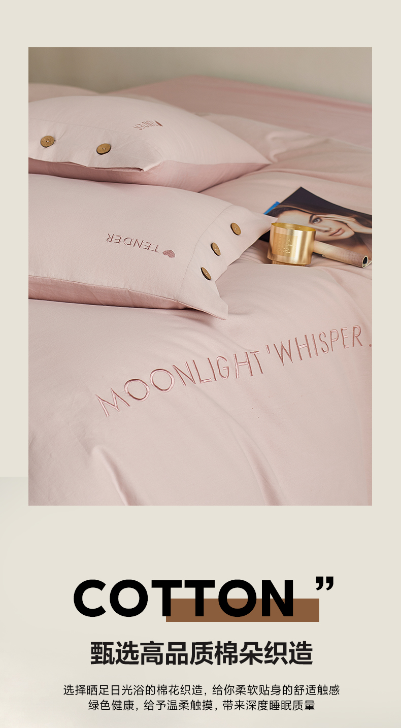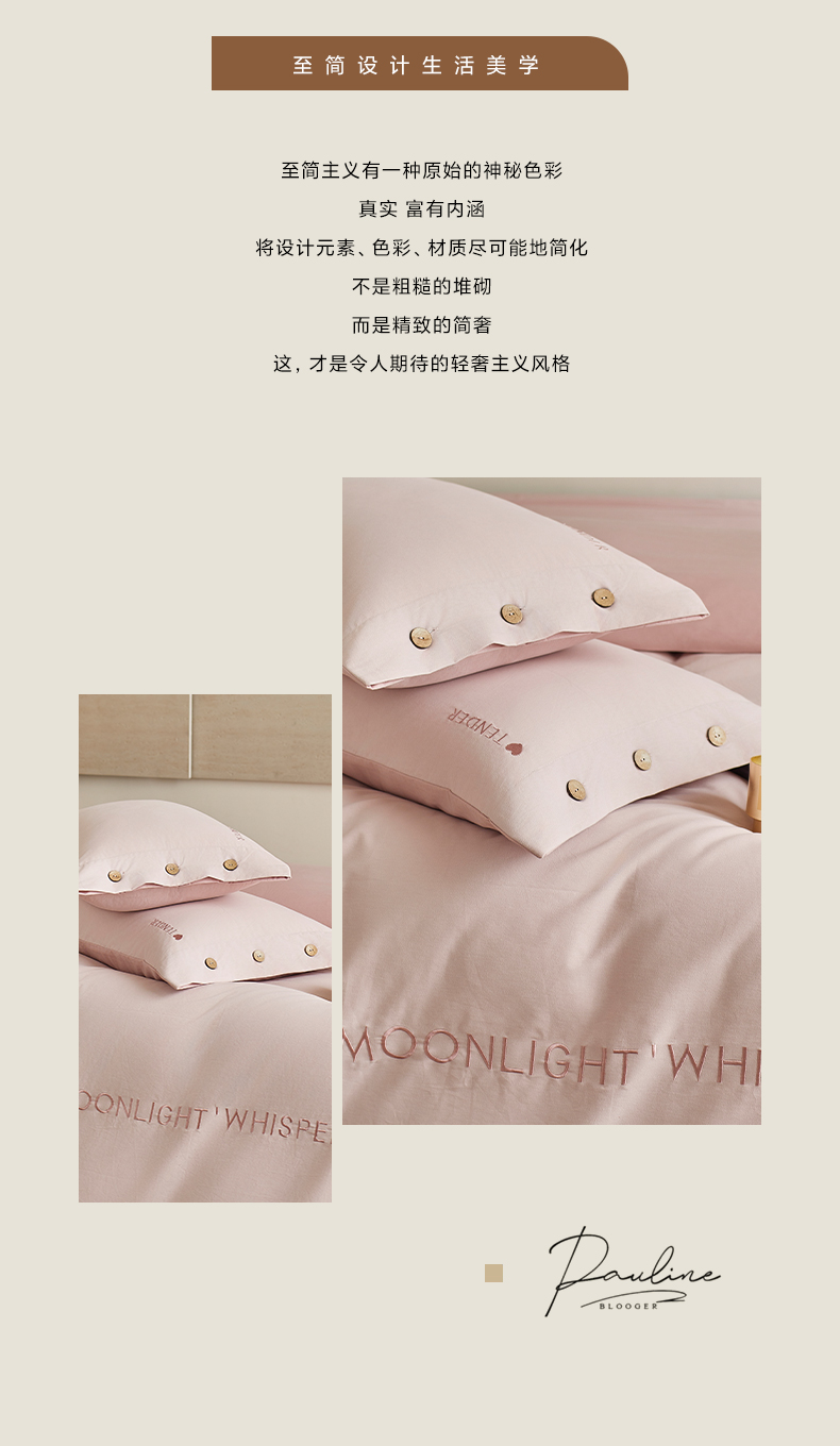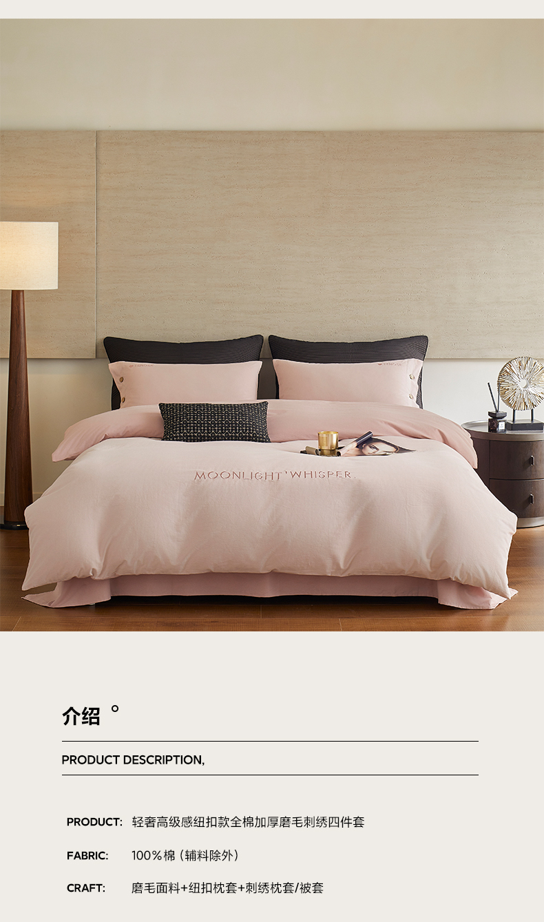 当前位置: 91家纺网 > 商品网购 > 床品套件 > 四件套 > 全棉普通四件套 > 艾咪-Amy ntmy 2025轻奢高级感纽扣款全棉纯棉加厚磨毛刺绣四件套 漫月桃粉