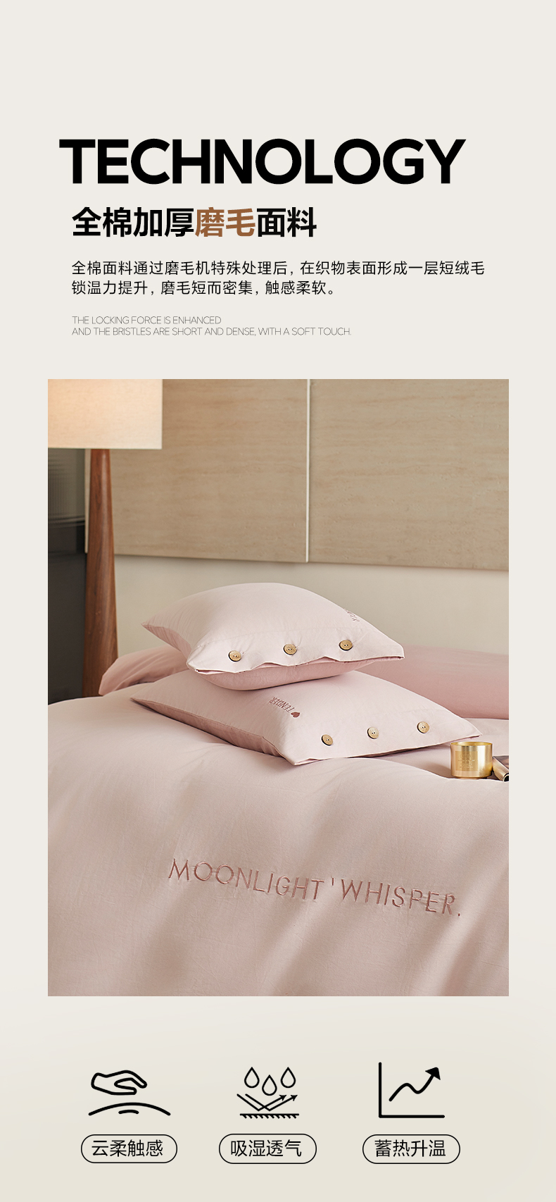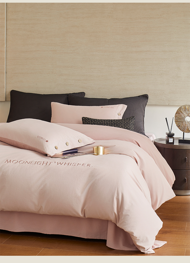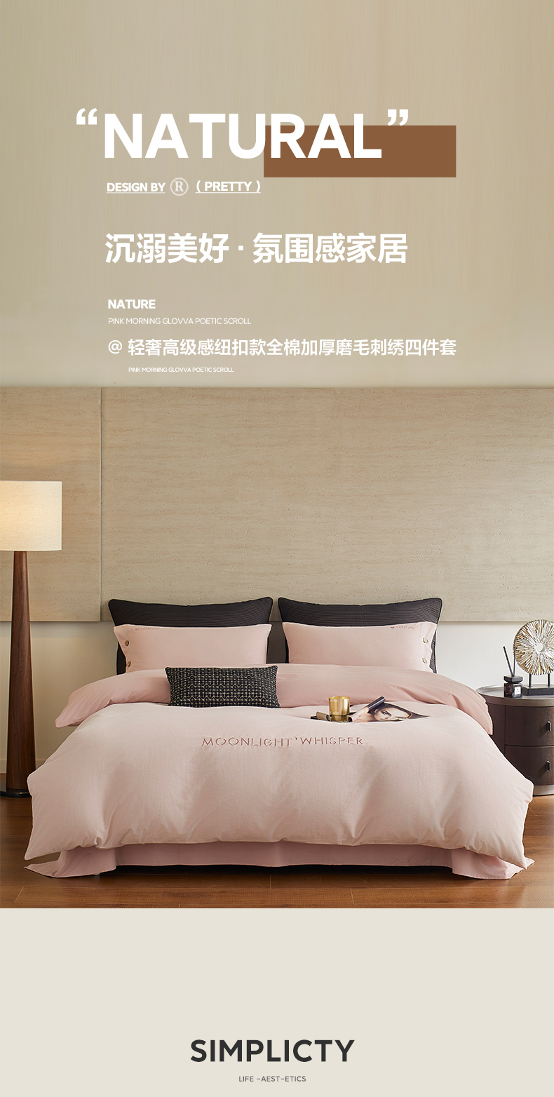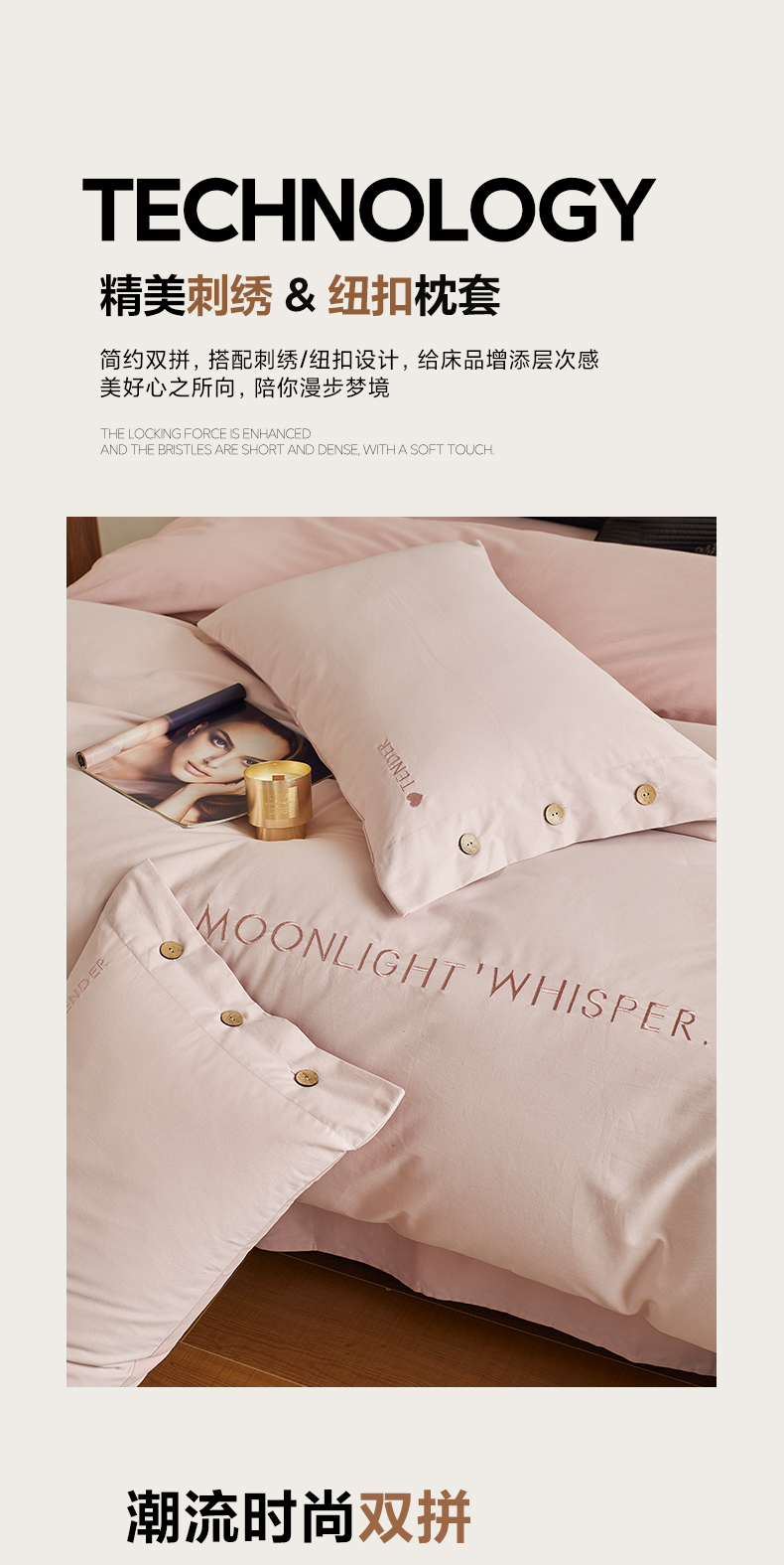 当前位置: 91家纺网 > 商品网购 > 床品套件 > 四件套 > 全棉普通四件套 > 艾咪-Amy ntmy 2025轻奢高级感纽扣款全棉纯棉加厚磨毛刺绣四件套 漫月桃粉