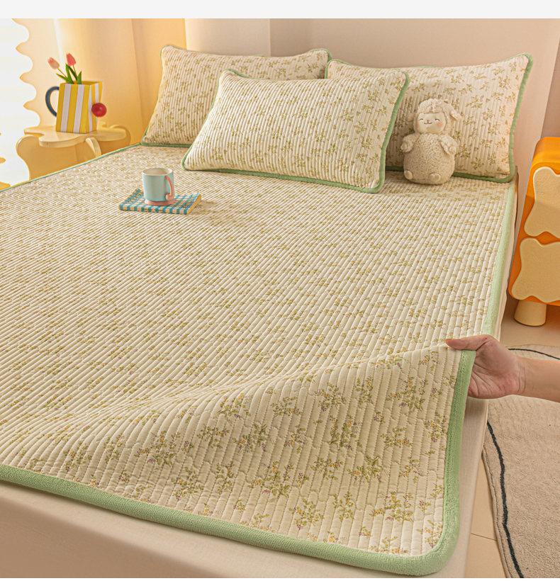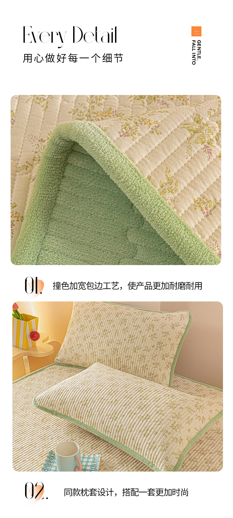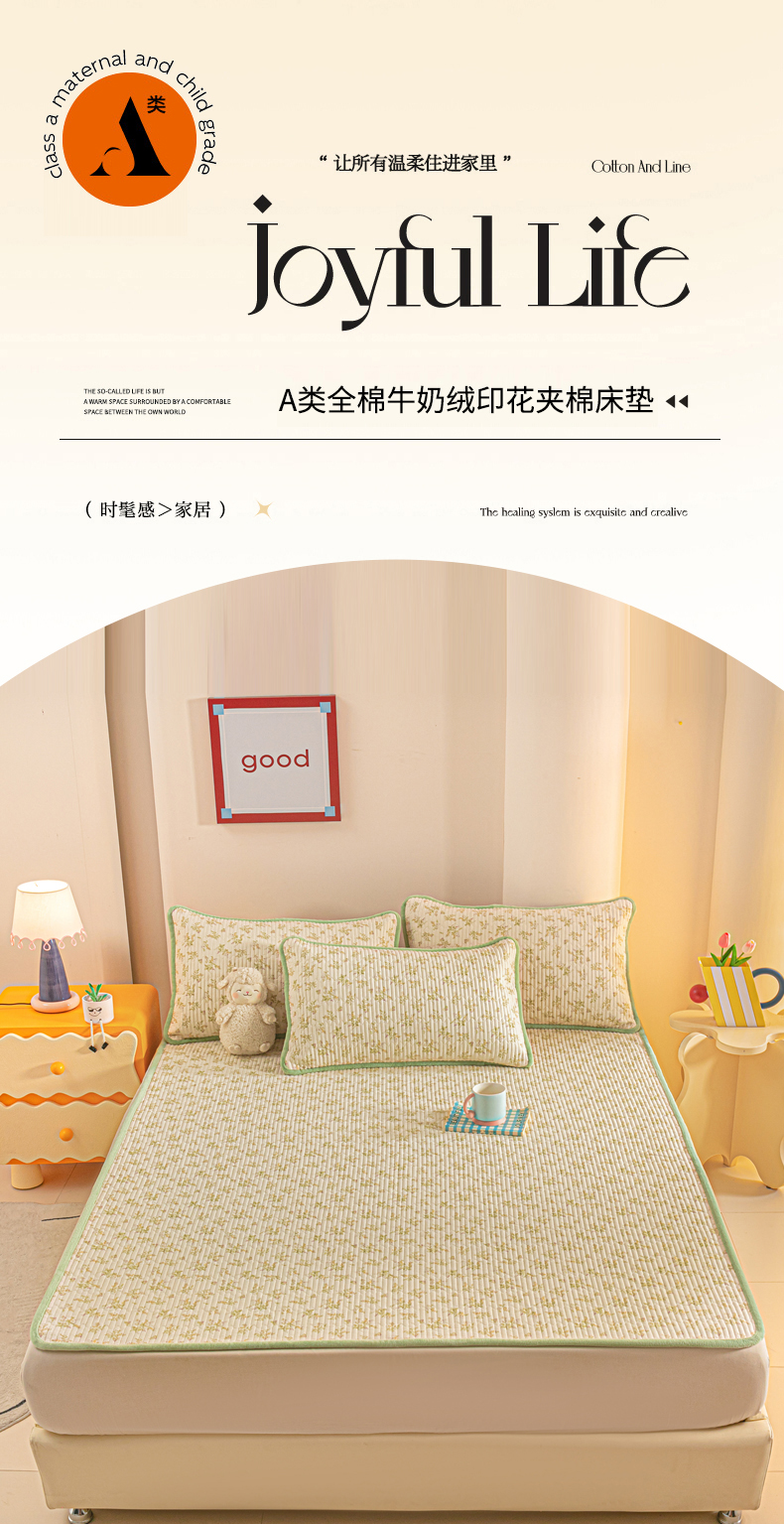 • 91家纺网 家纺一手货源 找家纺 恒尚居 2025新款A版全棉B版牛奶绒夹棉床褥垫A类四季可用学生床垫-秋冬款三件套系列二 香草园【A纯棉-B牛奶绒】