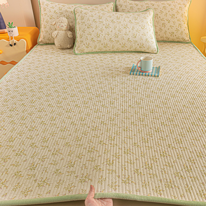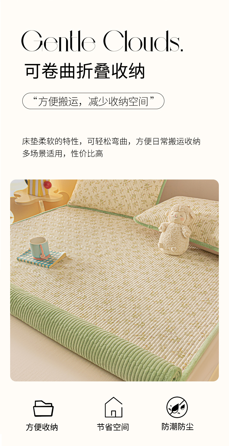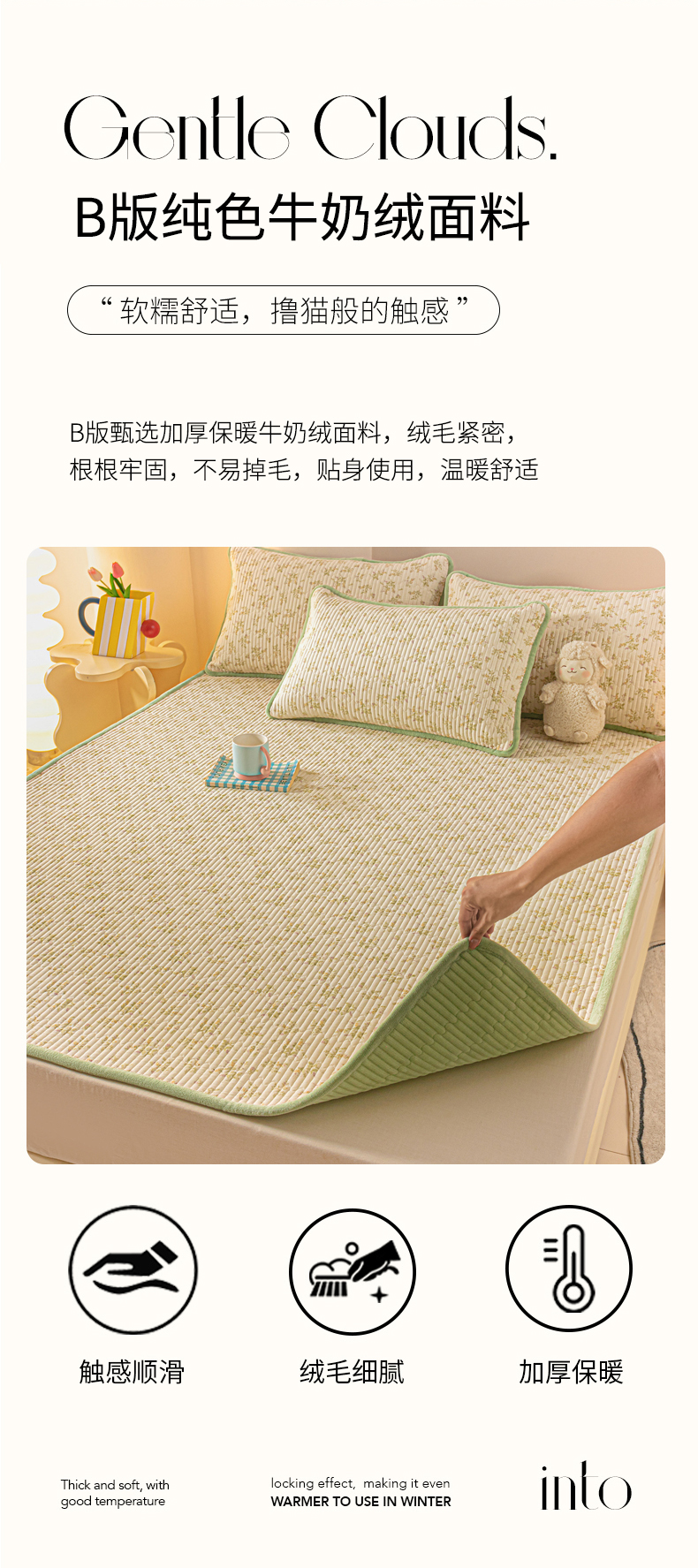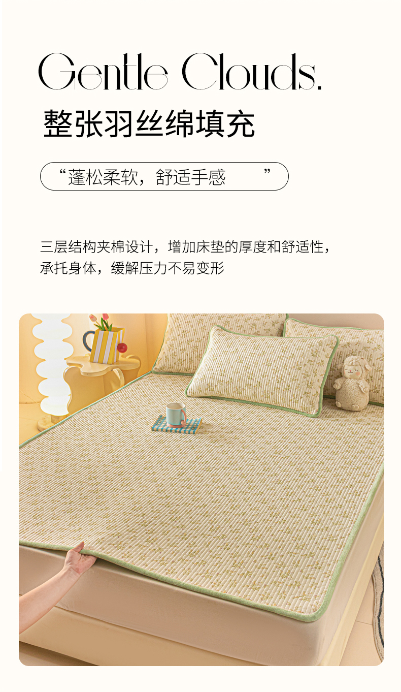 • 91家纺网 家纺一手货源 找家纺 恒尚居 2025新款A版全棉B版牛奶绒夹棉床褥垫A类四季可用学生床垫-秋冬款三件套系列二 香草园【A纯棉-B牛奶绒】