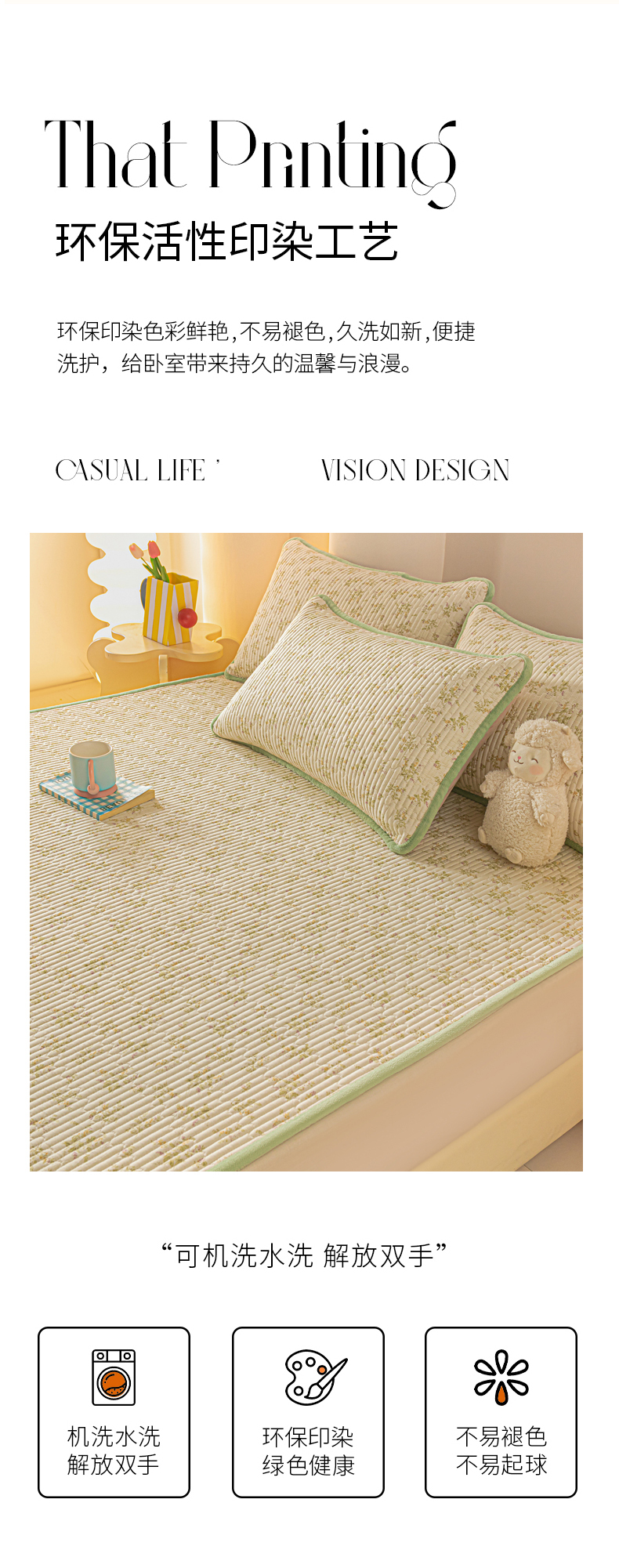 恒尚居 2025新款A版全棉B版牛奶绒夹棉床褥垫A类四季可用学生床垫-秋冬款三件套系列二 香草园【A纯棉-B牛奶绒】