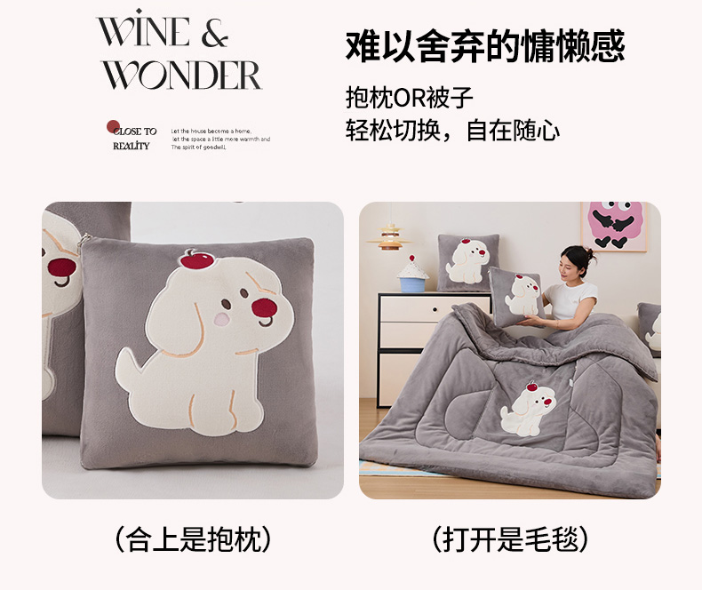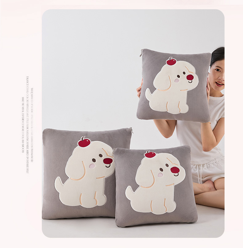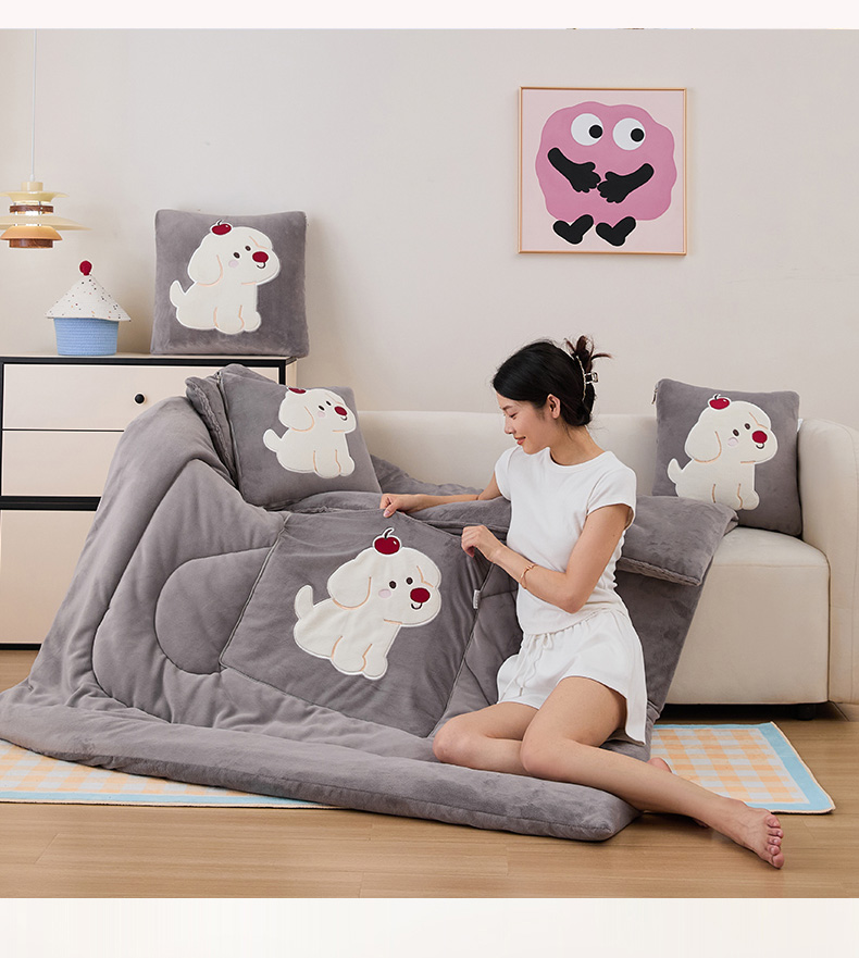 哩哩熊2025抱枕被子两用加厚牛奶绒二合一汽车载枕头办公室午睡毯子冬天靠枕-樱桃小狗 樱桃小狗-深灰