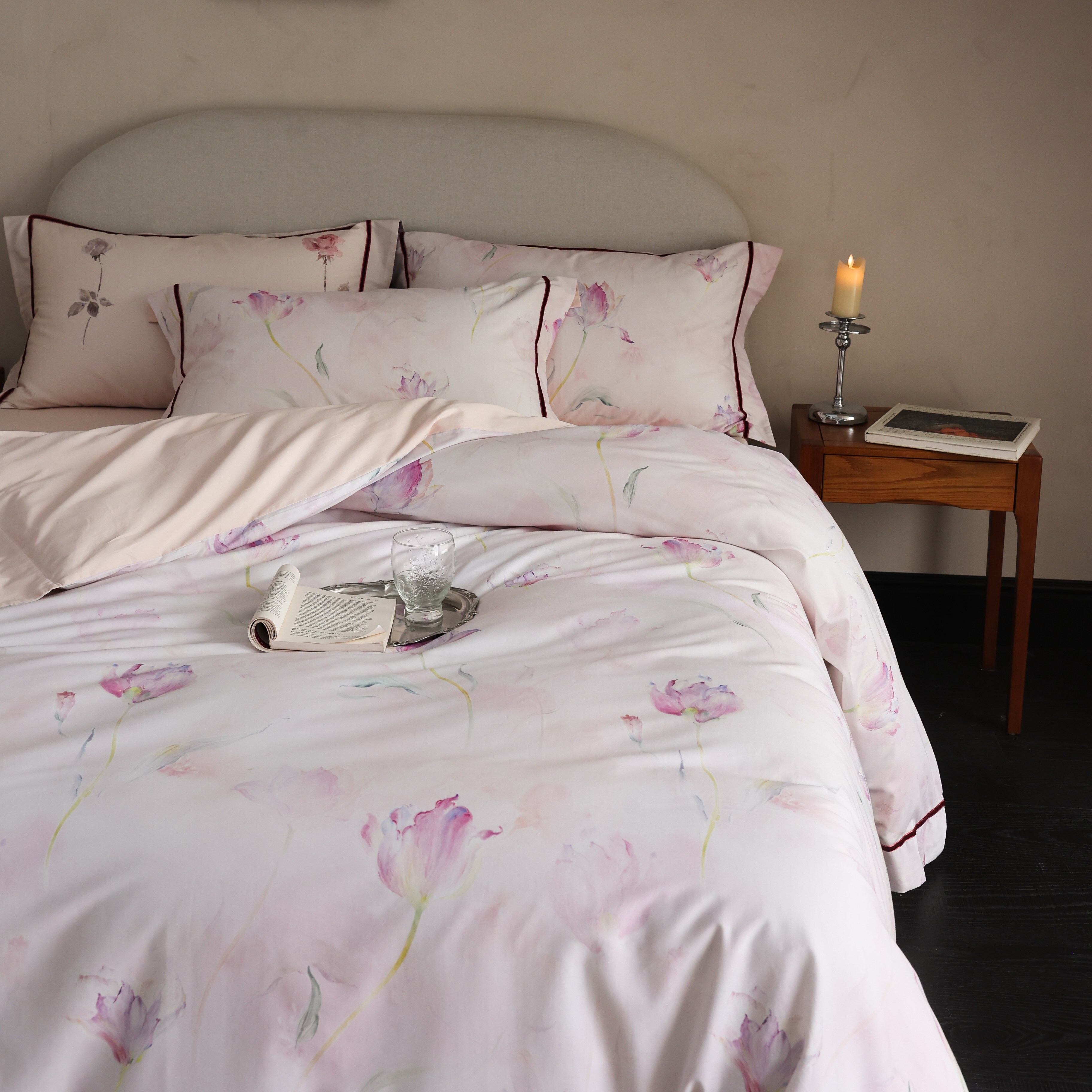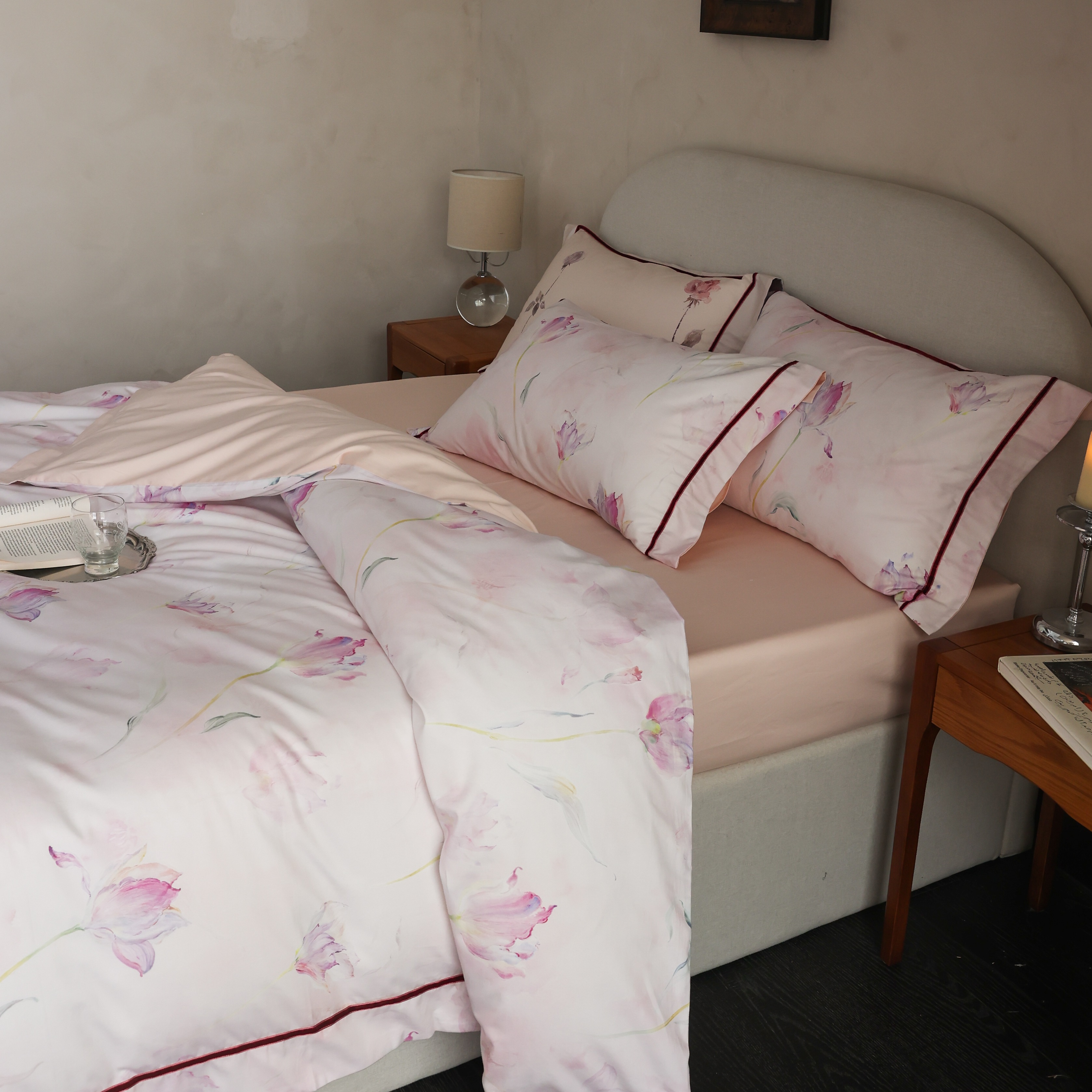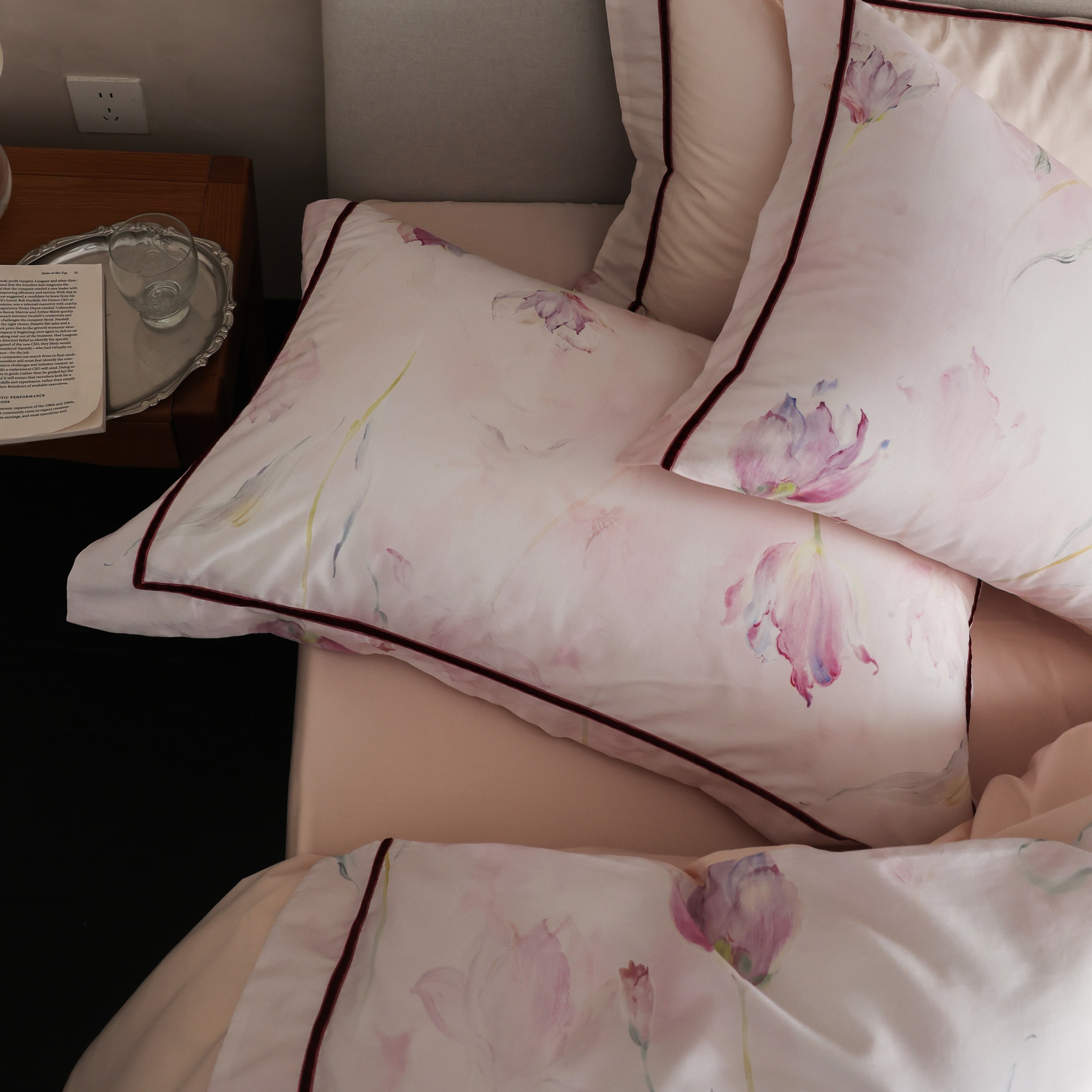 初拾 2025新款100s全棉纯棉数码印花复古丝绒织带四件套 油画玫瑰