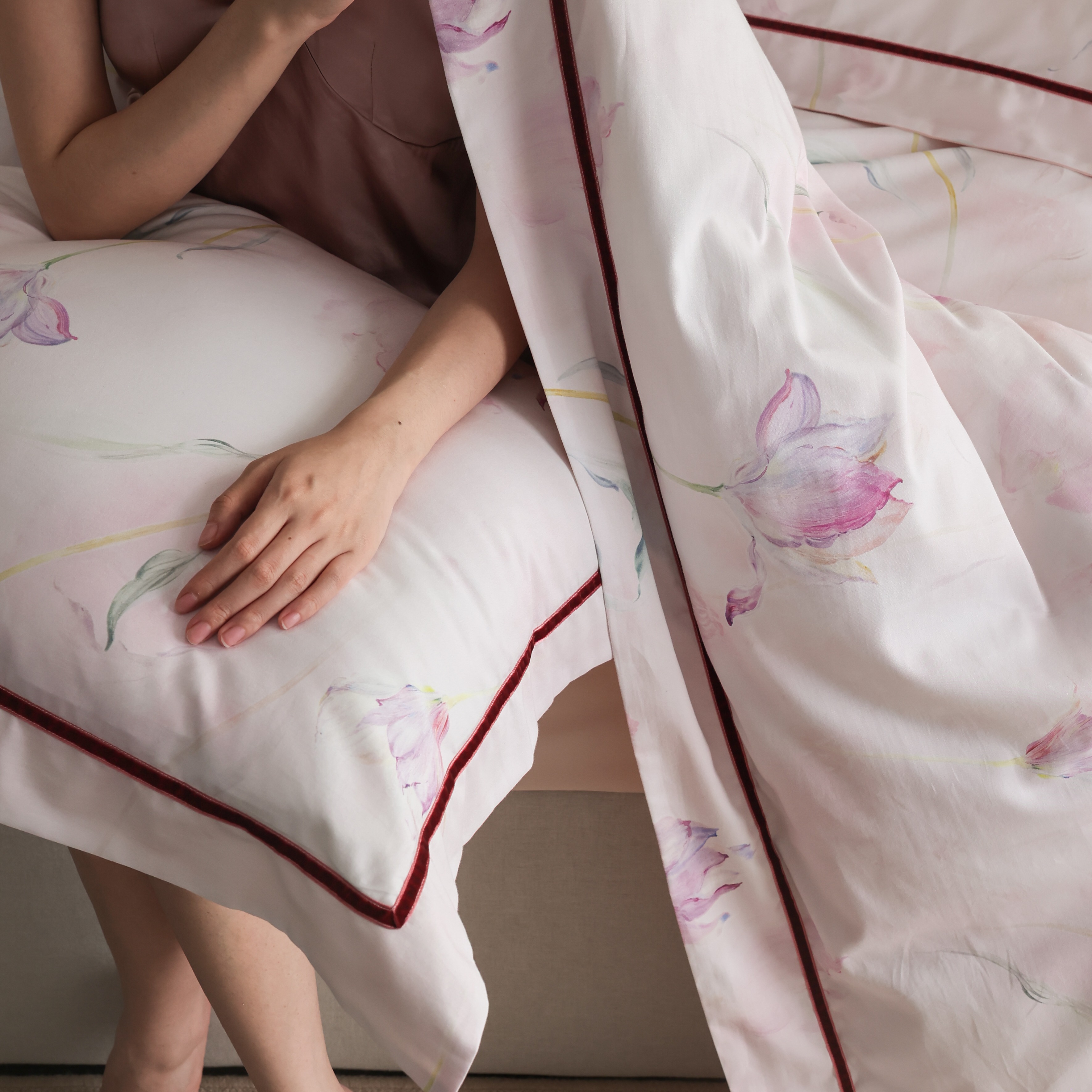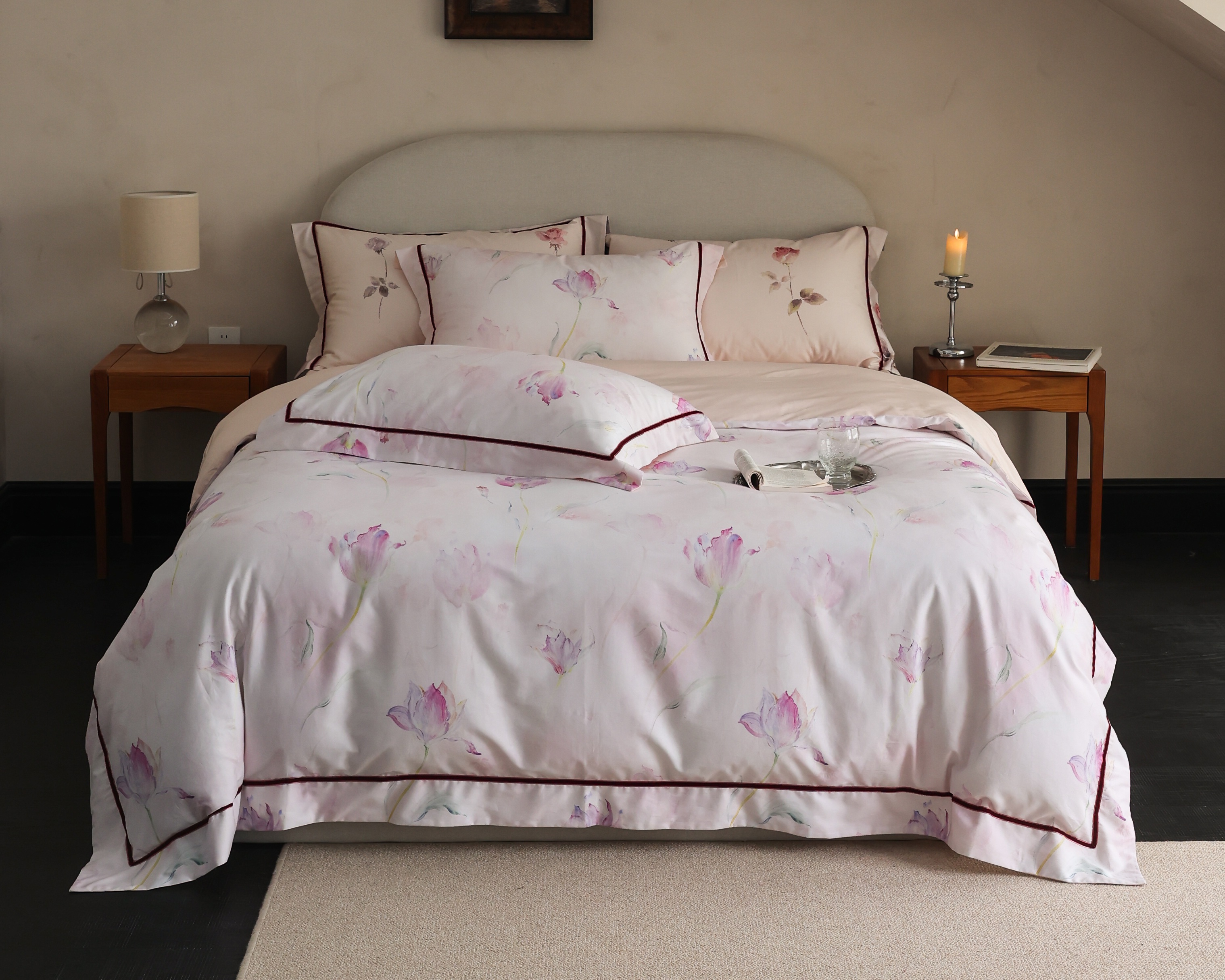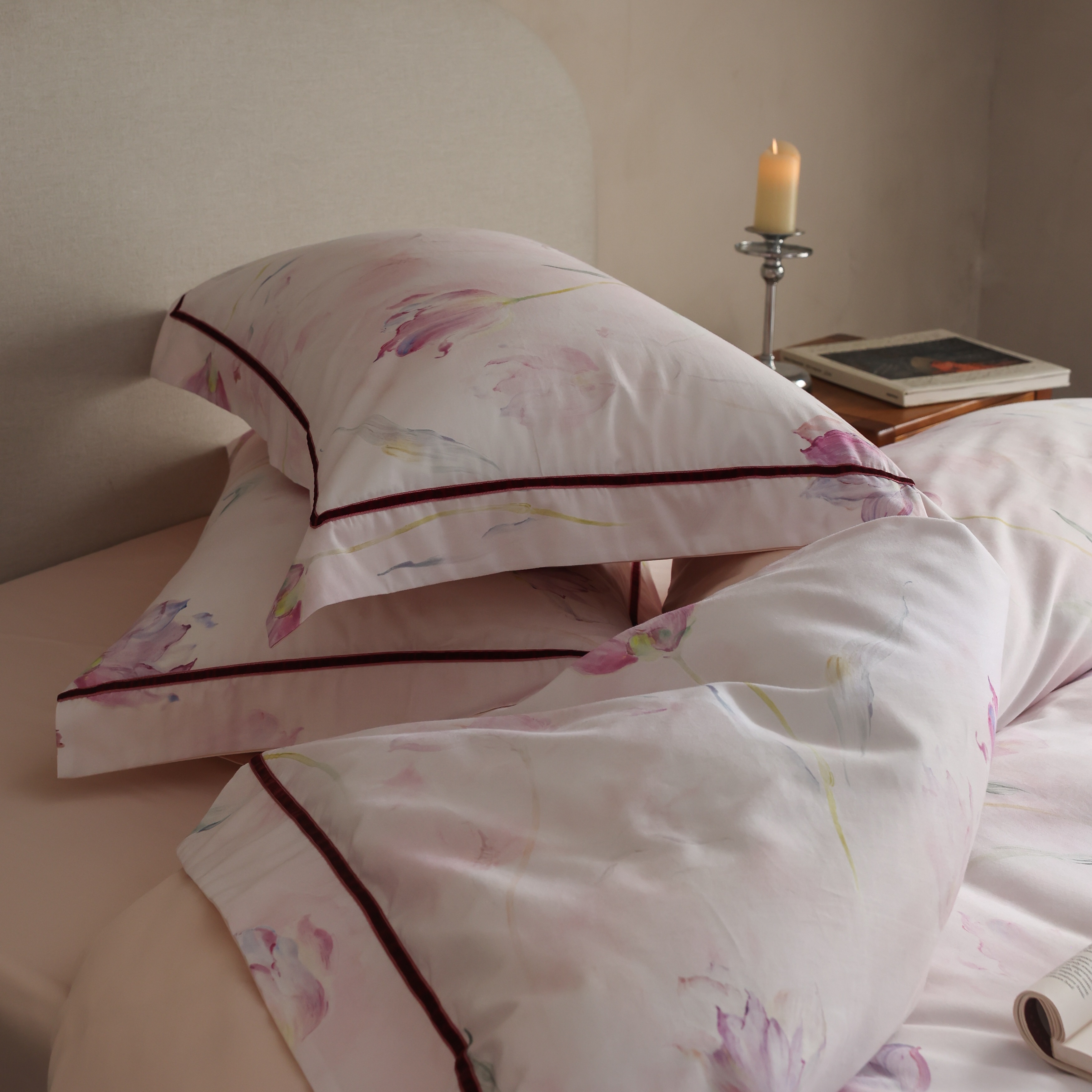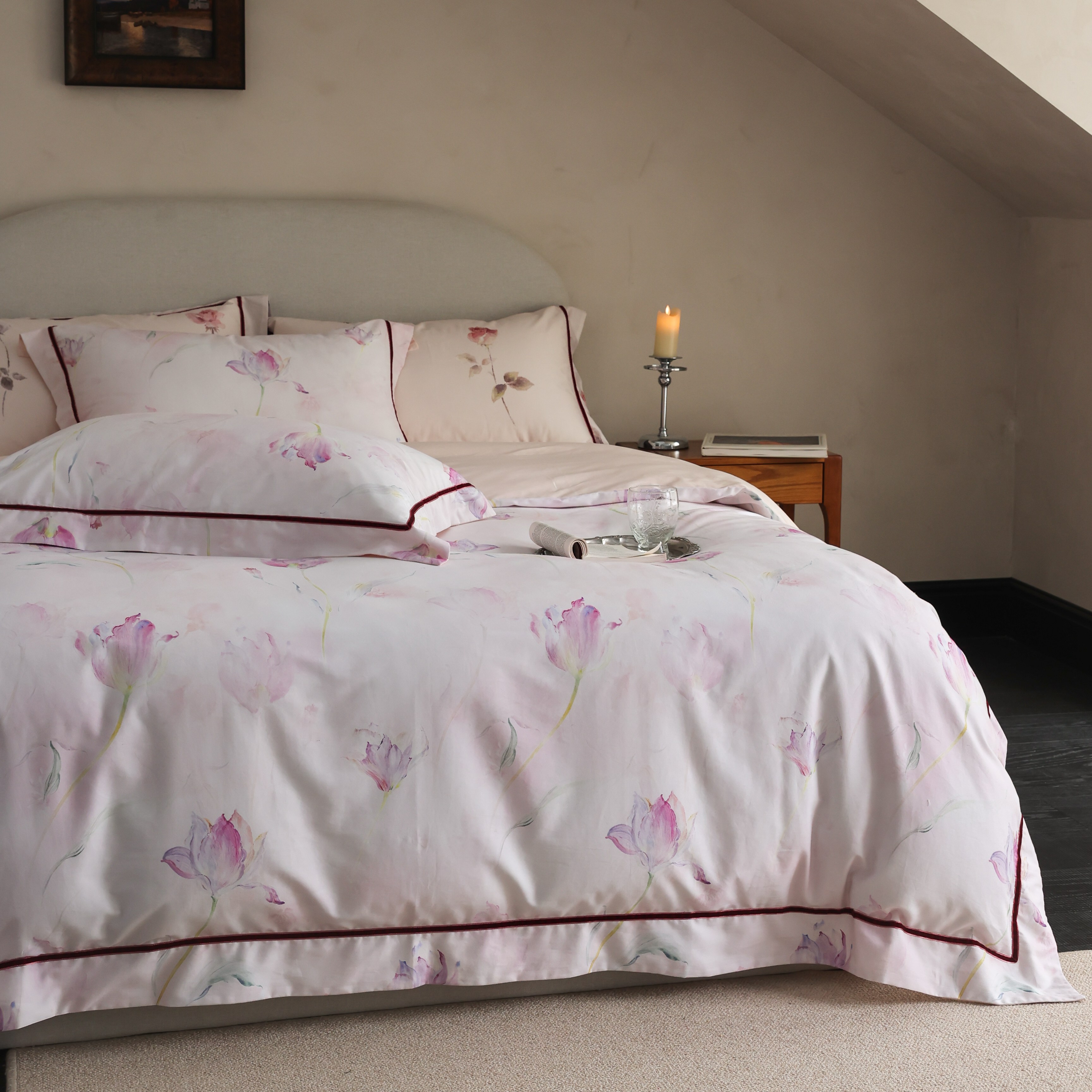 初拾 2025新款100s全棉纯棉数码印花复古丝绒织带四件套 油画玫瑰