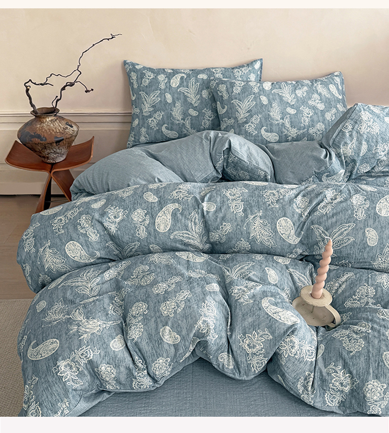 壹号库家纺 2025年新品A类仿麻中古风皱皱纱双层纱四件套 青花瓷