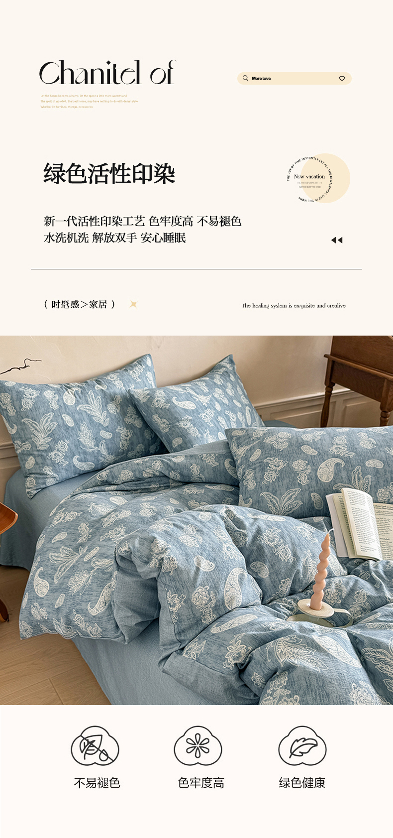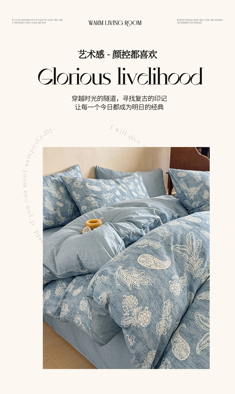 (总)壹号库家纺 2025年新品A类仿麻中古风皱皱纱双层纱四件套,芳草集,芳华,兰亭序,莫里斯,南枝,青花瓷,塞纳河畔,西西里,喜寐,香奈紫,雅韵,一路生花,远山青黛,紫烟