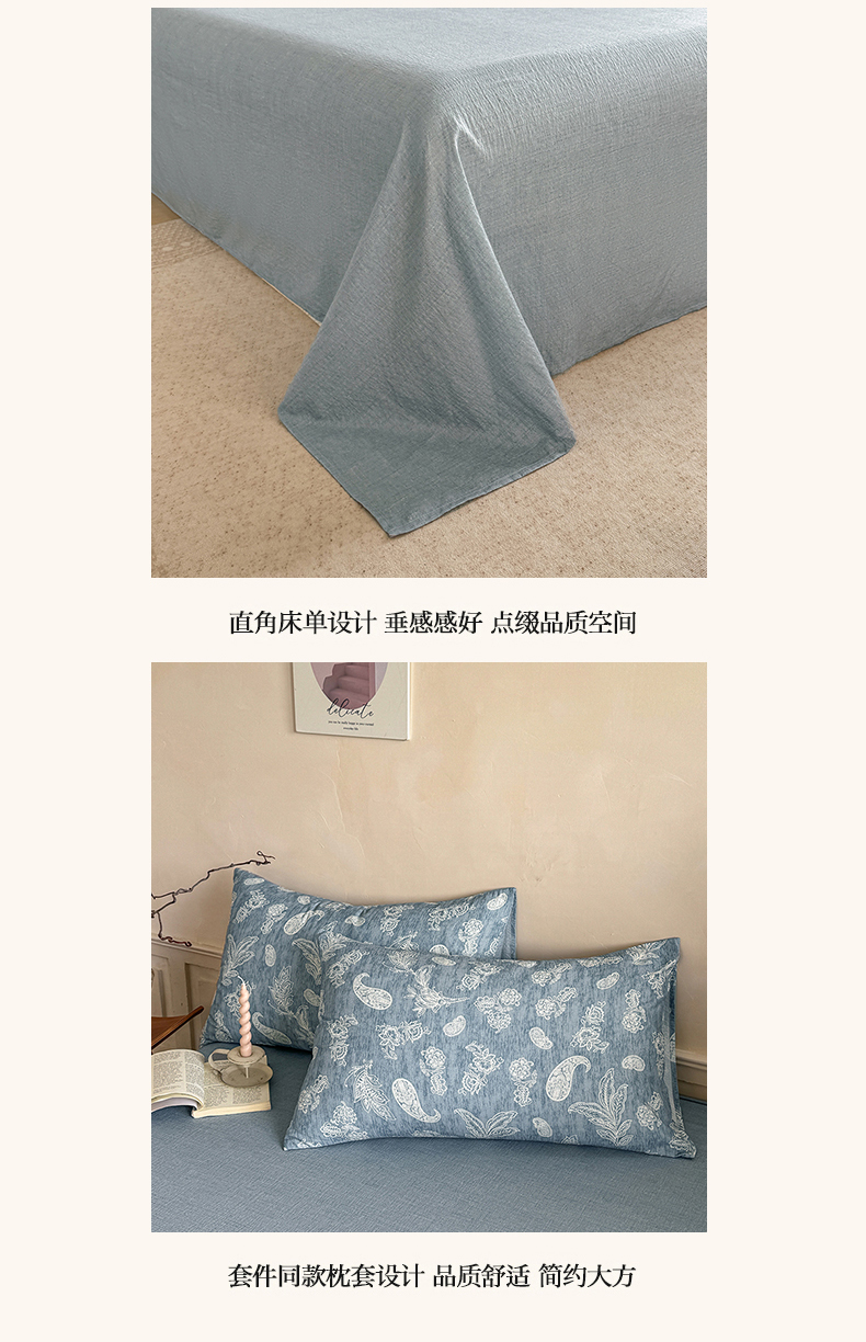 (总)壹号库家纺 2025新款水洗皱皱纱四件套-简单款,白茶,兔巴巴,十里桃花,彩虹糖,梦露,无印兰格,丽莎,蕾丝小兔,甜茶,幸福里,快乐小象,西高地,豆蔻,草莓方糖,kiki猫,百福(兰),豹富-兰,芝士奶酪,春风里,豹富-粉,木兮绿