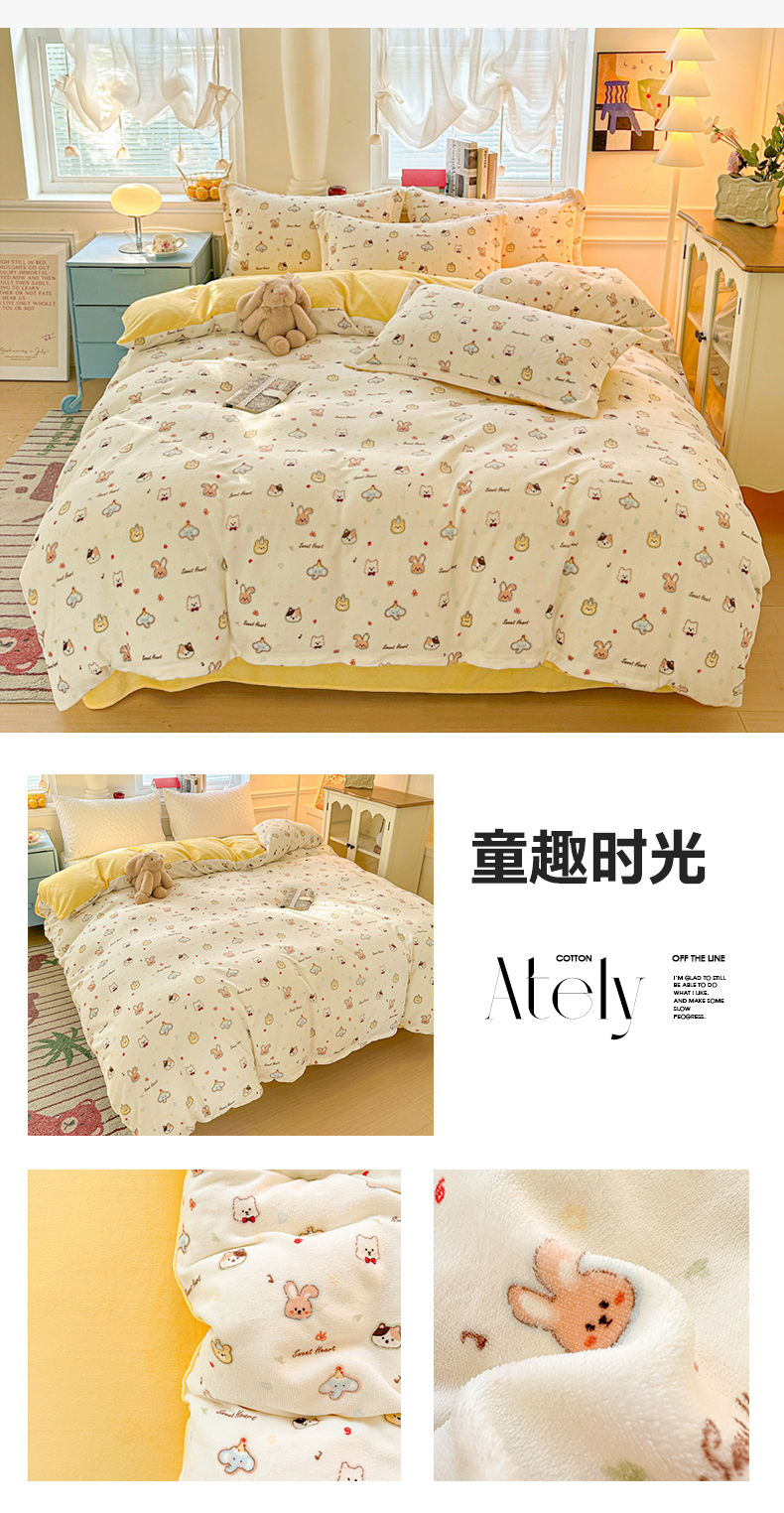 (总)卡普家居 2025新款加厚保暖牛奶绒系列--四件套,童趣时光,蝶舞格韵,粉熊猫,凯蒂乐园,萌萌熊,米兰风尚,森林小兔,幽兰花谷,童话星空,爱意满满,波波熊,波士顿,初夏花开,呆萌狗狗,花涧,花开物语,花漾,幻想,卡布林,快乐布鲁,蓝色梦想,浪漫玫瑰,满心欢喜,萌趣熊宝,慕斯,奶牛杯,欧风花影,千鸟格,秋日细雨,柔伊,甜酷,甜心,小煤球,星光汇,幸运兔,熊猫皮皮,芽蜜,郁金香,紫韵花开