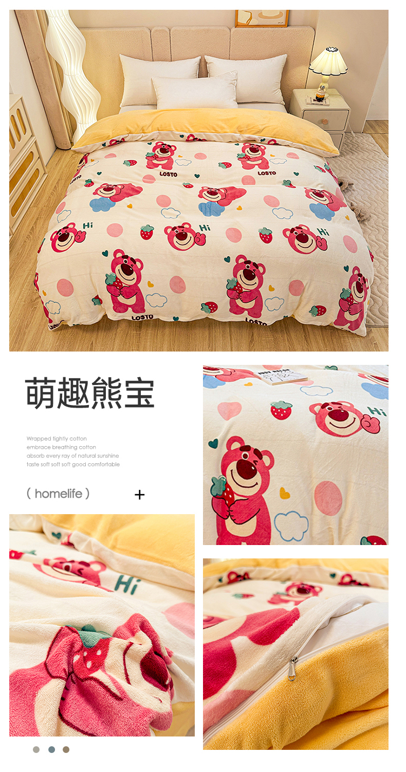 商品名称:卡普 2025新款牛奶绒印花单被套萌萌熊