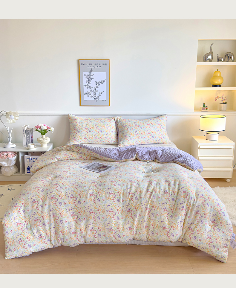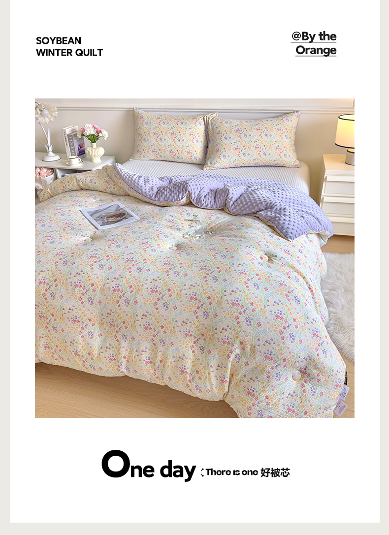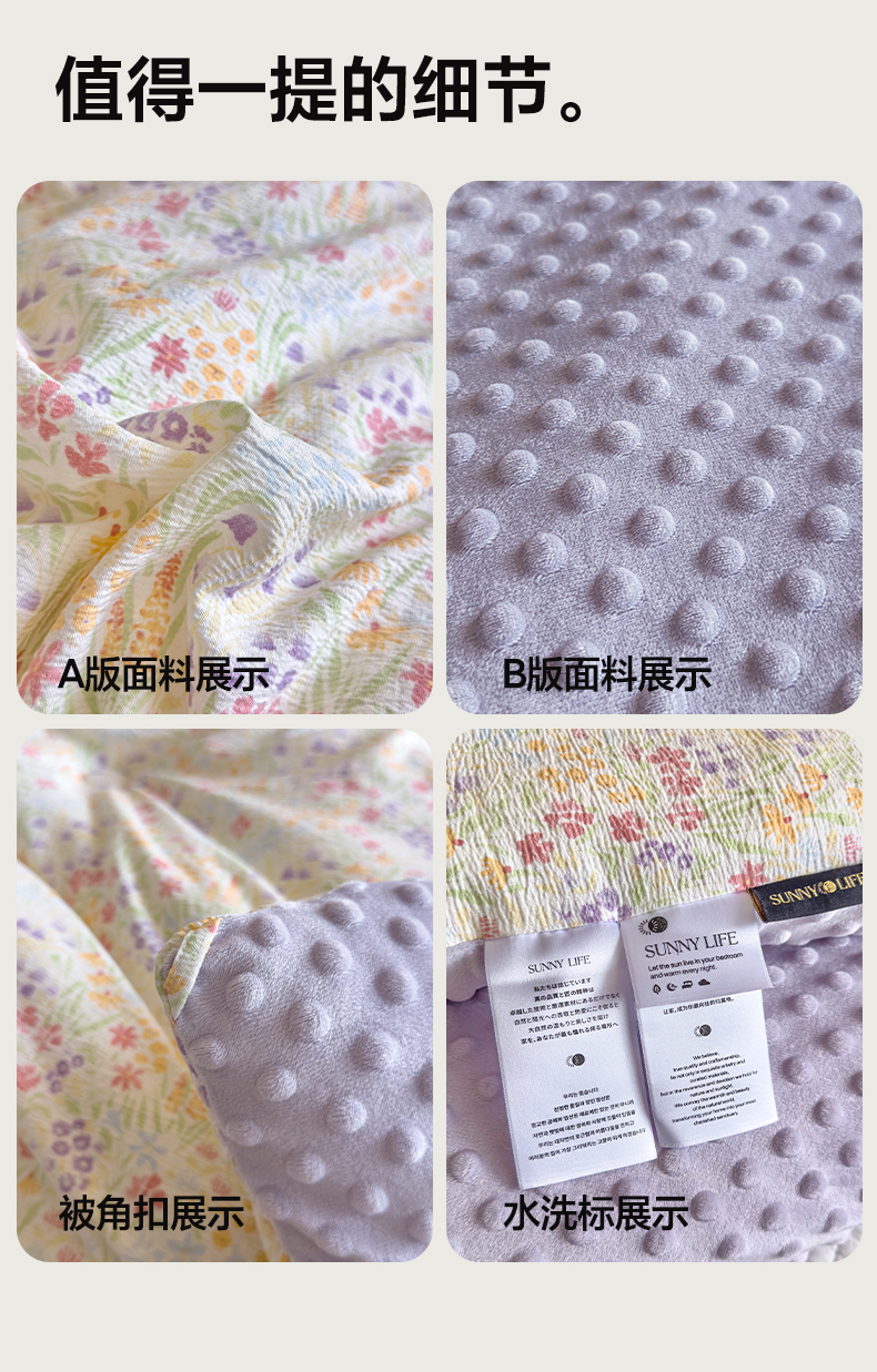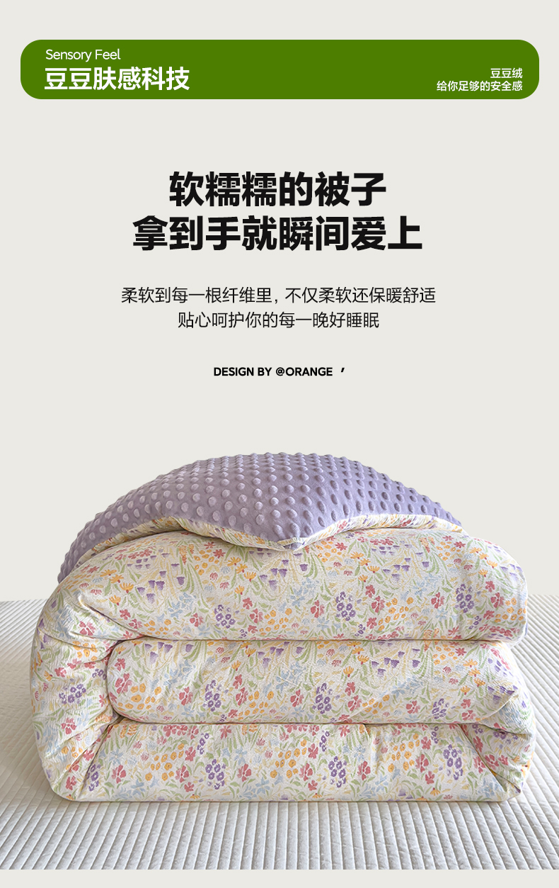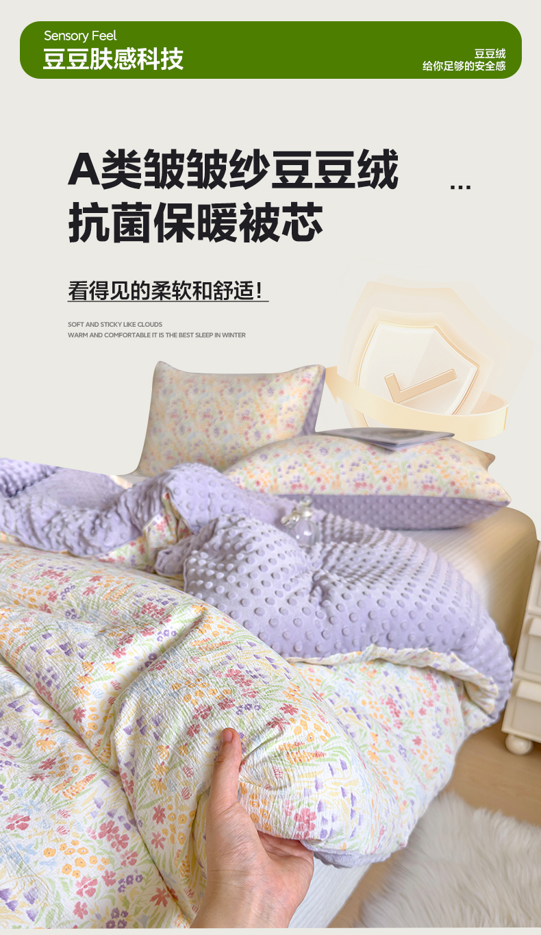 商品名称:玛德琳 2025新款A类皱皱纱豆豆绒抗菌保暖被子被芯 莫奈花园
