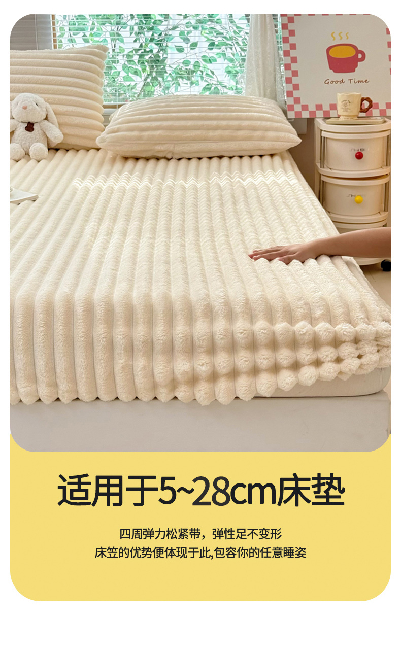 • 91家纺网 家纺一手货源 找家纺 柏薇 2025新款A类300g兔毛抽条床笠 抹茶绿-床笠