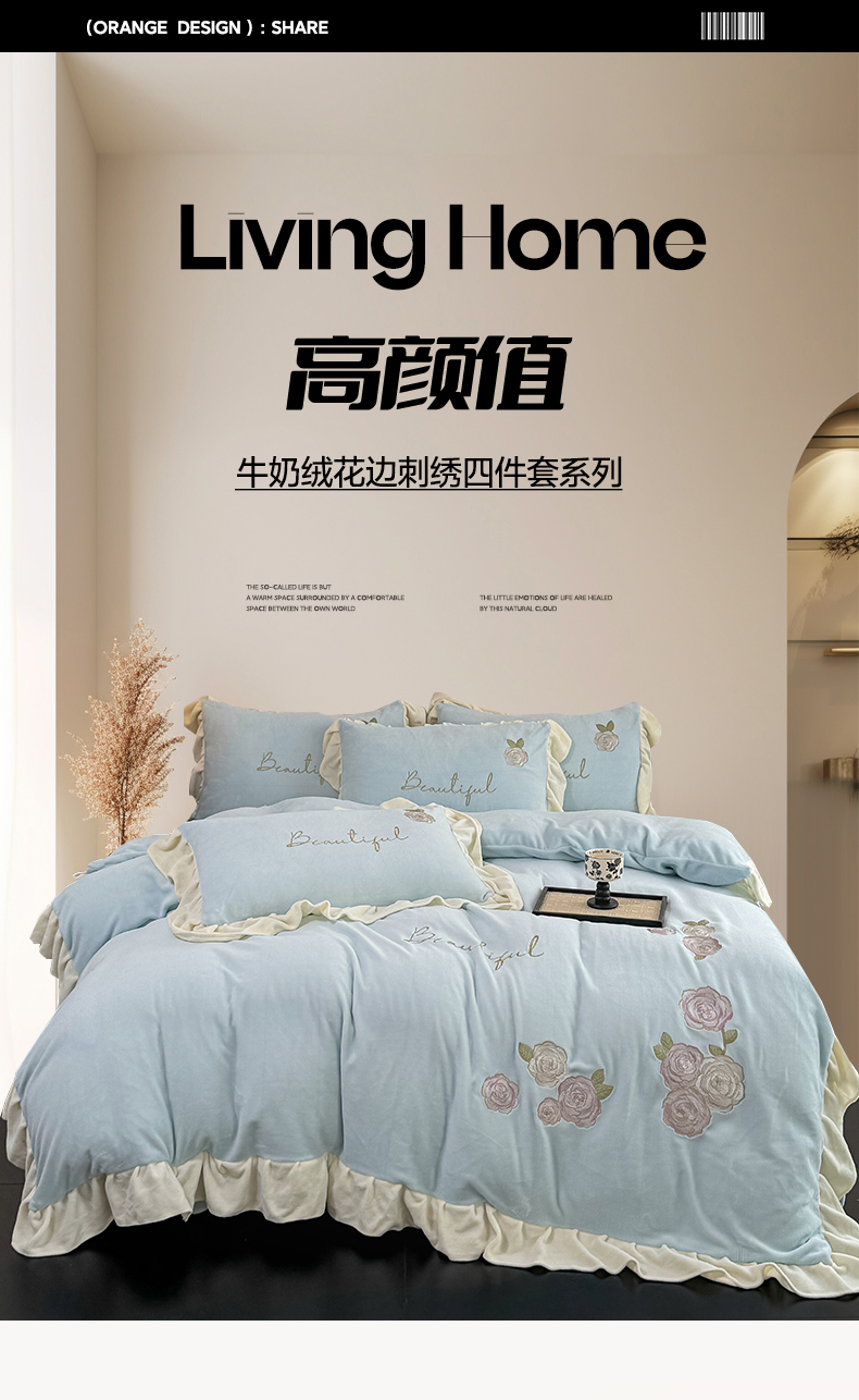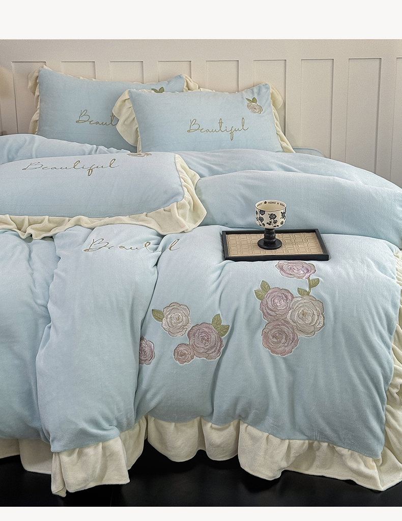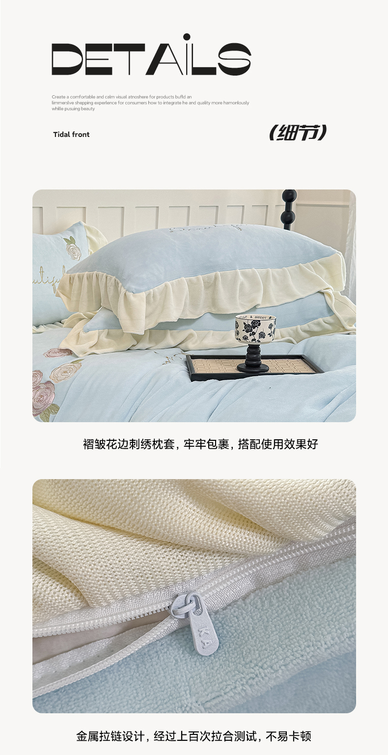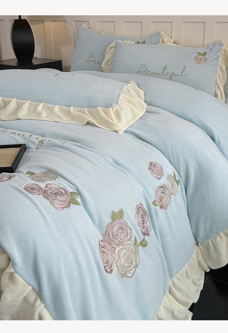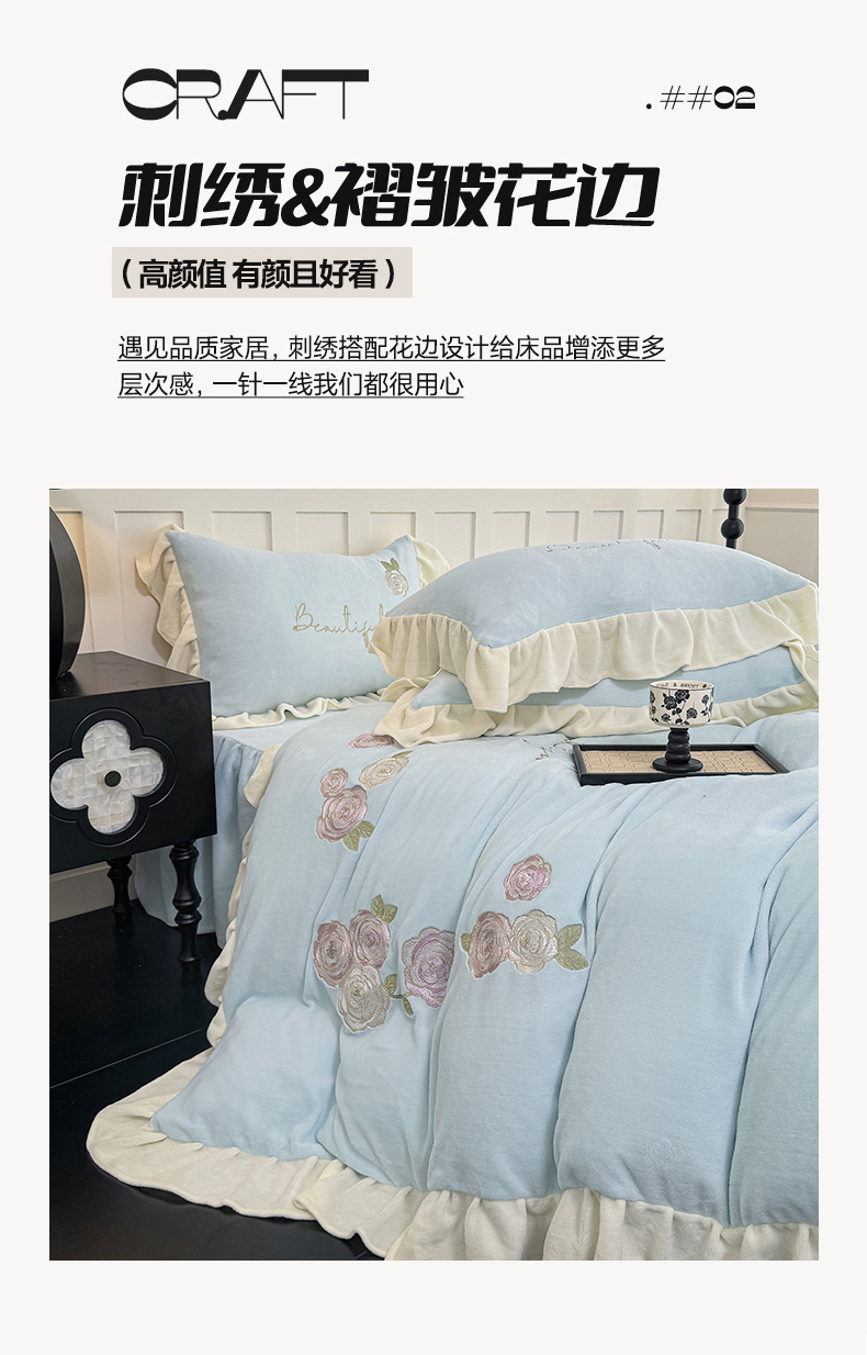 当前位置: 91家纺网 > 商品网购 > 床品套件 > 四件套 > 牛奶绒四件套 > KA家纺 2025新款冬高克重刺绣床裙款花边款牛奶绒四件套-秘密花园系列 秘密花园兰
