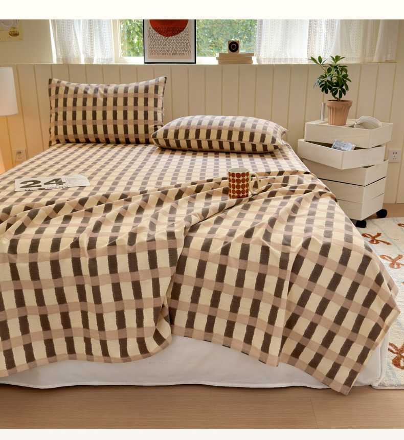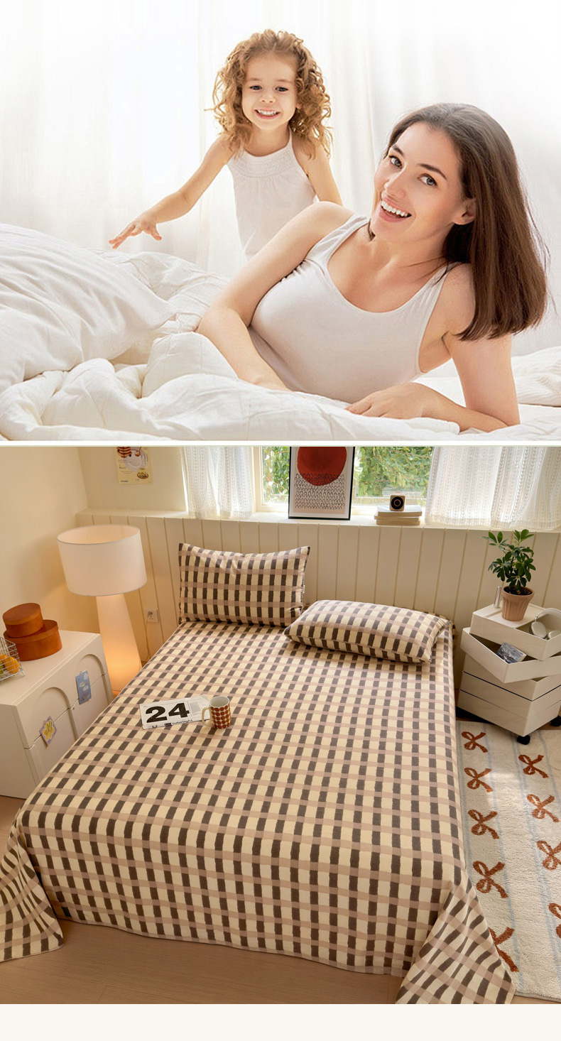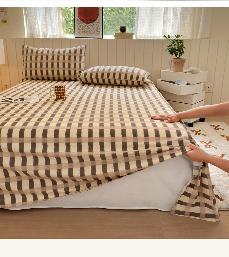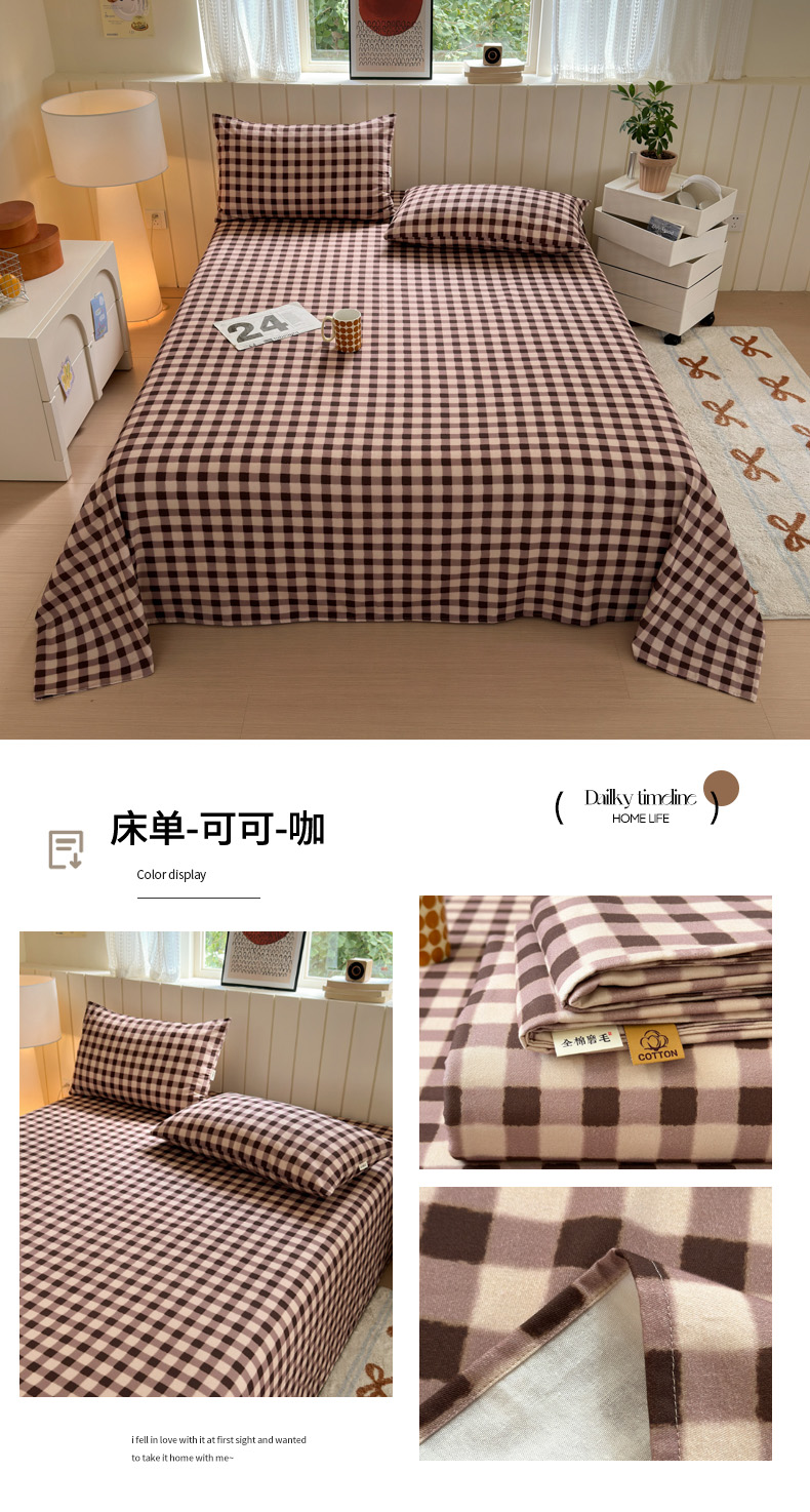 如意朵 2025新款时尚印花全棉加厚磨毛床单 艾格-浅咖