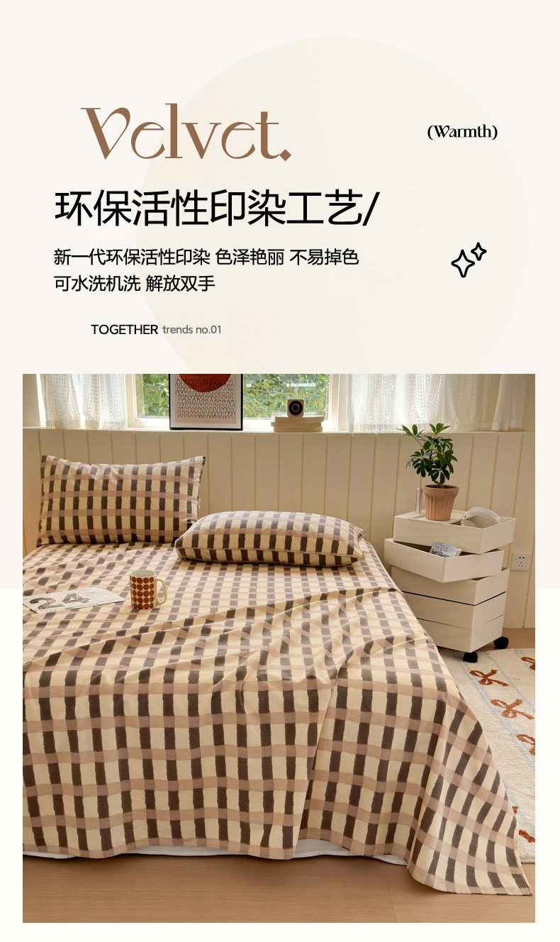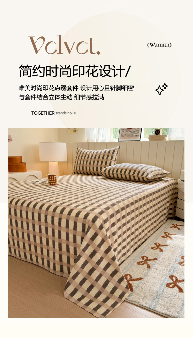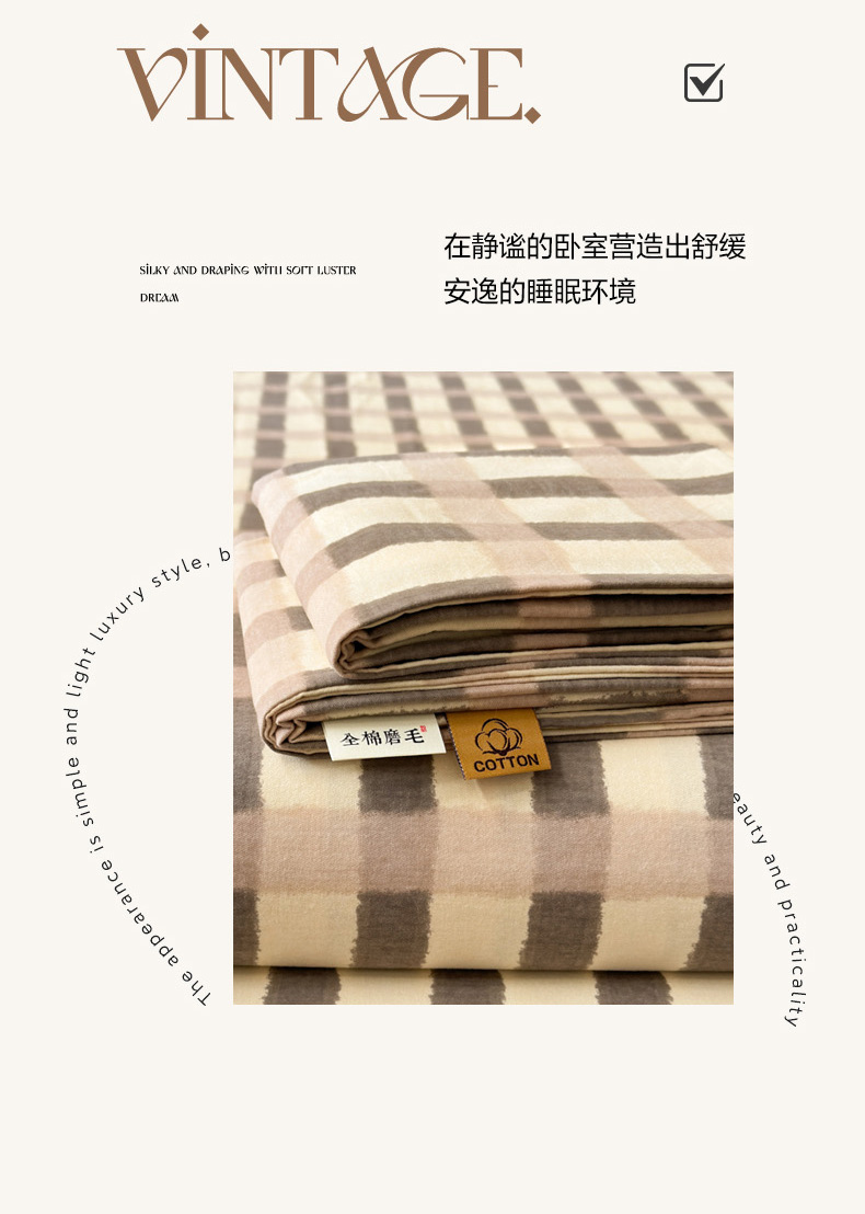 商品名称:如意朵 2025新款时尚印花全棉加厚磨毛床单 艾格-浅咖