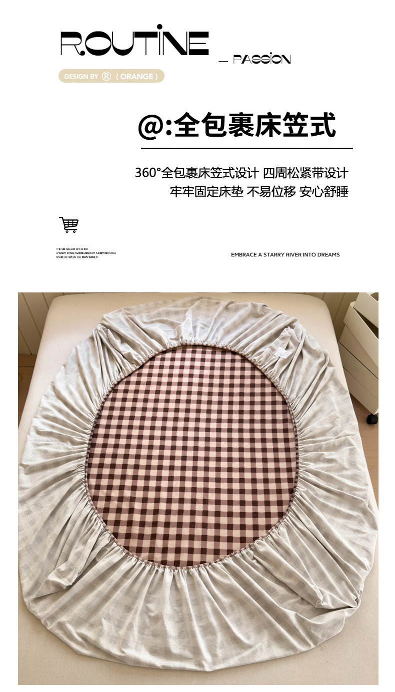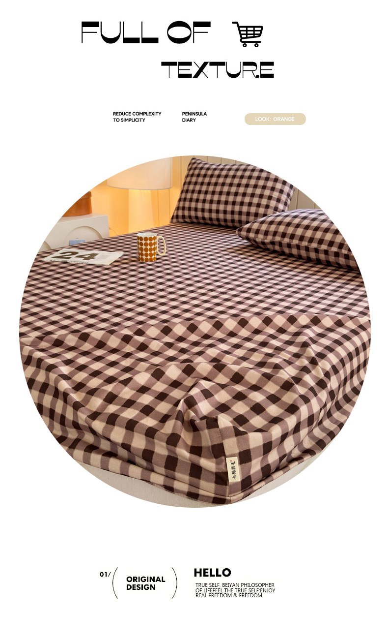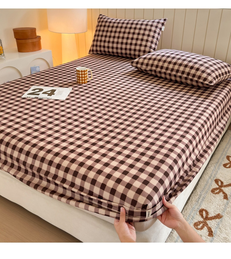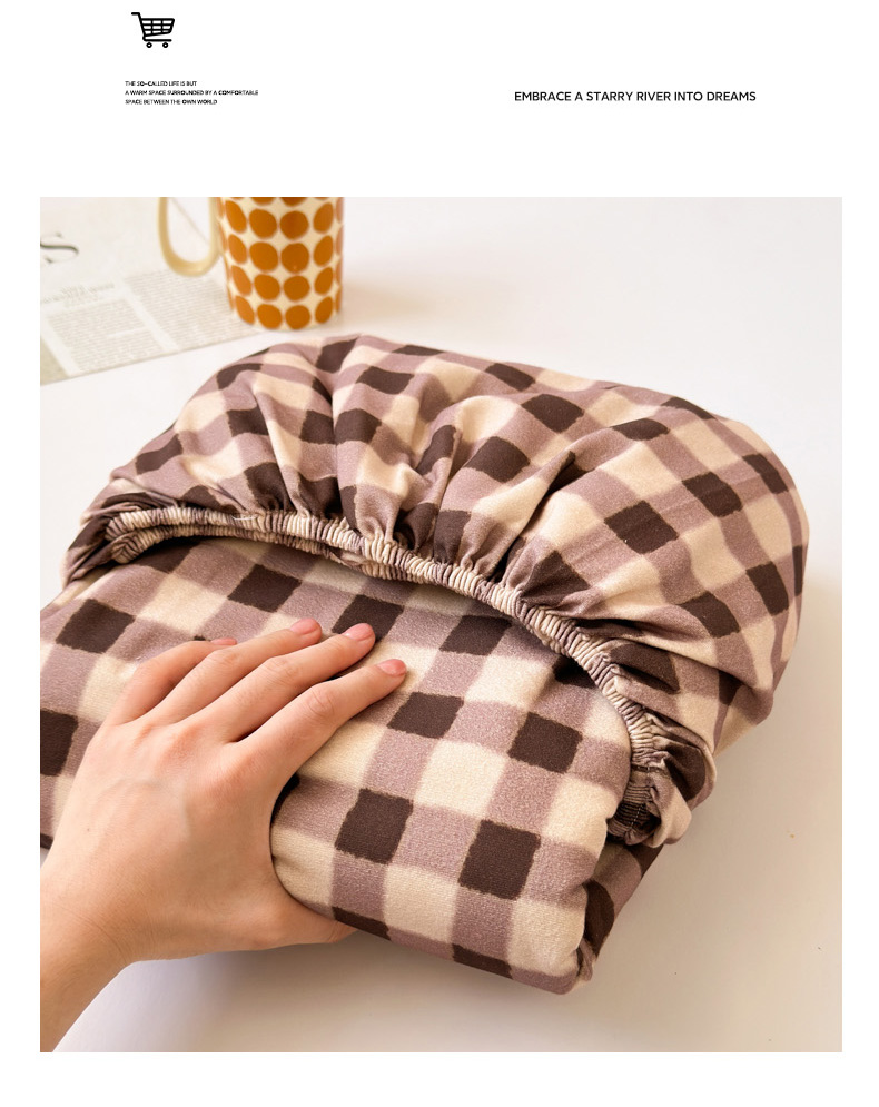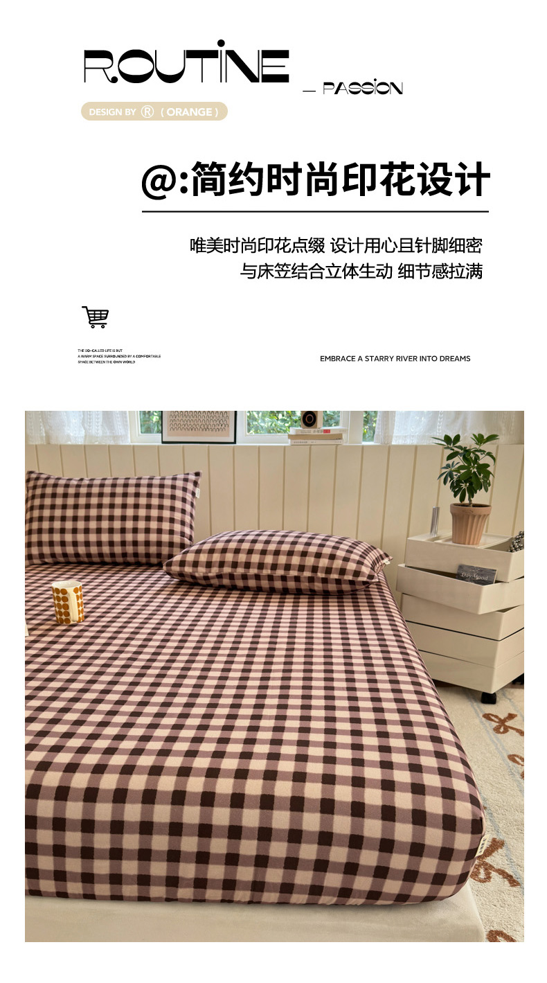 如意朵 2025新款时尚印花全棉加厚磨毛床笠 可可-咖