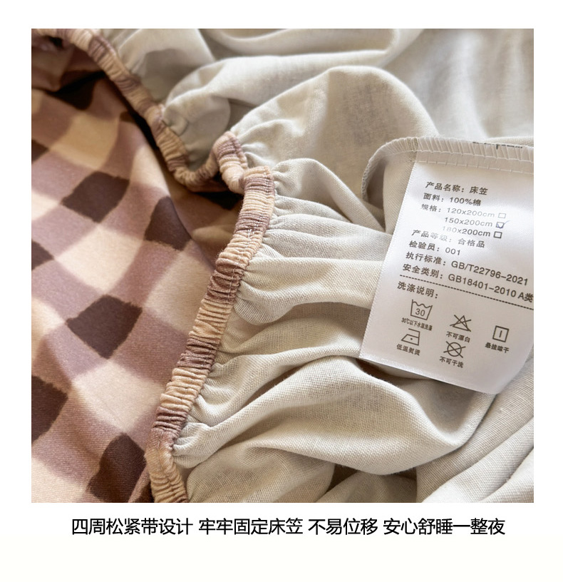 商品名称:如意朵 2025新款时尚印花全棉加厚磨毛床笠 可可-咖