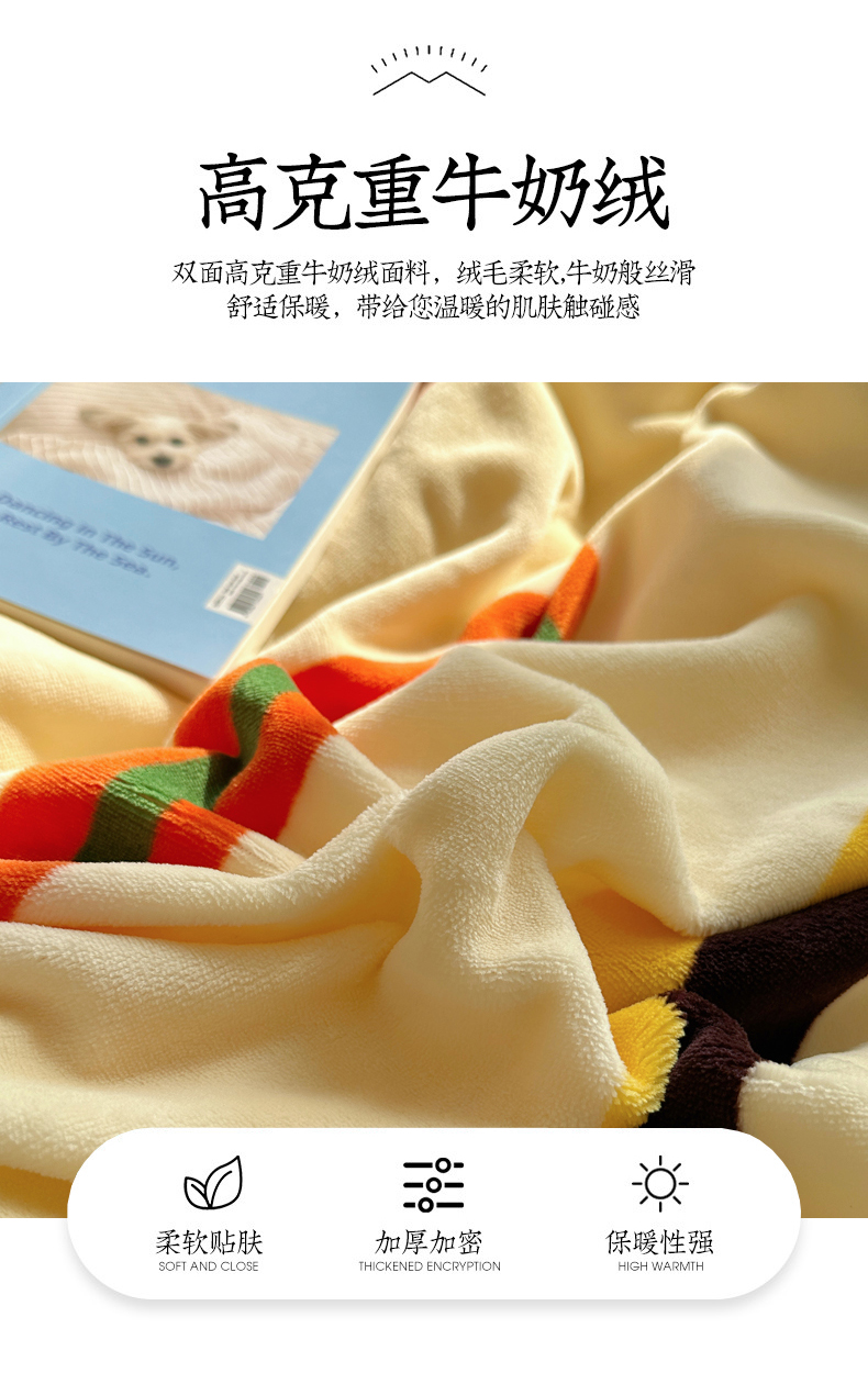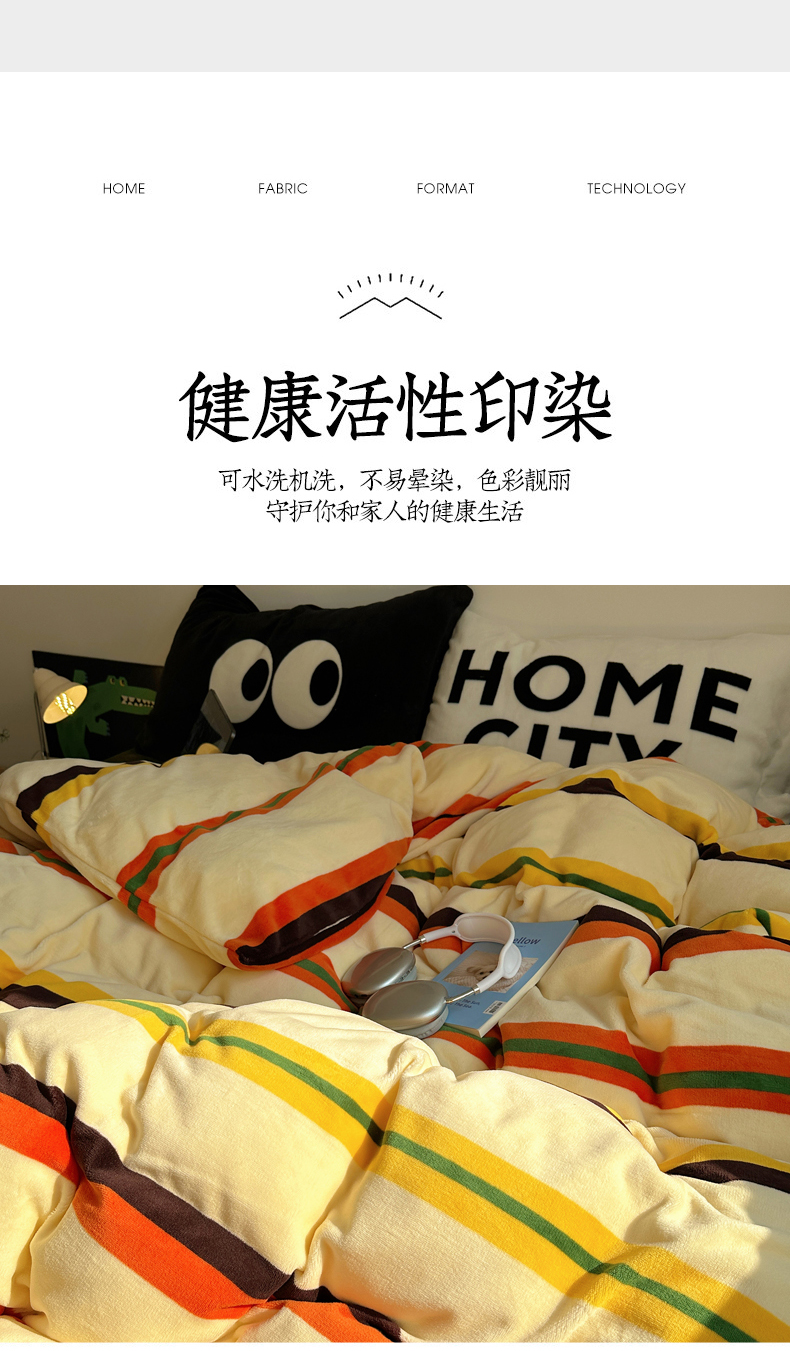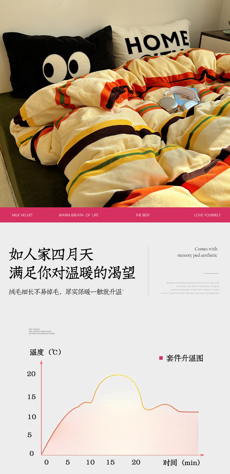 商品名称:蜜宿 2025新款大眼睛混搭条纹牛奶绒四件套(小号三件套枕套默认发黑色大眼睛款!!也可以调换字母款枕套!!) 绒-ins多彩条