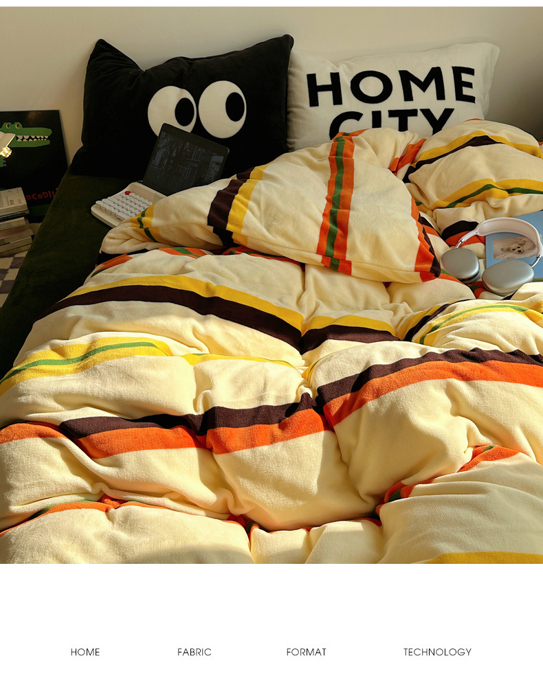 蜜宿 2025新款大眼睛混搭条纹牛奶绒四件套(小号三件套枕套默认发黑色大眼睛款!!也可以调换字母款枕套!!) 绒-ins多彩条