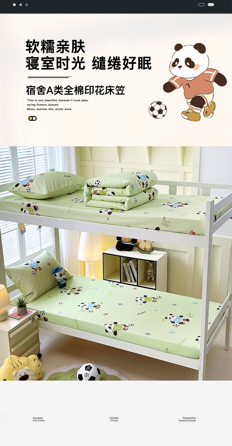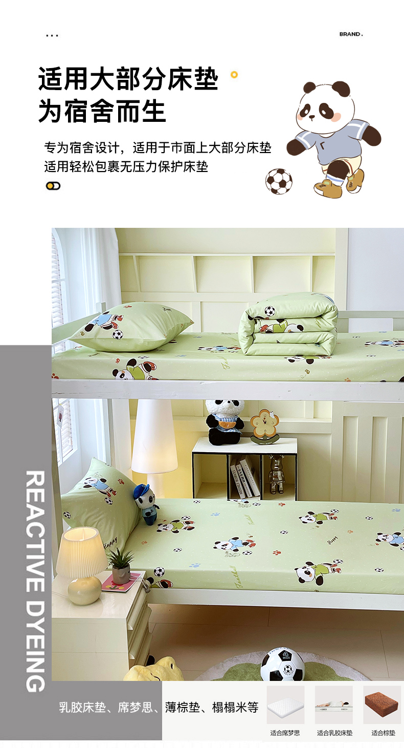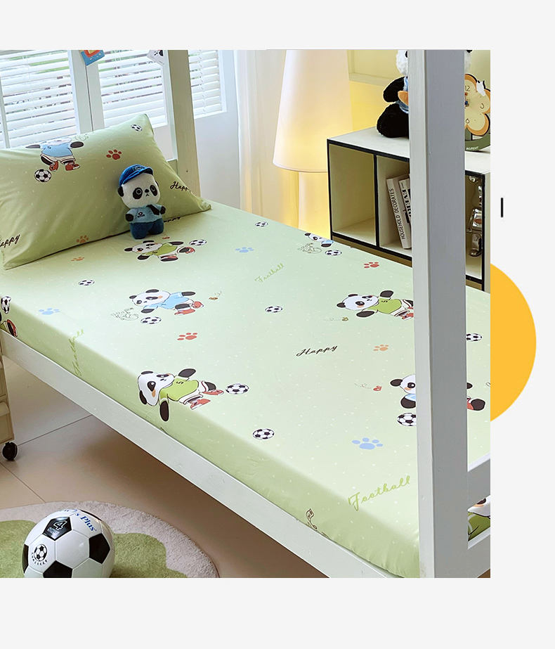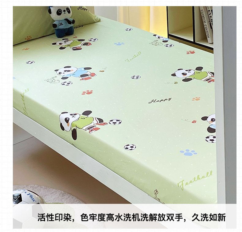 商品名称:金鑫汇家纺 2025新款A类全棉纯棉印花学生床单品床笠 床笠单件 足球争霸赛·绿