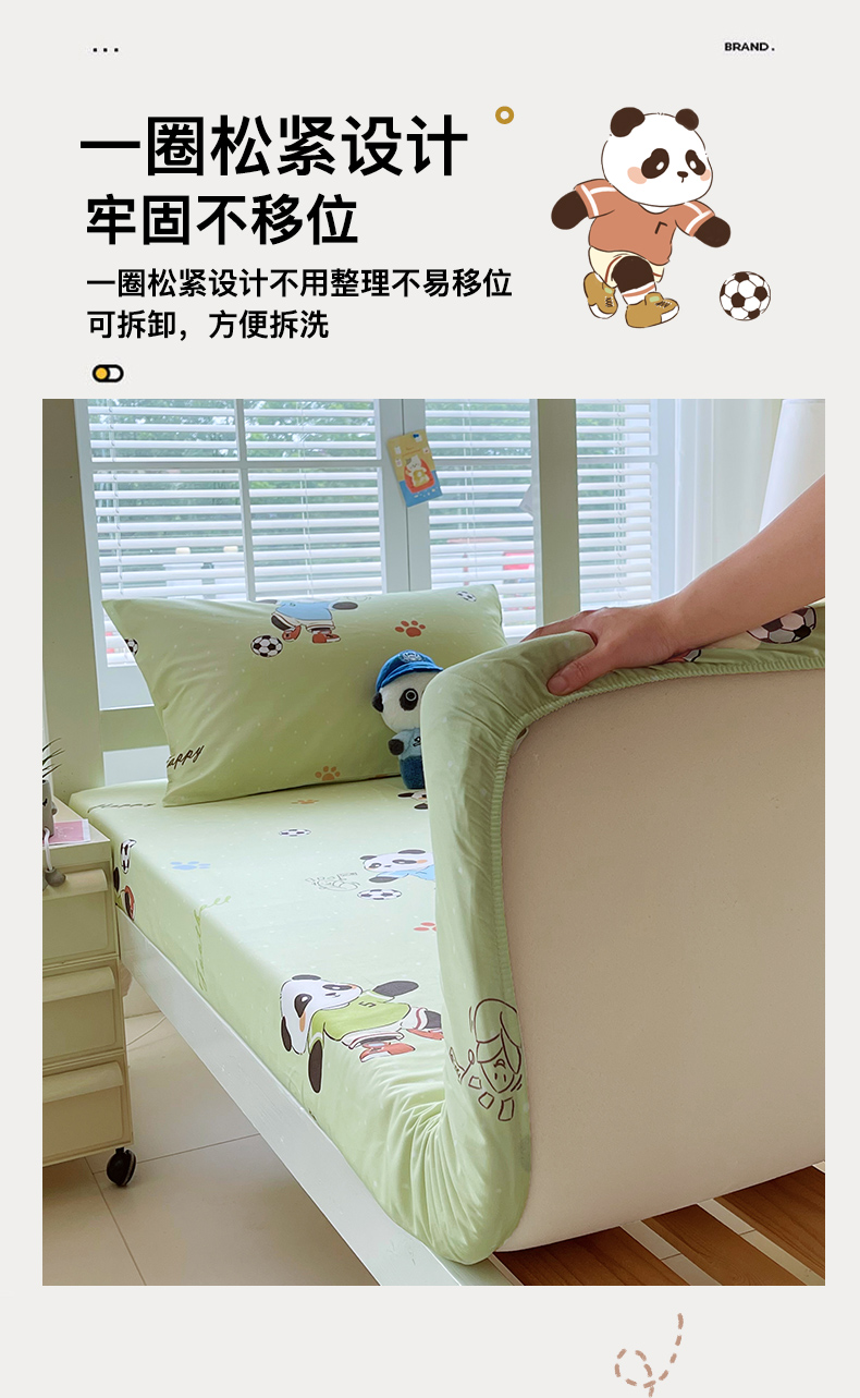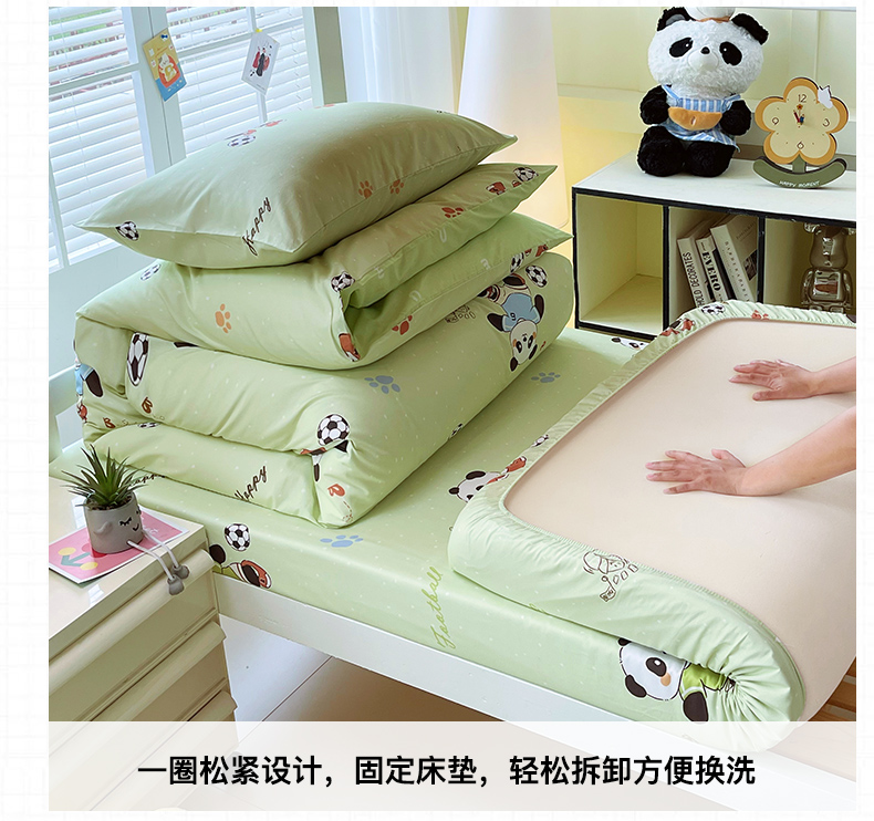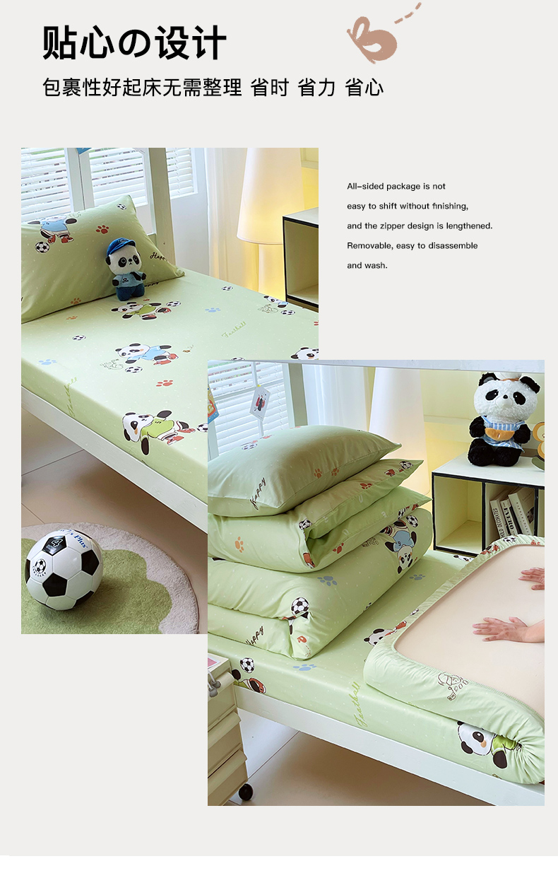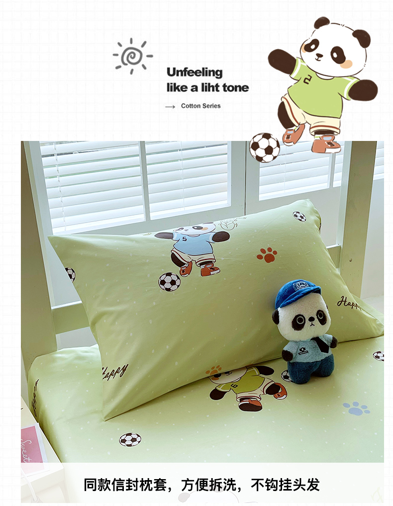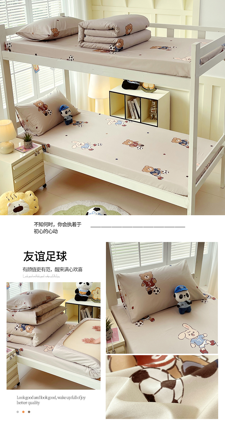 商品名称:金鑫汇家纺 2025新款A类全棉纯棉印花学生床单品床笠 床笠单件 足球争霸赛·绿