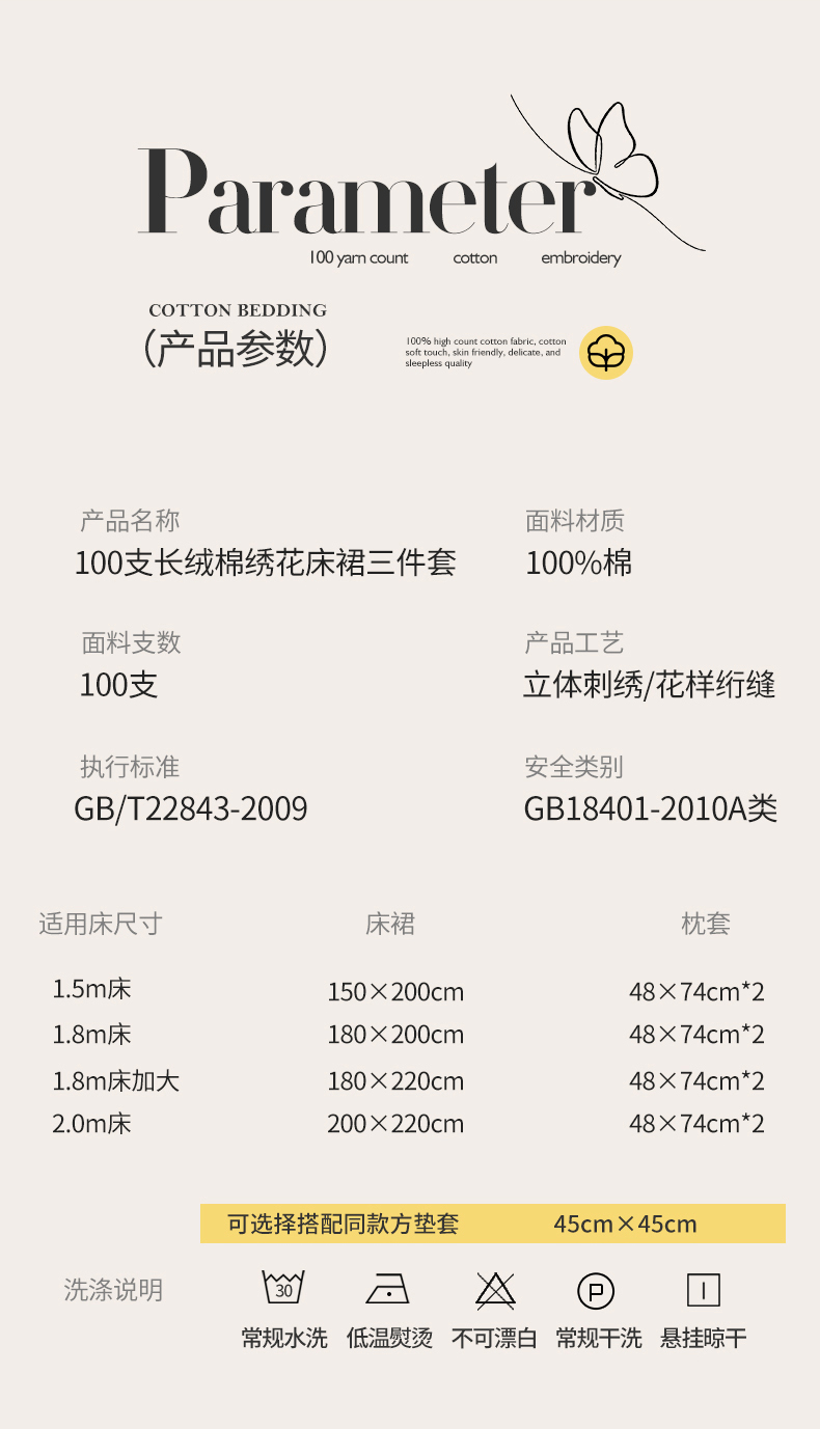 180*200cm床裙+一对枕套 | ¥180.00 |