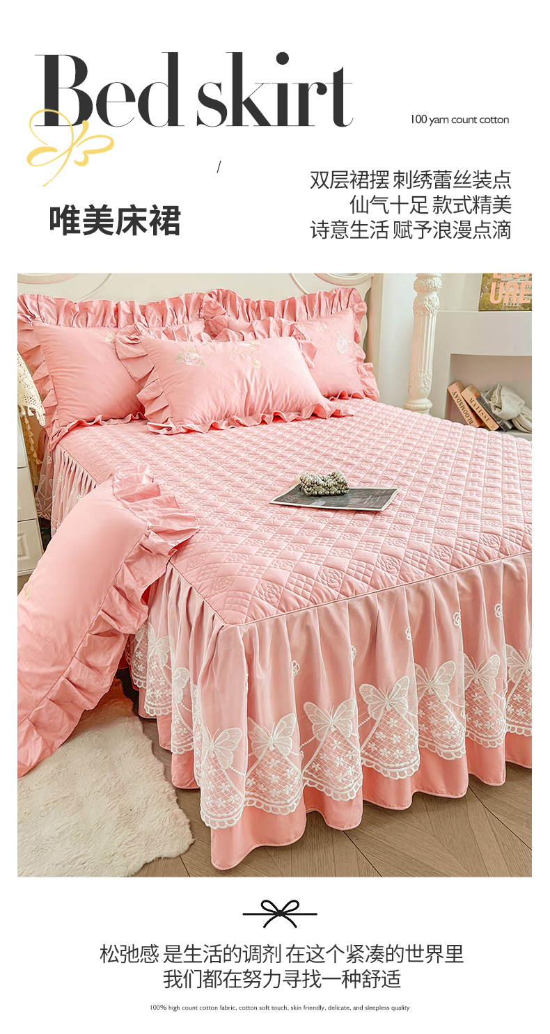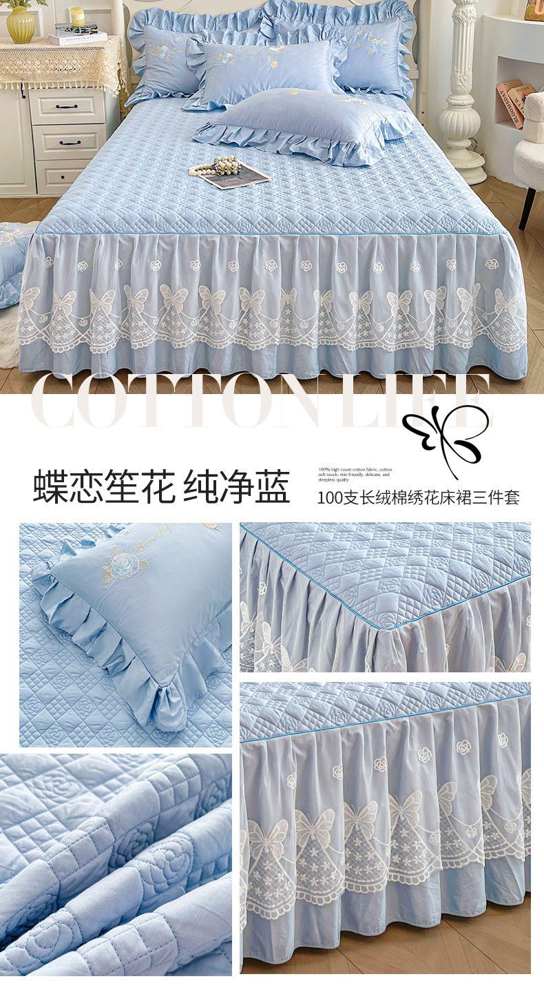当前位置: 91家纺网 > 商品网购 > 床品套件 > 三件套 > 宜凡家纺 2025新款长绒棉绣花夹棉床裙三件套--蝶恋笙花系列 蝶恋笙花 罗兰紫