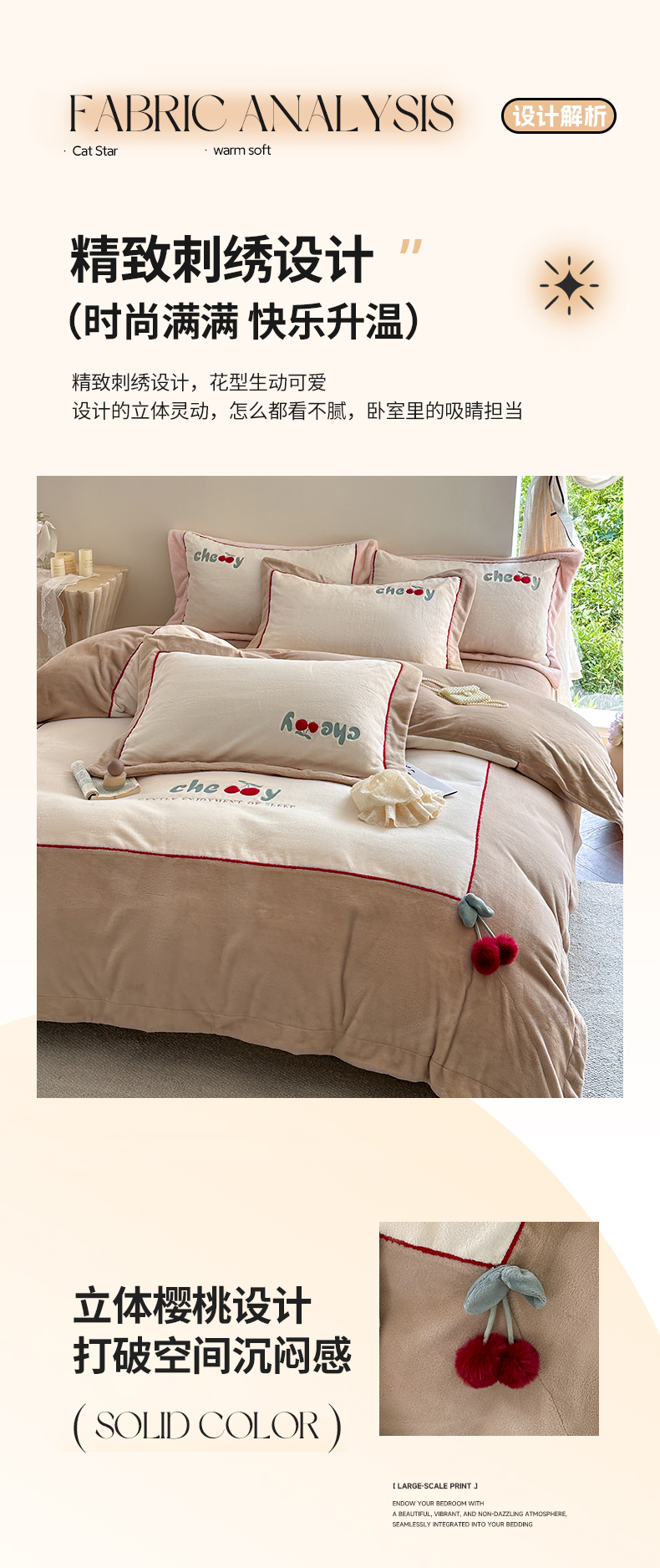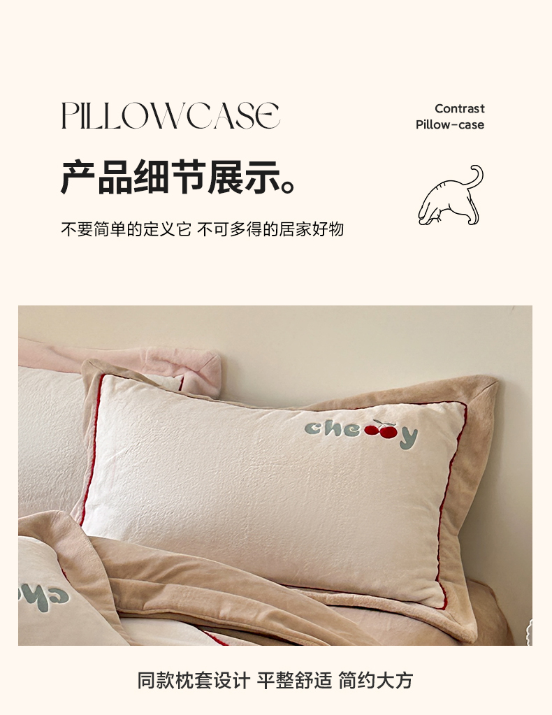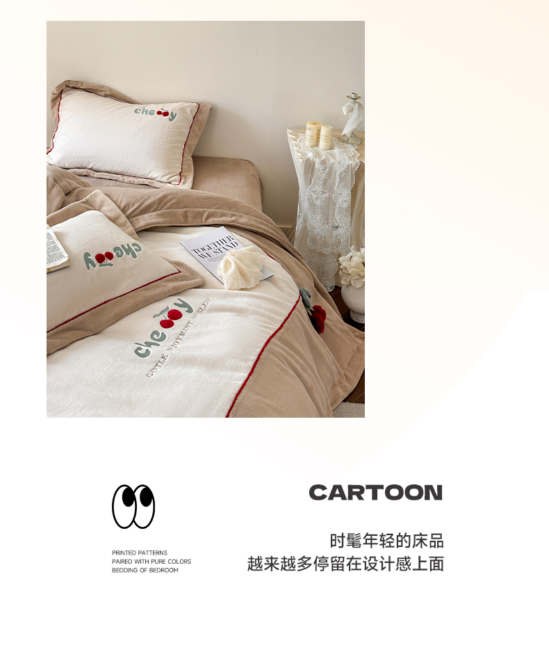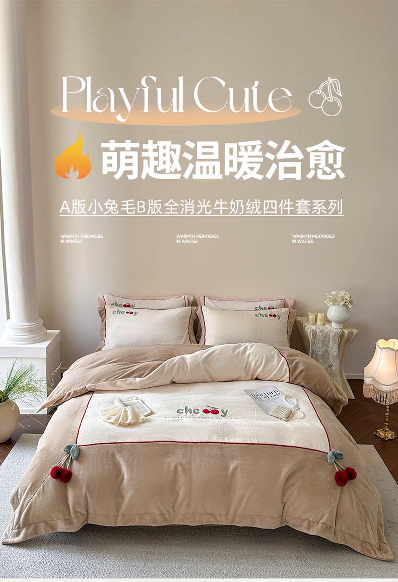 商品名称:艾唯希家纺 2025新款小兔毛全消光牛奶绒工艺四件套-绒樱桃系列 绒樱桃-驼