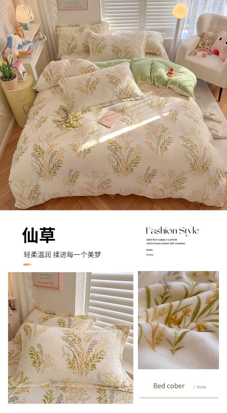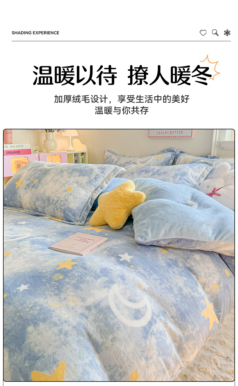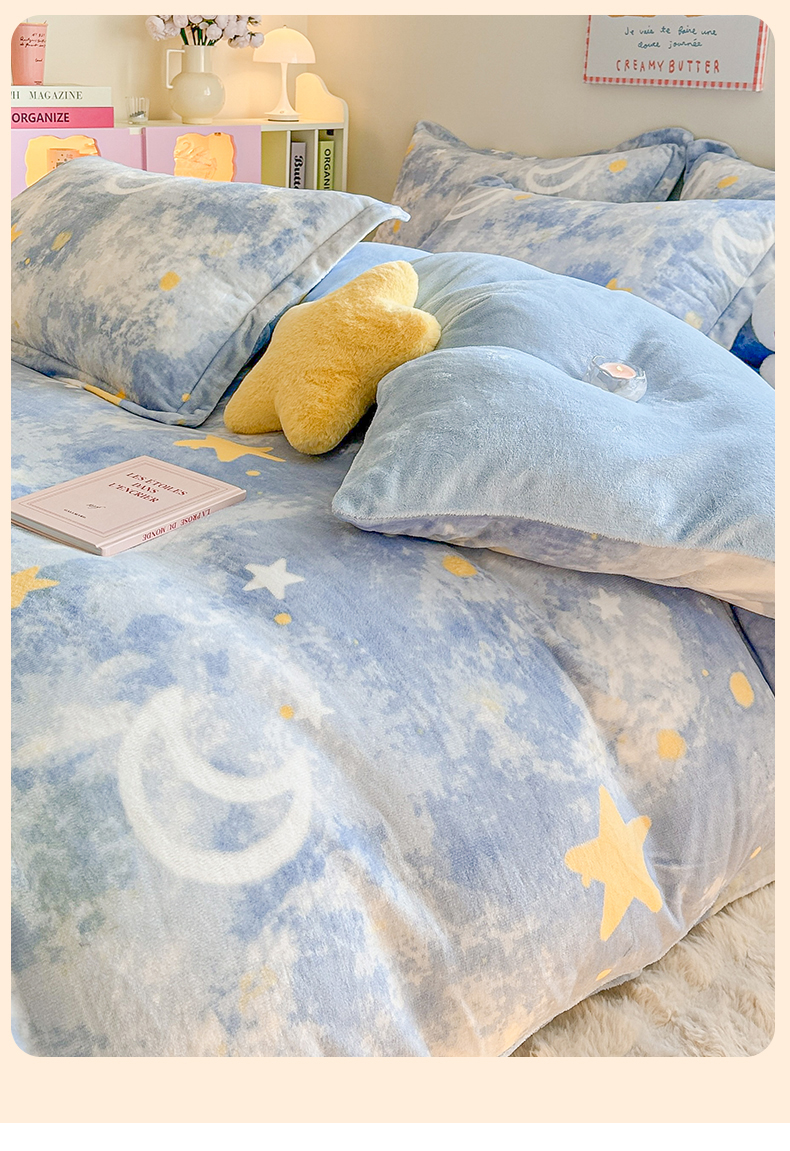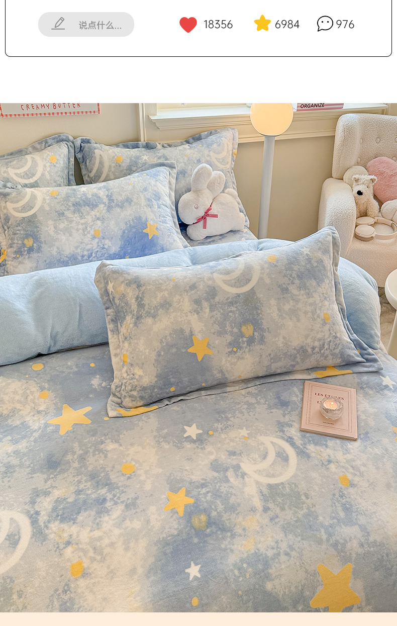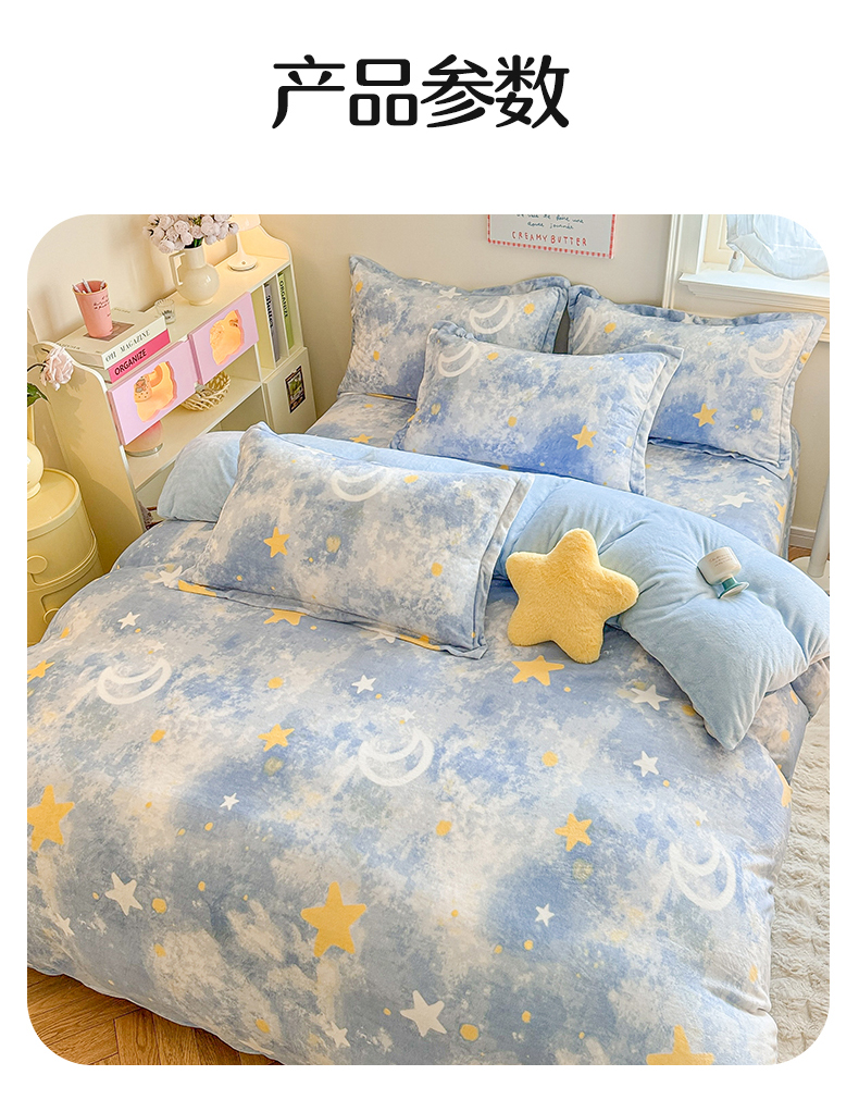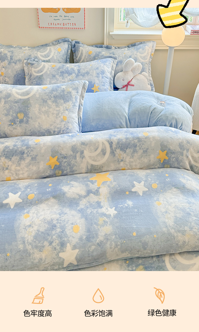 当前位置: 91家纺网 > 商品网购 > 床品套件 > 四件套 > 牛奶绒四件套 > 名兮家居 2025新款卡通时尚风高克重印花牛奶绒四件套 满天星