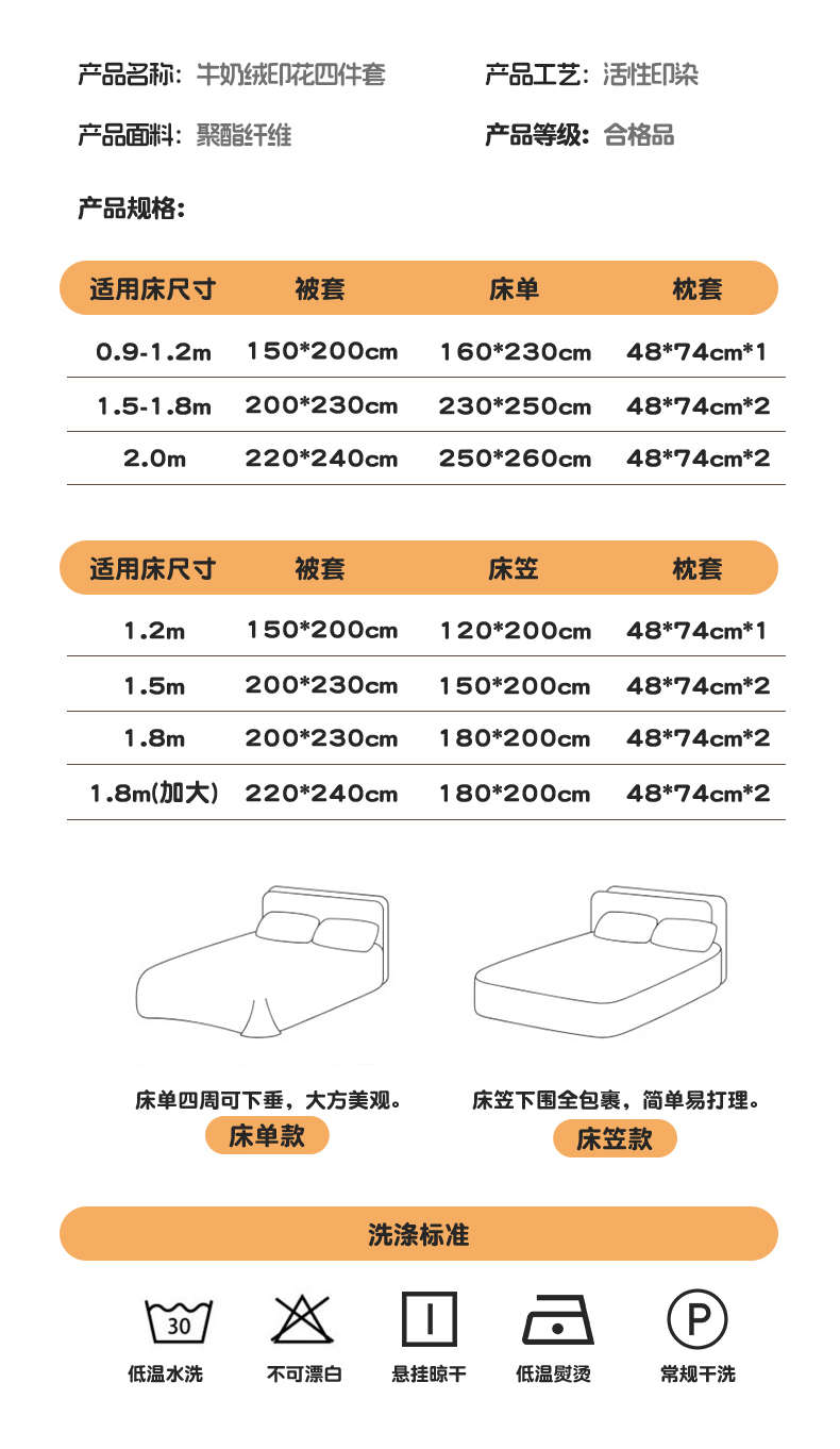 【床笠款】1.8四件套-被套200x230 | ¥90.00 |