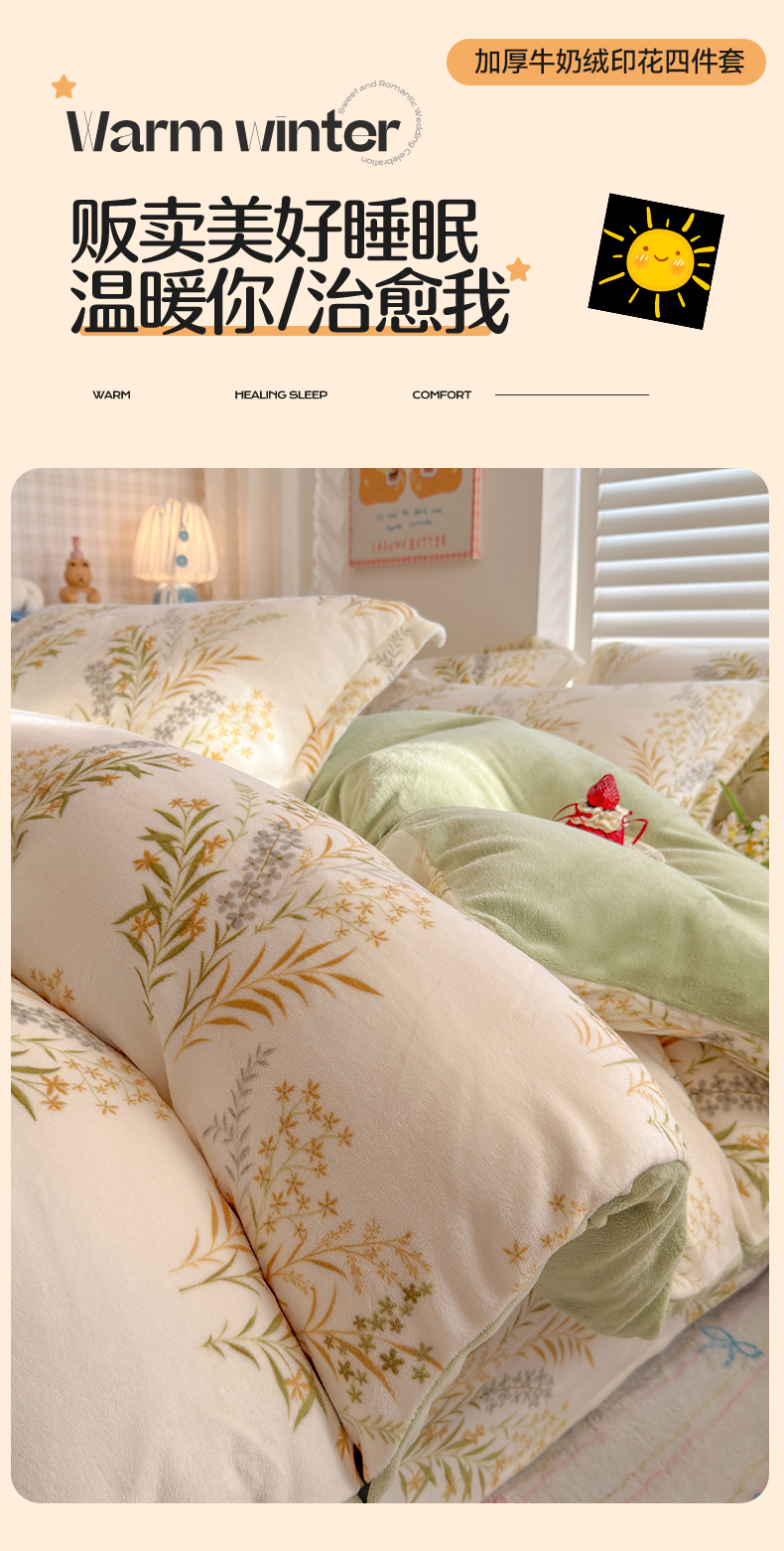 当前位置: 91家纺网 > 商品网购 > 床品套件 > 四件套 > 牛奶绒四件套 > 名兮家居 2025新款卡通时尚风高克重印花牛奶绒四件套 仙草