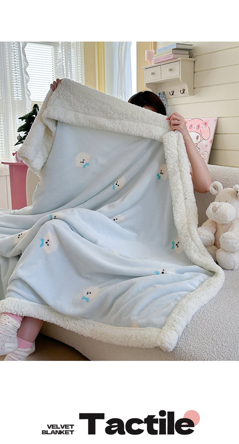 贝扬思家纺 2025新款秋冬可爱系牛奶绒羊羔绒多功能毛毯奶盖系列 奶盖-穿鞋的熊