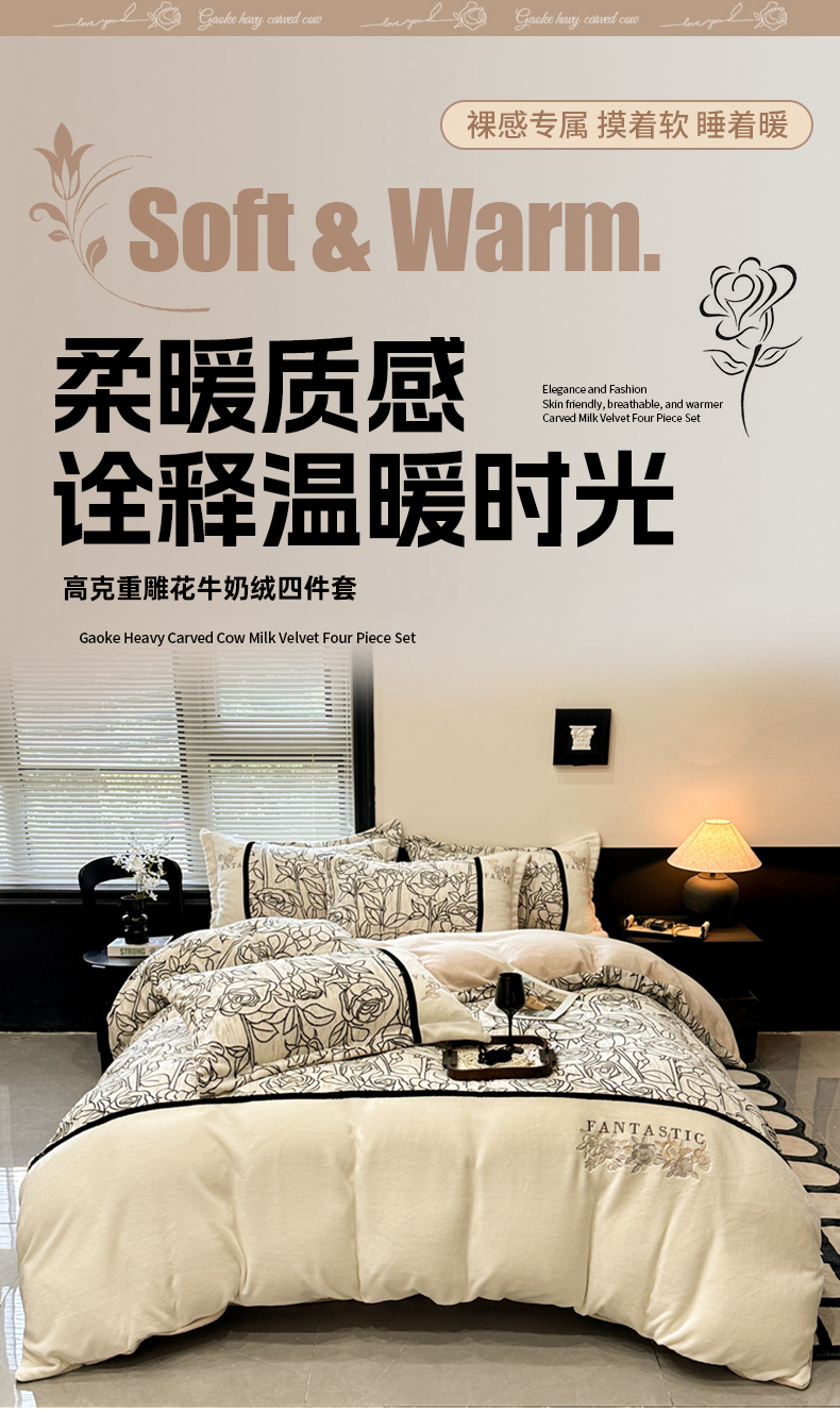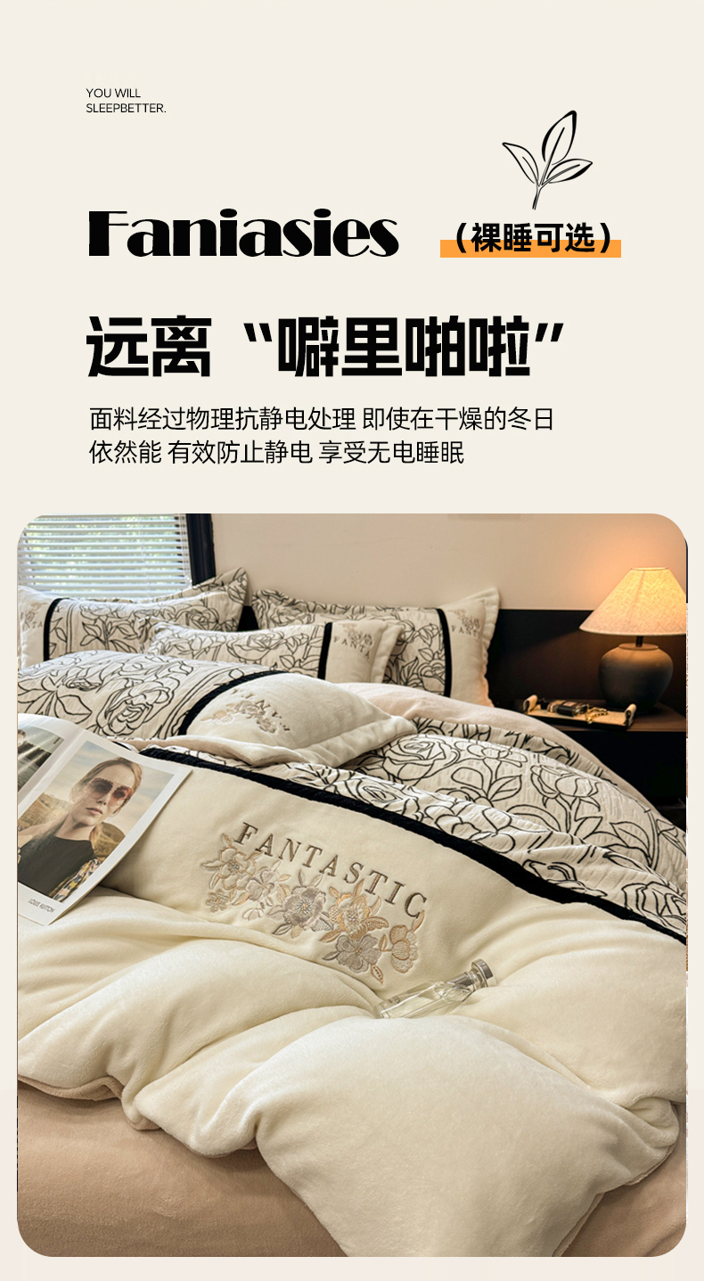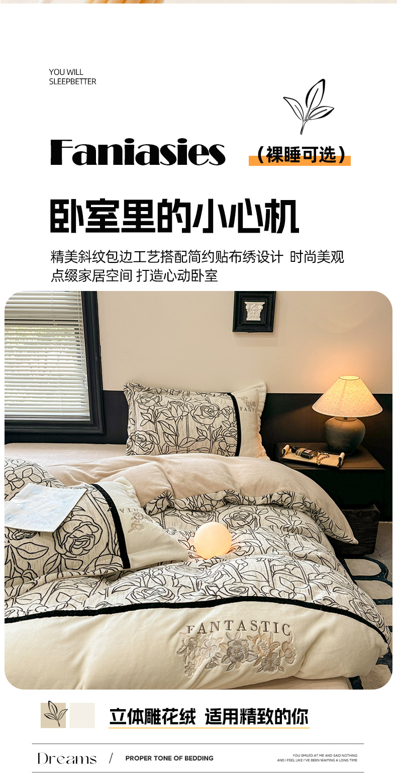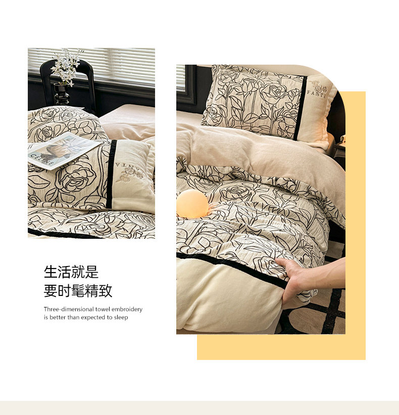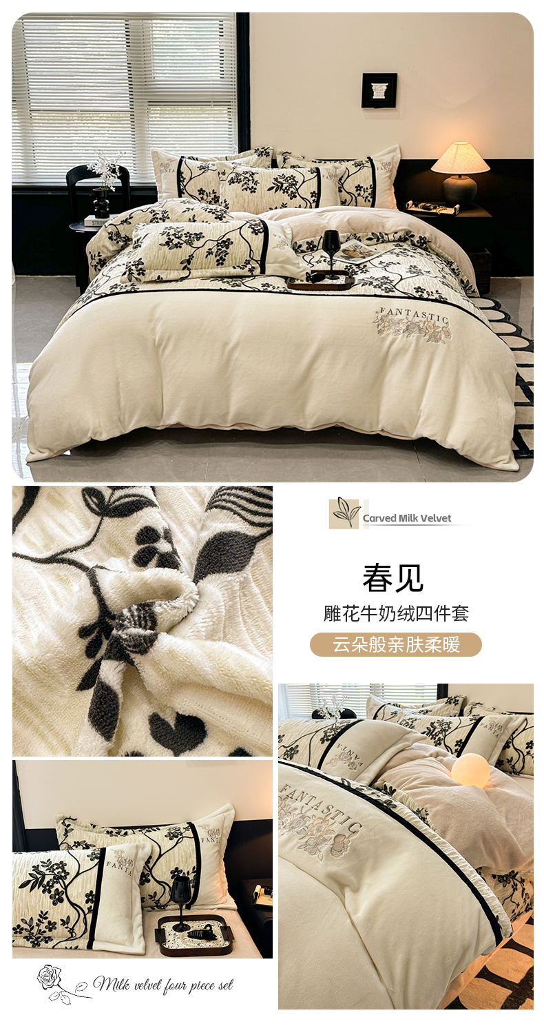 (总)金牛座家纺 2025新款立体雕花加厚牛奶绒刺绣拼接四件套【控价 售价请勿低于158】,花海,春见,蝶林,玫语