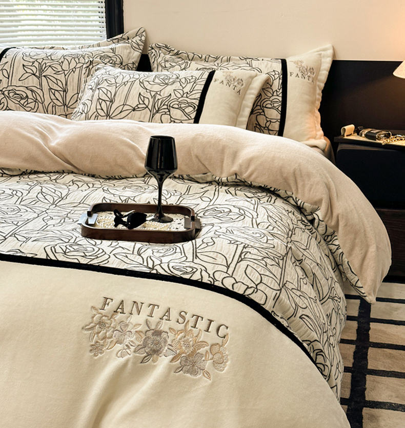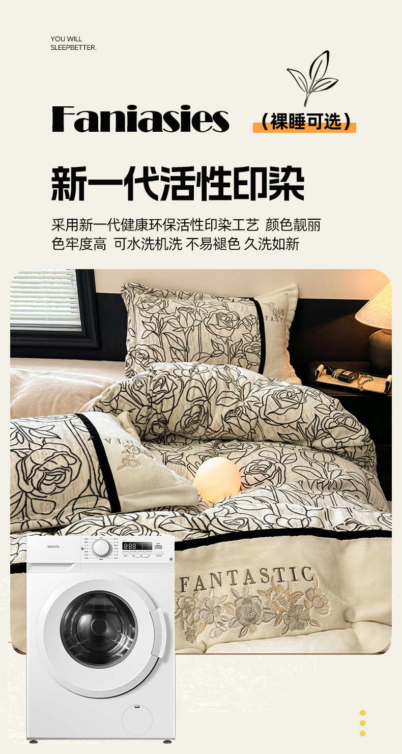 金牛座家纺 2025新款立体雕花加厚牛奶绒刺绣拼接四件套【控价 售价请勿低于158】 花海
