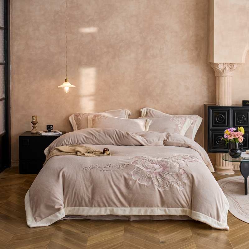 (总)瑞雪家居 2025新款270克全消光牛奶绒系列四件套-罗浮花影