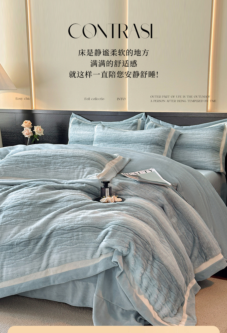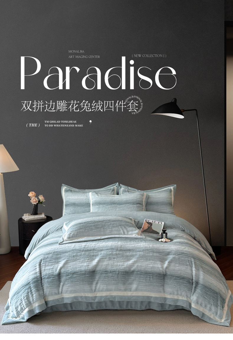 (总)绘萱家居 2025新款亲肤舒适双拼边雕花兔毛绒四件套-爱丁堡,爱丁堡-粉,爱丁堡-灰,爱丁堡-灰咖,爱丁堡-卡其,爱丁堡-蓝,爱丁堡-绿