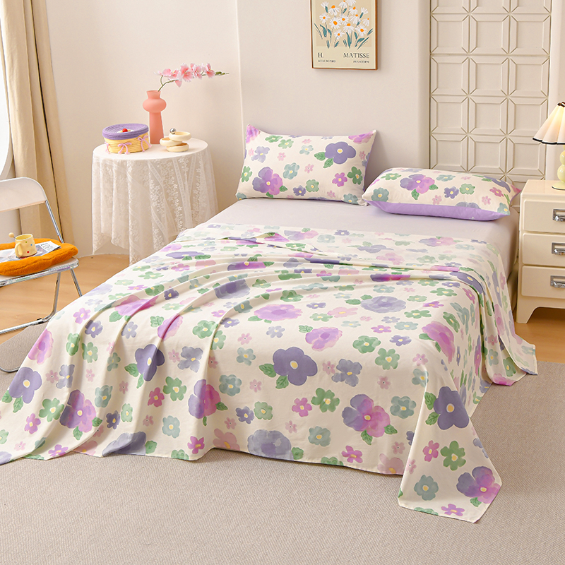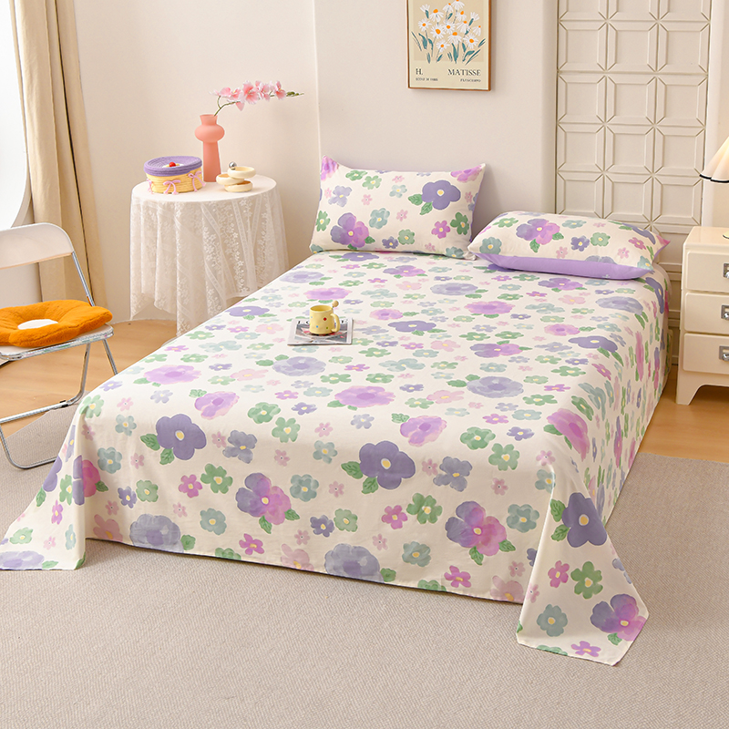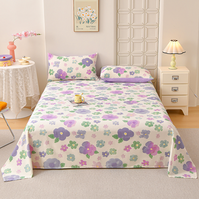 商品名称:宇彬家纺 2025直播新款13070全棉纯棉印花双人单床单枕套三件套喷气小清新简约学生被单 小甜美
