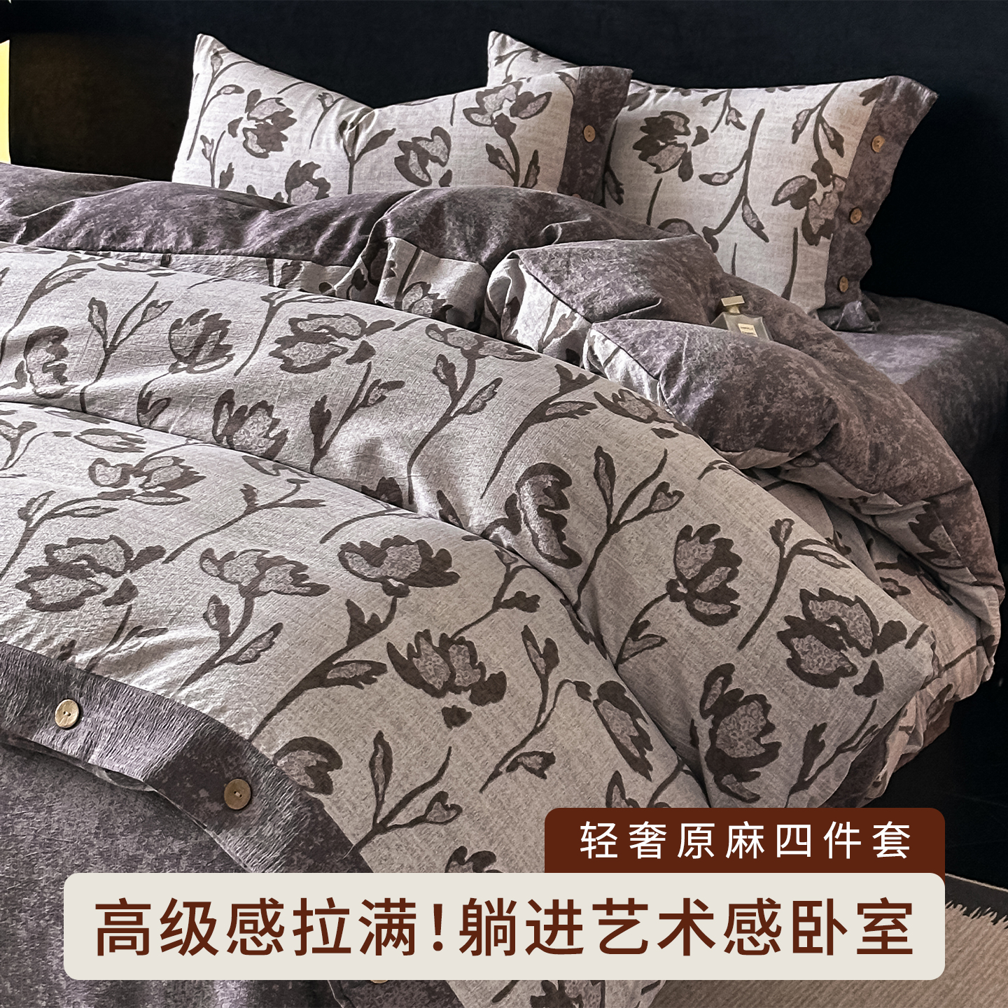 当前位置: 91家纺网 > 商品网购 > 床品套件 > 四件套 > 全棉普通四件套 > 悦织湾家纺 2025新款纽扣款轻奢原麻四件套复古中式艺术雅致轻奢床上用品三四件套 轻奢原麻-凤尾花语